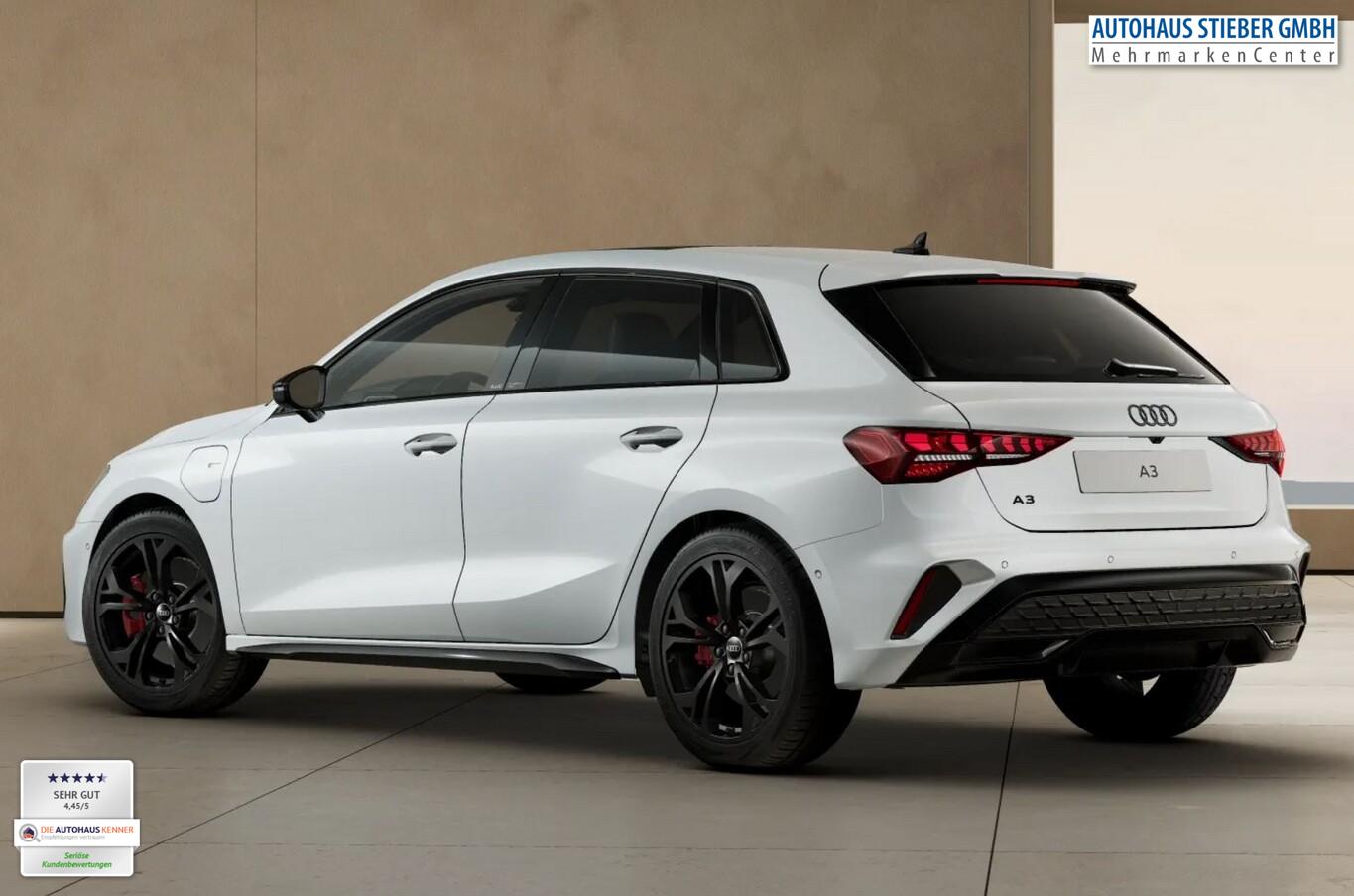 Interieur-Paket: S line mit Sportsitze, Sitzbezug Mikrofaser / Kunstleder, schwarz (Dachhimmel Stoff, schwarz / Innenausstattung: Aluminium-Optik / Kontur / Ambientebeleuchtungs-Paket (pro) / Pedalerie in Edelstahl / Rücksitzlehne geteilt/klappbar (40:20:40) / Sitzbezug / Polsterung: Mikrofaser Dinamica / Kunstleder Kombination mit Logo-Prägung in Vordersitzlehnen / Sportsitze vorn), Infotainment-Paket (Audi Application Store und Smartphone Interface / Audi connect (Internetbasierende Dienste) / Kombiinstrument digital (virtual cockpit plus) / Sound-System DSP / Audi Sound-System / Multi-Media-Interface MMI Navigation Plus mit MMI Touch), LM-Felgen 8x18 (5-Y-Doppelspeichen Schwarz-Metallic), Panorama-Ausstelldach elektrisch, Klima-Paket (Komfort-Klimaautomatik 3-Zonen / Komfort-Standklimatisierung / Sitzheizung vorn), Scheinwerfer LED (Heckleuchten LED mit dynamischem Blinklicht), Assistenz-Paket Fahren (Fahrassistenz-System: Adaptive Geschwindigkeitsregelanlage (Adaptive Cruise Control) mit Autom. Distanzregelung / Rückfahrkamera / Einparkhilfe vorn und hinten, akustisch und optisch mit selektiver Anzeige (APS Plus) / Fahrassistenz-System: Parklenkassistent mit selektiver Anzeige / Fahrassistenz-System: Spurverlassenswarnung inkl. Notfall-Assistent), Ladekabel mit Typ 2-Stecker (Mode 3), Verglasung hinten abgedunkelt (Privacyverglasung), Bluetooth-Freisprecheinrichtung mit Spracherkennung (Audi Phone Box), Fahrassistenz-System: Fernlichtassistent, Ladekabel mit Industriestecker (16 A / 400 V), 4-Wege-Lendenwirbelstütze für die Vordersitze, Außenspiegel elektrisch einstell-, beheiz- und anklappbar, automatisch abblendend, Diebstahl-Warnanlage, e-tron Ladesystem kompakt, Fahrassistenz-System: Abbiege-Assistent, Fahrassistenz-System: Adaptiver Geschwindigkeitsassistent, Fußraumbeleuchtung vorn und hinten, Gepäckraumbeleuchtung, Handschuhfach beleuchtet, Haushaltsstecker Typ E/F, Innenausstattung: Dekoreinlagen Aluminium Spektrum dunkel, Innenspiegel automatisch abblendend, rahmenlos, Komfortöffnung Gepäckraumklappe, Komfortpaket plus, Lenkrad (Sport/Leder - 3-Speichen, unten abgeflacht) mit Multifunktion plus und Schaltfunktion, Leseleuchten vorn und hinten, Mittelarmlehne vorn, Reifen 225/40 R18, Schadstoffarm nach Abgasnorm Euro 6e (EU6 EB), Sonnenblende mit Spiegel (beleuchtet), Motor 1,5 Ltr. - 130 kW (System: 200 kW) TFSI Hybrid (DUCA) (Hybrid 200 kW (Motor 1,5 Ltr. - 130 kW TFSI)), Akustischer Fußgängerschutz, Außensound (e-sound), Bremssättel Rot lackiert, Dachkantenspoiler S-line, Geschwindigkeits-Begrenzeranlage, Heckscheibenwischer, Karosserie: 5-türig, Kindersicherung elektr. betätigt, Kopfstützen hinten (3-fach), Nichtraucher-Paket, On-Board-Ladegerät (bis 11 kW), Optik-Paket schwarz plus, Parkbremse elektro-mechanisch, Radioempfang digital (DAB), Sitzbelegungserkennung für Sicherheitsgurte, Sitze vorn manuell einstellbar, Stoßfänger Sport-Design (S-line), USB-Ladeanschlüsse (2-fach, Typ C) für Fondpassagiere, Fahrassistenz-System: Bremsassistent (Audi pre sense front), Audi Drive Select, Wegfahrsperre (elektronisch), Getriebe 6-Gang - Doppelkupplungsgetriebe S-tronic, Standklimatisierung, Airbag Beifahrerseite abschaltbar, Airbag Fahrer-/Beifahrerseite, Isofix-Aufnahmen für Kindersitz, Kopf-Airbag-System (Sideguard), Schließ-/Startsystem Advanced Key (Komfortschlüssel), Seitenairbag vorn, Seitenairbag vorn mitte (Interaktionsairbag), Wärmeschutzverglasung grün getönt, Fahrassistenz-System: Verkehrszeichenerkennung, Multifunktionskamera, Audi connect (Notruf- und Assistance-System), Fahrassistenz-System: Notfall-Assistent mit automatischem Notruf, Servolenkung elektro-mechanisch, Licht- und Regensensor, Tagfahrlicht, Fahrassistenz-System: Ausweich-Assistent, Fahrassistenz-System: Müdigkeitserkennung (Pausenempfehlung), Reifendruck-Kontrollsystem, Start-Stop-Knopf, Start/Stop-Anlage