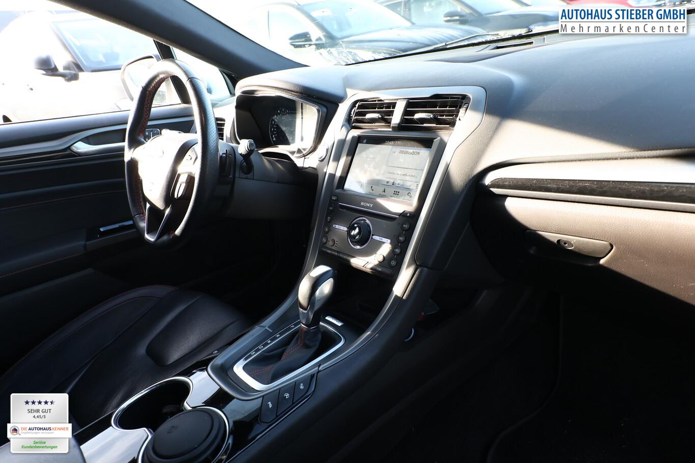 Technologie-Paket (Innenspiegel mit Abblendautomatik / Sicht-Paket / Heckklappenbetätigung elektrisch / Adaptive Scheinwerfer LED mit Abbiegelicht / Fahrassistenz-System: Fernlichtassistent (Scheinwerfer mit Abblendautomatik) / Scheibenwischer mit Regensensor / Scheinwerfer-Assistent mit Tag-/Nachtsensor / Tagfahrlicht LED), Panorama-Schiebedach elektr. mit Solar-Reflect (Sonnenschutzrollo an Türscheiben hinten), Sitzbezug / Polsterung: Leder Premium (Sitz vorn links elektr. verstellbar (10-fach, mit Memory) / Sitz vorn rechts elektr. verstellbar (10-fach) / Sitzheizung vorn / Außenspiegel mit Abblendautomatik), Metallic-Lackierung, Business-Paket 2 (12 Lautsprecher / 9 Lautsprecher / Radioempfang digital (DAB) / Sound-System Premium / Subwoofer / Ford SYNC 3 mit Navigation / Navigationssystem: Sony (mit Ford SYNC) / Sprachsteuerung und Bluetooth-Schnittstelle / USB-Anschluss / Vorrüstung Mobiltelefon/Handy mit Bluetooth-/USB-Schnittstelle / Rückfahrkamera / Fahrassistenz-System: Sicherheitssystem SYNC mit automatischem Notruf / Audiobedienung am Lenkrad / Fahrassistenz-System: Park-Assistent (Active Park Assist) / Parkpilotsystem hinten / Parkpilotsystem vorn und hinten), Außenspiegel mit Blind Spot Informations System (Bodenleuchte im Außenspiegel / Außenspiegel elektr. anklappbar), Verglasung hinten abgedunkelt (Privacy Glass), Lenkrad heizbar (Leder 3-Speichen), Raucher-Paket, Automatische Leuchtweitenregulierung, Brillenfach in Dachkonsole, Gepäckraumbeleuchtung LED, Getränkehalter vorn, Handschuhfach abschließbar, beleuchtet, Lendenwirbelstütze vorn elektr. verstellbar, LM-Felgen 19 Zoll, Reifen 235/40 R19, Scheibenwaschdüsen heizbar, Sitzheizung hinten, Body-Styling-Paket (Kühlergrill oben / unten Pianolack / Stoßfänger hinten Sport-Design mit Diffusor / Stoßfänger Sport-Ausführung / Nebelscheinwerfer mit Einfassung schwarz glänzend), Farbdisplay (10,1 Zoll) (Farbdisplay für Bordcomputer), KeyFree-System (Ambiente-Beleuchtung vorn (LED) / Zweiter Schlüssel mit Fernbedienung / Power KeyFree-Startfunktion), Coming-Home-Lichtfunktion (Scheinwerfer mit Ausschaltverzögerung / Scheinwerfer mit Begrüßungsfunktion), Fahrassistenz-System: Spurhalteassistent mit Müdigkeitserkennungs-Sensor (Fahrassistenz-System: Verkehrsschildassistent / Fahrassistenz-System: Fernlichtassistent (Scheinwerfer mit Abblendautomatik) / Scheibenwischer mit Regensensor / Scheinwerfer-Assistent mit Tag-/Nachtsensor), Intelligent Protection System (IPS) (3-Punkt-Sicherheitsgurt hinten / Airbag Fahrer-/Beifahrerseite / Knieairbag Fahrerseite / Kopf-Schulter-Airbag vorn und hinten / Seitenairbag vorn), Winter-Paket (Sitzheizung vorn / Frontscheibe heizbar), Außenspiegel Wagenfarbe, Dachhimmel Stoff, dunkel, Doppelendrohr Auspuffanlage, Einstiegschienen vorn, Fernentriegelung Heckklappe/-Deckel, Gepäckraumabdeckung / Rollo, Heckspoiler, Innenraumfilter: Pollenfilter, Karosserie: 5-türig, Kindersicherung elektrisch, Lenksäule (Lenkrad) höhen-/längsverstellbar, Leseleuchte vorn, Leseleuchten im Fond, Mittelarmlehne hinten, Motor 2,0 Ltr. - 132 kW TDCi KAT, Parkbremse elektrisch, Pedale Aluminium, Reserverad als Notrad, Schalt-/Wählhebelgriff Leder, Seitenschweller Wagenfarbe, Sonnenblende links mit Spiegel (beleuchtet), Sonnenblende rechts mit Spiegel (beleuchtet), Steckdose (12V-Anschluß) im Koffer-/Laderaum, Türgriffe außen lackiert, Warnanlage für Sicherheitsgurte hinten, Anti-Blockier-System (ABS), Fahrassistenz-System: Notbrems-Assistent, Antischlupfregelung (ASR) + ABS, Antriebsart: Frontantrieb, Elektron. Stabilitäts-Programm (ESP), Sport-Fahrwerk, Getriebe 6-Gang - PowerShift Typ: MPS 6, Klimaautomatik 2-Zonen, Fensterheber elektrisch vorn + hinten mit Komfortschließung, Isofix-Aufnahmen für Kindersitz, Mittelarmlehne vorn mit Staufach und 12V-Anschluß, My Key (2. Fahrzeugschlüssel programmierbar), Rücksitzlehne geteilt/klappbar (60:40), Sportsitze, Zentralverriegelung mit Fernbedienung, Dachreling, Fahrassistenz-System: Berganfahr-Assistent (Hill-Holder), Lenkrad mit Schaltwippen, Servolenkung elektrisch, Außenspiegel elektr. verstell- und heizbar, Blinkleuchte in Außenspiegel integriert, Nebelscheinwerfer, Reifendruck-Kontrollsystem, Rußpartikelfilter, Start/Stop-Anlage