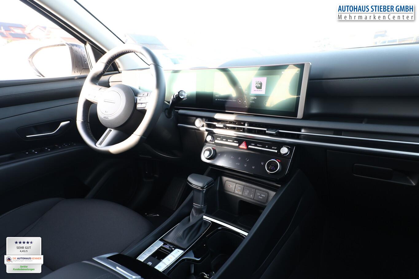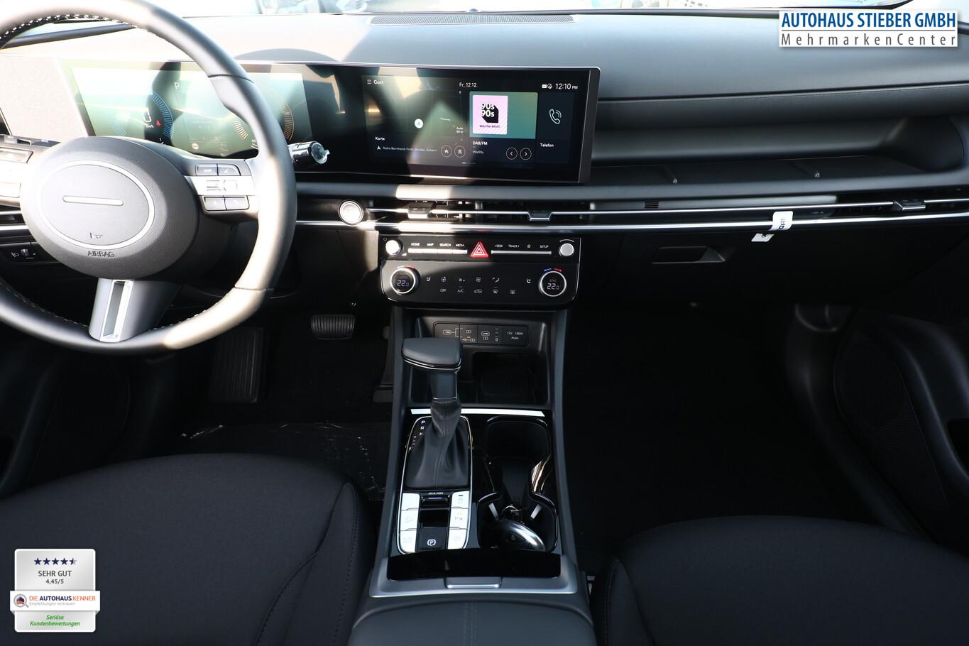 Fahrassistenz-System: Autonome Notbremsfunktion inkl. Frontkollisionswarnung (FCA), Fahrassistenz-System: Geschwindigkeits-Regelanlage (Tempomat), Fahrassistenz-System: Totwinkelassistent, Getränkehalter hinten, Lendenwirbelstütze Sitz vorn links und rechts, Lenkrad heizbar, LM-Felgen 17", Reifen 215/65 R17, Reserverad in Fahrbereifung, Schadstoffarm nach Abgasnorm Euro 6e (EU6 EA), SmartLink (Android Auto & Apple CarPlay), Dachspoiler (3. Bremsleuchte), Digital Cockpit (Instrumentenanzeige Digital) (Kombiinstrument digital mit Panorama-Display (Curved) / Bordcomputer), Lenkrad (Leder) (Lenkrad (Leder) 3-Speichen / Lenkrad (Leder) mit Multifunktion), Fahrassistenz-System: Einparkhilfe vorn und hinten (Einparkhilfe hinten), Anhänger-Stabilisierungs-Programm (TSA), Fahrassistenz-System: Multikollisionsbremse (Multi Collision Brake), Gepäckraumabdeckung / Rollo, Geschwindigkeits-Begrenzeranlage (Speed-Limiter), Induktionsladeschale für Smartphone, Innenspiegel mit Abblendautomatik, Karosserie: 5-türig, Leseleuchten vorn und hinten LED, Mild-Hybrid 118 kW (Motor 1,6 Ltr. - 118 kW T-GDI), Otto-Partikelfilter (OPF), Parkbremse elektrisch (EPB), Radioempfang digital (DAB+), Radstand 2680 mm, Schalt-/Wählhebelgriff Leder, Scheibenbeschlagerkennung / Regelung, Sicherheitsgurte vorn höhenverstellbar, Sitz vorn links höhenverstellbar, Sitz vorn rechts höhenverstellbar, Sitzbezug / Polsterung: Stoff, Steckdose (12V-Anschluß) vorn, Touchscreen-Farbdisplay (12,25 Zoll), Türgriffe außen Wagenfarbe, Warnanlage für Sicherheitsgurte, Fahrer-/Beifahrerseite, Audio-Navigationssystem, Freisprecheinrichtung Bluetooth, USB-Anschluss Mittelkonsole, Anti-Blockier-System (ABS), Antriebsart: Frontantrieb, Elektron. Stabilitätskontrolle (ESC) mit Bremsassistent, Wegfahrsperre (elektronisch), Getriebe 7-Gang - Doppelkupplungsgetriebe DCT, Klimaautomatik 2-Zonen, Airbag Beifahrerseite, Airbag Fahrerseite, Fensterheber elektr. mit Einklemmschutz, Fensterheber elektrisch vorn und hinten, mit Auf-/Ab-Automatik, Kopf-Airbag-System, Mittelarmlehne vorn, Rücksitzlehne geteilt/klappbar, Seitenairbag vorn, Sitzheizung vorn, Smart-Key, Zentralverriegelung mit Fernbedienung, Dachreling, Fahrassistenz-System: Berganfahrhilfe, Fahrassistenz-System: Verkehrszeichenerkennung, erweitert (Geschwindigkeits-Regel-/Begrenzeranlage), Rückfahrkamera, Fahrassistenz-System: Sicherheitssystem mit automatischem Notruf (ERA GLONASS / eCall), Servolenkung, Abbiegelicht, Außenspiegel elektr. anklappbar, Außenspiegel elektr. verstell- und heizbar, beide, Einschaltautomatik für Fahrlicht / Lichtsensor, Scheibenwischer mit Regensensor, Scheinwerfer Voll-LED, Tagfahrlicht LED, Fahrassistenz-System: aktiver Spurhalteassistent (LKAS, Lane Keep Assist System), Reifendruck-Kontrollsystem, Start-Stop-Knopf, Start/Stop-Anlage