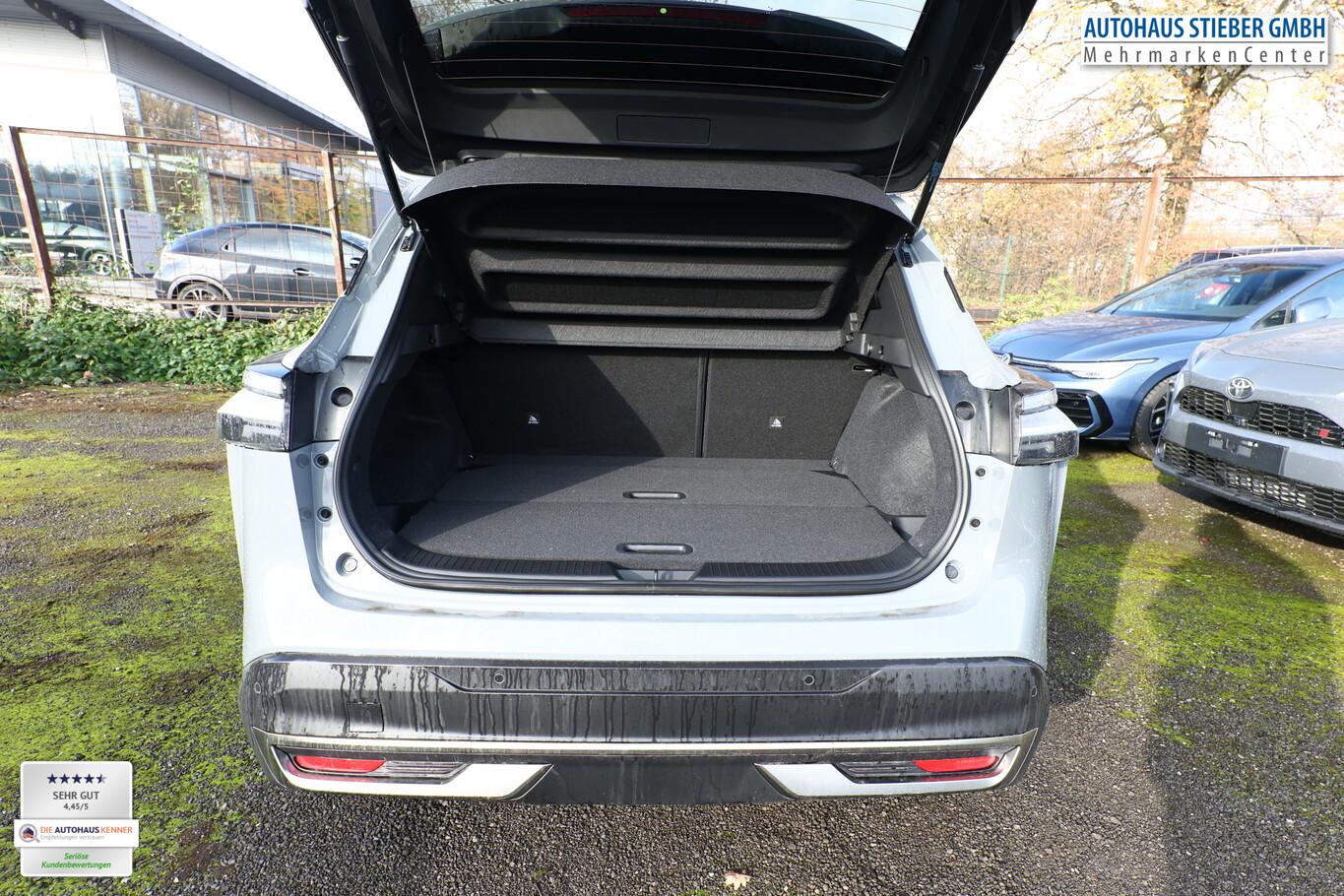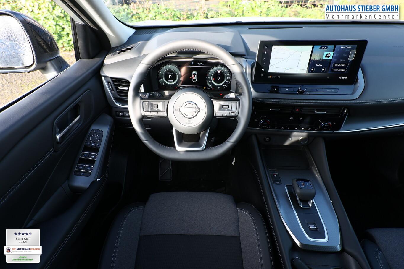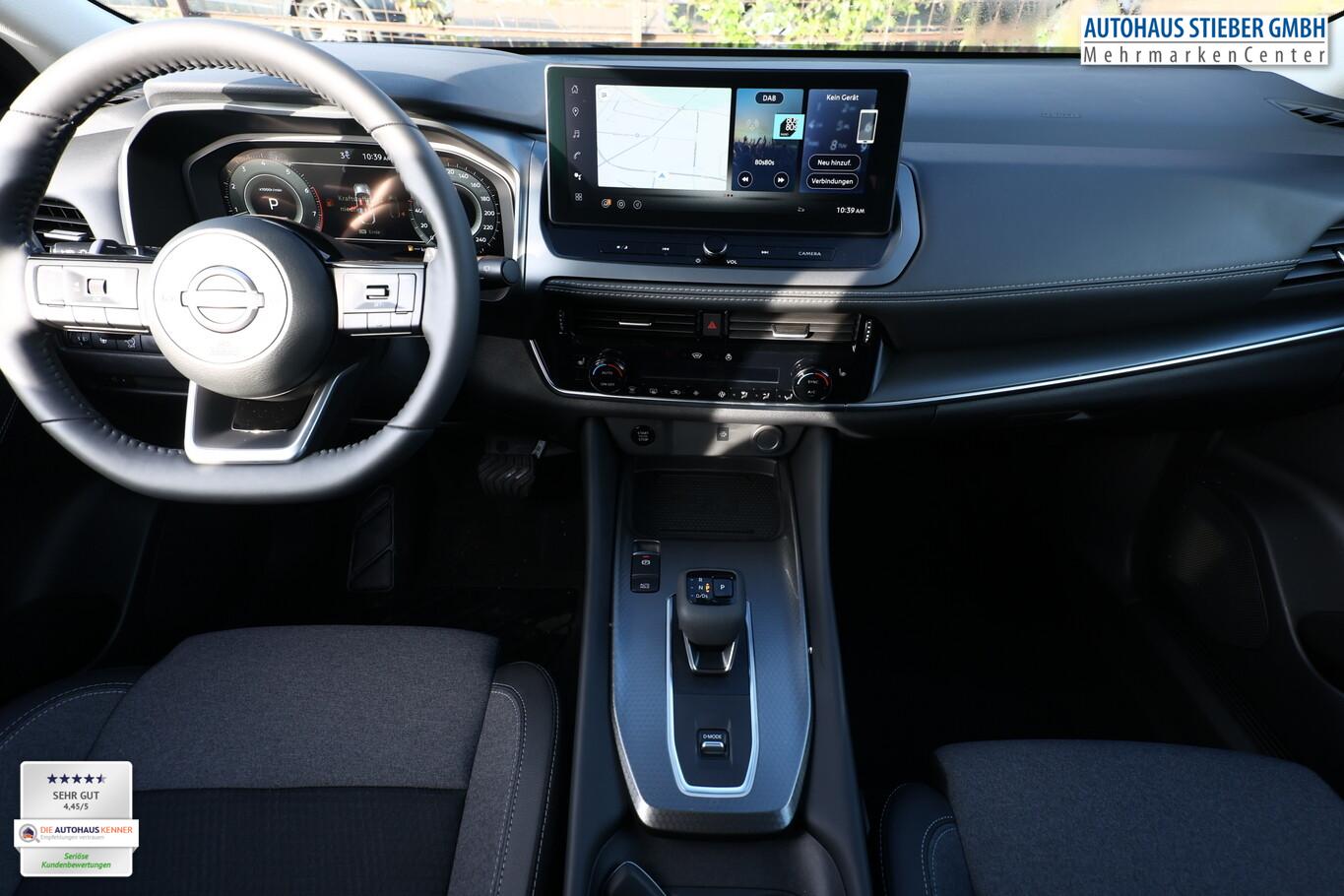 Winter-Paket (Lenkrad heizbar / Sitzheizung vorn / Frontscheibe heizbar), Dachreling silber, Brillenhalter, Einparkhilfe vorn und hinten, Fahrassistenz-System: ProPilot mit Navi-Link, Gurtwarnanlage, Induktionsladeschale für Smartphone, Innenspiegel rahmenlos mit Abblendautomatik, Kopf-Airbag vorn, LM-Felgen 18 Zoll, Navigation in Verbindung mit dem Smartphone (über Apple Carplay / Android Auto /...), Reifen 235/55 R18, Schadstoffarm nach Abgasnorm Euro 6e (EU6 EA), Sitze vorn manuell verstellbar, Multimedia-System Nissan Connect (6 Lautsprecher / Audiosystem / Smartphone kabellose Schnittstelle (Apple CarPlay & Android Auto) / Service-System: Google Services / Service-System: Nissan Connect Services), Schließ-/Startsystem intelligent key (Keyless-Entry / Start-Stop-Knopf), Lenkrad (Leder) mit Multifunktion (Audiobedienung am Lenkrad), Ambiente-Beleuchtung, Dachantenne im Haifischflossen-Design, Dachhimmel hellgrau, Elektr. Bremskraftverteilung (EBD), Gepäck-/Laderaum-Unterteilung (Flexi-Board), Geschwindigkeits-Begrenzeranlage, Instrumentenanzeige TFT-Farbdisplay (12,3 Zoll), Karosserie: 5-türig, Lendenwirbelstütze Sitz vorn links, elektr. verstellbar, Mild-Hybrid 116 kW (Motor 1,3 Ltr. - 116 kW DIG-T MHEV), Mittelarmlehne hinten mit Getränkehalter, Otto-Partikelfilter (OPF), Parkbremse elektrisch, Schalt-/Wählhebelgriff Leder, Sitz vorn links höhenverstellbar, Sitz vorn rechts höhenverstellbar, Sonnenblenden mit Spiegel (beleuchtet), Touchscreen-Farbdisplay (12,3 Zoll), Navigationssystem, USB-Anschluss im Fond, Anti-Blockier-System (ABS), Fahrassistenz-System: Moving Object Detection (MOD, Fußgängererkennung und bewegliche Objekterkennung), Antriebsart: Frontantrieb, Elektron. Stabilitäts-Programm (ESP), Getriebe Automatik stufenlos - X-Tronic-CVT, Klimaautomatik 2-Zonen, Airbag Fahrer-/Beifahrerseite, Fensterheber elektrisch vorn + hinten, Rücksitz geteilt/klappbar, Seitenairbag, Sitzbezug / Polsterung: Stoff/Kunstleder, Verglasung hinten abgedunkelt, Fahrmodusschalter, Around View Monitor (360° Umgebungsansicht), Auto-Hold-Funktion, Fahrassistenz-System: Auffahrwarnsystem (Forward Collision Warning, FCW), Fahrassistenz-System: Berganfahr-Assistent, Fahrassistenz-System: Verkehrszeichenerkennung, Geschwindigkeits-Regelanlage (Tempomat) mit Abstandsregelung, Fahrassistenz-System: Sicherheitssystem ERA GLONASS mit automatischem Notruf, Außenspiegel elektr. anklappbar, Außenspiegel elektr. verstell- und heizbar, Automatische Fahrlichtschaltung, Fahrassistenz-System: Fernlichtassistent, Fahrassistenz-System: Totwinkel-Assistent, Heckleuchten LED, Scheibenwischer mit Regensensor, Scheinwerfer LED, Tagfahrlicht LED, Fahrassistenz-System: aktiver Spurhalteassistent, mit korrigierendem Bremseingriff, Fahrassistenz-System: Autonomer Notbrems-Assistent, Fahrassistenz-System: Müdigkeitserkennungs-Sensor, Fahrassistenz-System: Querverkehrs-Assistent Heck (Rear Cross Traffic Alert, RCTA), Diebstahl-Warnanlage