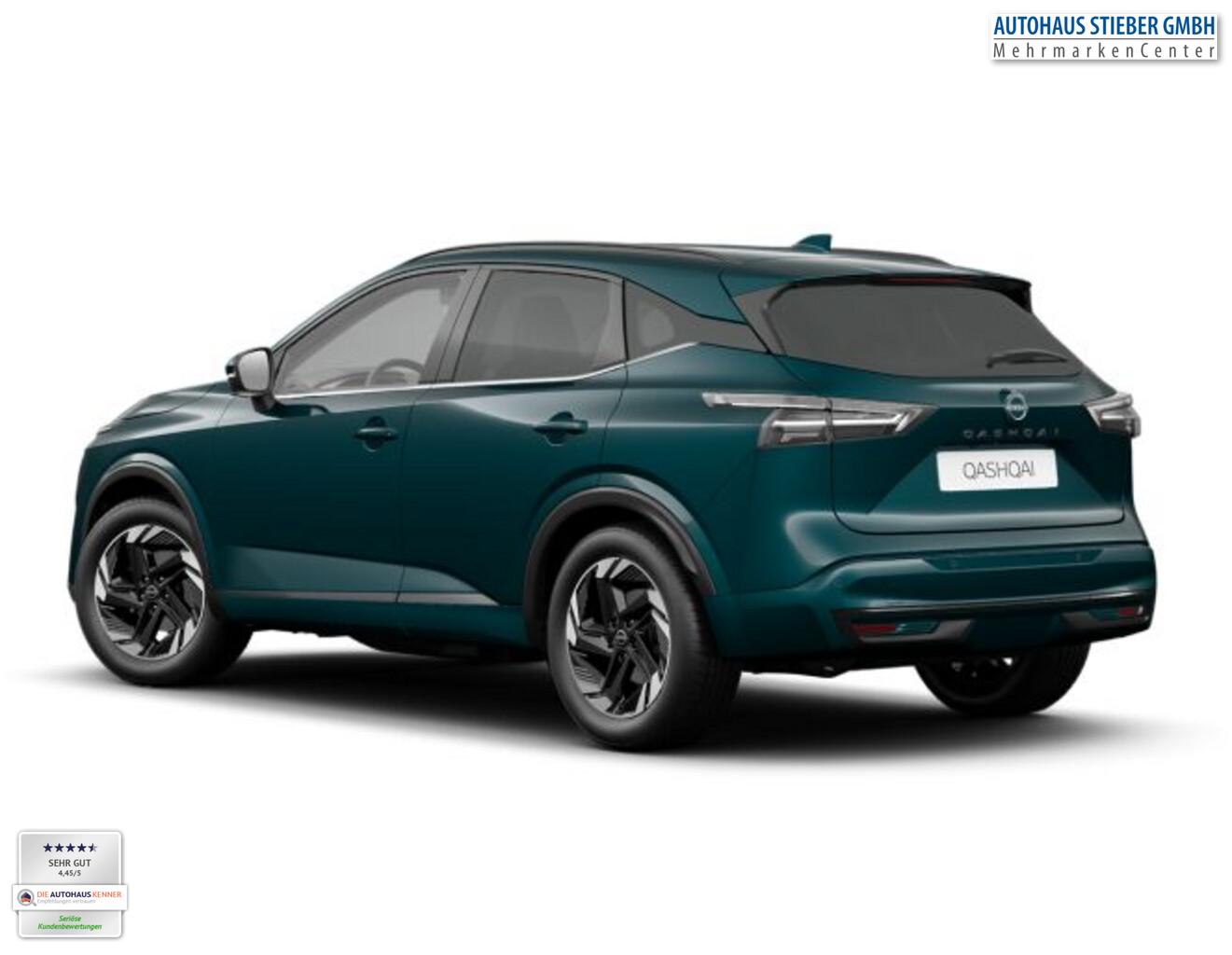 Winter-Paket (Lenkrad heizbar / Sitzheizung vorn / Frontscheibe heizbar), 6 Lautsprecher, Dachträger silber, Fahrassistenz-System: Bremsassistent, Fahrassistenz-System: Spurverlassenswarnung, Fahrassistenz-System: Stau-Pilot, Getränkehalter vorn, Induktionsladeschale für Smartphone, Lenkrad heizbar, LM-Felgen 18 Zoll, Nissan Herstellgarantie 3 Jahre / 100.000km, Radioempfang digital (DAB), Reifen 235/55 R18, Wegfahrsperre, Zentralverriegelung mit Fernbedienung, Ausstattungs-Paket: Nissan Connect Navigationssystem mit Around View Monitor (Smartphone kabellose Schnittstelle (Apple CarPlay & Android Auto) / Sprachbediensystem Spracherkennung / Kamerasystem Around View / Service-System: Google Services / Service-System: Nissan Connect Services / Einparkhilfe vorn und hinten), Schließ-/Startsystem intelligent key (Keyless-Entry / Start-Stop-Knopf), Lenkrad (Leder) mit Multifunktion (Audiobedienung am Lenkrad), Ambiente-Beleuchtung, Dachantenne im Haifischflossen-Design, Elektr. Bremskraftverteilung (EBD), Geschwindigkeits-Begrenzeranlage, Innenspiegel mit Abblendautomatik, Instrumentenanzeige TFT-Farbdisplay (12,3 Zoll), Karosserie: 5-türig, Kofferraumbeleuchtung, Lendenwirbelstütze Sitz vorn links, elektr. verstellbar, Lenksäule (Lenkrad) höhen-/längsverstellbar, Mild-Hybrid 116 kW (Motor 1,3 Ltr. - 116 kW DIG-T MHEV), Mittelarmlehne hinten mit Getränkehalter, Notbrems-Warnblinkautomatik, Parkbremse elektrisch, Schalt-/Wählhebelgriff Leder, Scheibenwischer mit Intervallschaltung, Sitz vorn links höhenverstellbar, Sitz vorn rechts höhenverstellbar, Sonnenblenden mit Spiegel (beleuchtet), Steckdose (12V-Anschluß) in Mittelkonsole, Touchscreen-Farbdisplay (12,3 Zoll), Navigationssystem, USB-Anschluss im Fond, USB-Schnittstelle, Anti-Blockier-System (ABS), Fahrassistenz-System: Moving Object Detection (MOD, Fußgängererkennung und bewegliche Objekterkennung), Antriebsart: Frontantrieb, Elektron. Stabilitäts-Programm (ESP), Getriebe Automatik stufenlos - X-Tronic-CVT, Klimaautomatik 2-Zonen, Airbag Fahrer-/Beifahrerseite, Fensterheber elektrisch vorn + hinten, Isofix-Aufnahmen für Kindersitz, Rücksitz geteilt/klappbar, Seitenairbag, Verglasung hinten abgedunkelt, Fahrmodusschalter, Around View Monitor (360° Umgebungsansicht), Auto-Hold-Funktion, Fahrassistenz-System: Auffahrwarnsystem (Forward Collision Warning, FCW), Fahrassistenz-System: Berganfahr-Assistent, Fahrassistenz-System: Verkehrszeichenerkennung, Geschwindigkeits-Regelanlage (Tempomat) mit Abstandsregelung, Fahrassistenz-System: Sicherheitssystem ERA GLONASS mit automatischem Notruf, Lenkrad mit Schaltwippen/-tasten, Außenspiegel elektr. anklappbar, Außenspiegel elektr. verstell- und heizbar, Automatische Fahrlichtschaltung, Fahrassistenz-System: Fernlichtassistent, Fahrassistenz-System: Totwinkel-Assistent, Heckleuchten LED, Scheibenwischer mit Regensensor, Scheinwerfer LED, Fahrassistenz-System: aktiver Spurhalteassistent, mit korrigierendem Bremseingriff, Fahrassistenz-System: Autonomer Notbrems-Assistent, Fahrassistenz-System: Müdigkeitserkennungs-Sensor, Fahrassistenz-System: Querverkehrs-Assistent Heck (Rear Cross Traffic Alert, RCTA), Reifendruck-Kontrollsystem, Start/Stop-Anlage