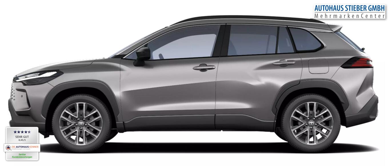 12V-Steckdose vorn, 6 Lautsprecher, Ambientebeleuchtung weiß (monocolor), Außenspiegel mit Blinkleuchte, Cloud-Navigationssystem (Laufzeitgebunden, erste 4 Jahre kostenlos), Dachreling schwarz, Einparkhilfe vorn und hinten mit Notbremsfunktion, Fensterheber mit One-Touch-Funktion und Einklemmschutz, Handschuhfach beleuchtet, Heckscheibe heizbar, Infotainmentsystem inkl. 10,5"-Touchscreen, Kofferaumdeckel / Heckklappe elektr. betätigt, Kombiinstrument digital 12,3", Lenkrad mit Multifunktion, LM-Felgen 18 Zoll, Navigation in Verbindung mit dem Smartphone (über Apple Carplay / Android Auto /...), Nebelscheinwerfer, Radioempfang digital (DAB), Reifen 225/50 R18, Sitz vorn links höhenverstellbar, Smartphone-Schnittstelle kabellos (Apple CarPlay / Android Auto), Sonnenblenden beleuchtet mit Spiegel, Sprachsteuerung, USB-Schnittstelle, Geschwindigkeits-Begrenzeranlage mit Memoryfunktion (Geschwindigkeits-Begrenzeranlage), Komfort-Paket (Induktionsladeschale für Smartphone / Lenkrad heizbar / Sitzheizung vorn), Mittelarmlehne vorn und hinten (Mittelarmlehne hinten mit Getränkehalter), Fahrassistenz-System: Verkehrszeichenerkennung (RSA) (Fahrassistenz-System: Verkehrszeichenerkennung, erweitert (Geschwindigkeits-Regel-/Begrenzeranlage) ( ERSA)), Elektr. Bremskraftverteilung, Fahrassistenz-System: Rückfahr-Assistent mit automatischer Bremsfunktion, Fahrassistenz-System: Sicherheitssystem Toyota Connect mit automatischem Notruf (eCall), Hybrid 103 kW (Motor 1,8 Ltr. - 72 kW 16V), Innenraumfilter: Staub- und Pollenfilter mit Aktivkohlefilter, Innenspiegel mit Abblendautomatik, Karosserie: 5-türig, Lendenwirbelstütze Sitz vorn links, elektr. verstellbar, Lenkrad (3-Speichen), Parkbremse elektrisch (EPB), Sitzbezug / Polsterung: Stoff, Warnanlage für Sicherheitsgurte hinten, Warnanlage für Sicherheitsgurte vorn, Bluetooth-Schnittstelle, Freisprechanlage Bluetooth, Anti-Blockier-System (ABS), Fahrassistenz-System: Pre-Collision-System (PCS), Antriebsart: Frontantrieb, Elektron. Stabilitäts-Programm mit Antriebs-Schlupfregelung (VSC mit TRC), Getriebe Automatik stufenlos - Multidrive ECVT, Klimaautomatik 2-Zonen, Airbag Beifahrerseite abschaltbar, Airbag Fahrer-/Beifahrerseite, Fensterheber elektrisch vorn + hinten, Isofix-Kindersitz-System, Knieairbag Fahrerseite, Kopf-Airbag-System, Rücksitz geteilt, Rücksitz klappbar, Verglasung hinten abgedunkelt, Zentralverriegelung / Startanlage Smart-Key, Entry & Drive, Fahrassistenz-System: Berganfahrkontrolle (HAC), Geschwindigkeits-Regelanlage (Tempomat) mit Abstandsregelung, Rückfahrkamera, Lenkrad (Leder), Außenspiegel elektr. anklappbar, Außenspiegel elektr. verstell- und heizbar, Fahrassistenz-System: Fernlichtassistent (Abblendautomatik Fahrlicht, AHB), Fahrassistenz-System: Totwinkel-Assistent (BLIS), Heckleuchten LED, Scheibenwischer mit Regensensor, Fahrassistenz-System: aktiver Spurhalteassistent (Lenkunterstützung), Fahrassistenz-System: Kreuzungs-Assistent, Fahrassistenz-System: Querverkehrs-Assistent Heck (Rear Cross Traffic Alert, RCTA), Reifendruck-Kontrollsystem