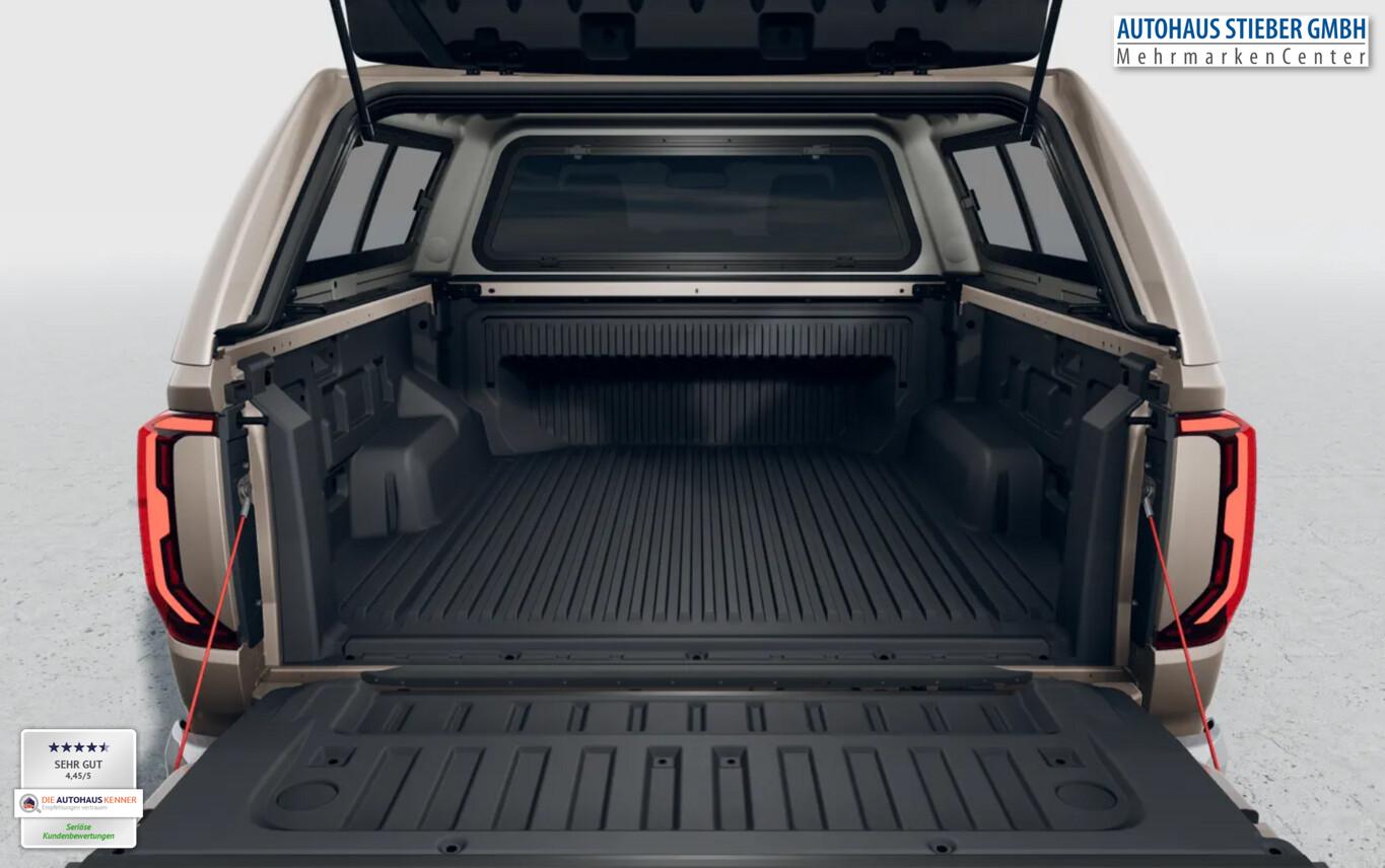 Hardtop (Pick-Up) mit Schiebefenster links/rechts, App-Connect (Apple CarPlay & Android Auto), Einparkhilfe vorn und hinten, Fahrassistenz-System: Adaptive Geschwindigkeitsregelanlage (ACC), Fahrassistenz-System: Auspark-Assistent, Geschwindigkeits-Begrenzeranlage, Isofix-Aufnahmen für Kindersitz an Rücksitze, LM-Felgen 8x20, Reifen 255/55 R20, Reserverad in Fahrbereifung (Leichtmetall), Schadstoffarm nach Abgasnorm Euro 6e (EU6 EA), 2.Sitzreihe Sitzbank (3 Sitzplätze), 3-Punkt-Sicherheitsgurt hinten (3-fach), Ambiente-Beleuchtung weiß, Anhängersteckdose 13-polig, Antennen-Diversity, Armaturentafel Kunstleder, Außenspiegel und Türgriffe außen verchromt, Bodenbelag: Teppich, Dachhimmel Stoff, schwarz, Diebstahlsicherung für Räder (Felgenschlösser), Digital Cockpit (Farbdisplay 12,3 Zoll), Fahrassistenz-System: Multikollisionsbremse (Multi Collision Brake), Federung Komfort, Funkschlüssel / Handsender (2), Haltegriff A-Säule, Beifahrerseite, Handschuhfach abschließbar und beleuchtet, Heckklappe abschließbar über Zentralverriegelung (Pick-Up), Heckscheibe heizbar, Induktionsladeschale für Smartphone (Wireless Charging), Infotainment-System mit Touchscreen-Farbdisplay 12 Zoll für Navigation, Innenraumfilter: Staub- und Pollenfilter, Karosserie/Aufbau: Doppelkabine (Double-Cab), Karosserie/Aufbau: Pick-Up, Kopfstützen hinten (3-fach), Kühlergrill schwarz mit Chromleiste, Ladeflächenbeleuchtung LED (außen), Leseleuchten vorn und Brillenfach, Leuchtweitenregelung automatisch, Mittelarmlehne hinten, Motor 3,0 Ltr. - 177 kW V6 TDI, Parkbremse elektrisch, Radioempfang digital (DAB+), Radstand Standard, Sicherheitsgurte hinten mit Gurtstraffer, Sicherheitsgurte vorn mit Gurtstraffer, höhenverstellbar, Sitz vorn links mit Kartentasche, Sonnenblenden mit Spiegel (beleuchtet), Sound-System Harman-Kardon (8 Lautsprecher, Subwoofer, 640 Watt), Sportsbar in Wagenfarbe, Steckdose 120V / 230V in Mittelkonsole hinten und Ladefläche, Stoßfänger hinten schwarz unlackiert mit Chrom-Applikationen, Stoßfänger vorn Wagenfarbe (X-Design), Trittbretter seitlich mit Chromeinlage, Türgriffe innen verchromt, Warnanlage für Sicherheitsgurte vorn und hinten, Navigationsfunktion, USB-Ladeanschluß (1) am Innenspiegel, Anhängerkupplung (Kugelkopf abnehmbar), Antriebsart: Allradantrieb, Differentialsperre (Hinterachse), Elektron. Stabilitäts-Programm (ESP) mit Bremskraftverstärker elektro-mechanisch, Wegfahrsperre (elektronisch), Getriebe Automatik - (10-Stufen), Klimaanlage Climatronic 2-Zonen, Airbag und Knieairbag Fahrer-/Beifahrerseite, Beifahrerairbag abschaltbar, Kindersitzerkennung, Fensterheber elektrisch vorn und hinten, Schließ-/Startsystem Keyless Access mit Safesicherung, Seitenairbag vorn mit Center-Airbag, Kopf-Airbag-Einheit vorn und hinten, Seitenscheiben hinten und Heckscheibe abgedunkelt, Sitzbezug / Polsterung: Leder Savona, Sitze vorn elektr. verstellbar (10-Wege), Sitzheizung vorn, Verzurrösen auf Ladefläche / Laderaumboden, Frontscheibe Dämmglas, Fahrassistenz-System: Verkehrszeichenerkennung, Umgebungsansicht Area View inkl. Rückfahrkamera Rear View, Notrufsystem, Lenkrad (Leder) mit Multifunktion, Außenspiegel elektr. verstell-, heiz- und anklappbar und Umfeldleuchte, Fahrassistenz-System: Dynamische Fernlichtregulierung (Dynamic Light Assist), Heckleuchten LED, Matrix-LED-Scheinwerfer (IQ.Light), Nebelscheinwerfer LED, Scheibenwischer mit Regensensor, Fahrassistenz-System: Notbremsassistent Front assist mit Fußgänger- und Fahrraderkennung, Fahrassistenz-System: Spurhalteassistent (Lane Assist) inkl. Side Assist, Reifendruck-Kontrollsystem, Rußpartikelfilter, Start/Stop-Anlage