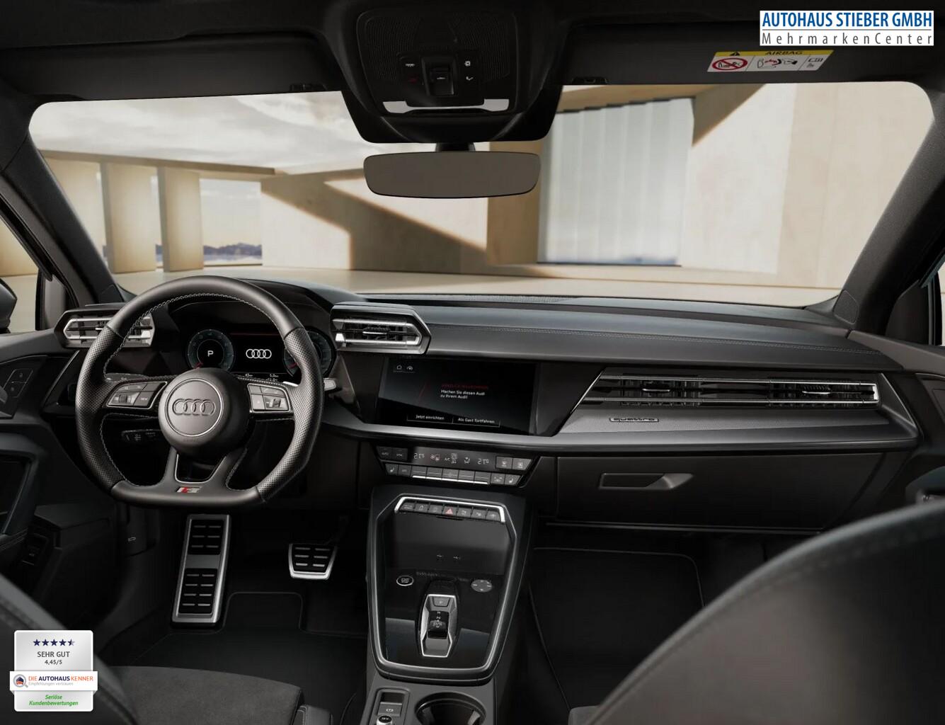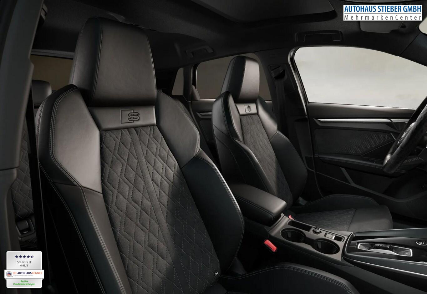 Interieur-Paket: S line mit Sportsitze, Sitzbezug Mikrofaser / Kunstleder, schwarz (Dachhimmel Stoff, schwarz / Innenausstattung: Aluminium-Optik / Kontur / Ambientebeleuchtungs-Paket (pro) / Pedalerie in Edelstahl / Rücksitzlehne geteilt/klappbar (40:20:40) / Sitzbezug / Polsterung: Mikrofaser Dinamica / Kunstleder Kombination mit Logo-Prägung in Vordersitzlehnen / Sportsitze vorn), Infotainment-Paket (Audi Application Store und Smartphone Interface / Audi connect (Internetbasierende Dienste) / Kombiinstrument digital (virtual cockpit plus) / Sound-System DSP / Audi Sound-System / Multi-Media-Interface MMI Navigation Plus mit MMI Touch), LM-Felgen 8x18 (5-Y-Doppelspeichen Schwarz-Metallic), Panorama-Ausstelldach elektrisch, Klima-Paket (Komfort-Klimaautomatik 3-Zonen / Sitzheizung vorn), Scheinwerfer LED (Heckleuchten LED mit dynamischem Blinklicht), Assistenz-Paket Fahren (Fahrassistenz-System: Adaptive Geschwindigkeitsregelanlage (Adaptive Cruise Control) mit Autom. Distanzregelung / Rückfahrkamera / Einparkhilfe vorn und hinten, akustisch und optisch mit selektiver Anzeige (APS Plus) / Fahrassistenz-System: Parklenkassistent mit selektiver Anzeige / Fahrassistenz-System: Spurverlassenswarnung inkl. Notfall-Assistent), Optik-Paket schwarz plus, Gepäckraumklappe elektr. betätigt (öffnen + schliessen), Verglasung hinten abgedunkelt (Privacyverglasung), Innenausstattung: Dekoreinlagen Aluminium Spektrum dunkel, Lenkrad (Sport/Leder - 3-Speichen, unten abgeflacht) mit Multifunktion und Schaltfunktion, Audi Drive Select, Ambiente-Lichtpaket, Anschlussgarantie (1 Jahr / 90.000 km), Antiblockiersystem (ABS), Außenspiegel elektr. verstell-, heiz- und anklappbar, mit Abblendautomatik und Beifahrerspiegelabsenkung, Einstiegsleisten mit Aluminiumeinlage, Elektronische Stabilitätsprogramm (ESP), Fahrassistenz-System: Notbremsassistent, Innenspiegel mit Abblendautomatik, Komfortöffnung Gepäckraumklappe, Lendenwirbelstützen vorn, elektr. verstellbar, Mittelarmlehne vorn, Ottopartikelfilter (OPF), S line Exterieur, Serviceintervall 30.000 km oder 2 Jahre, Sommerreifen 225/40 R18, Zentralverriegelung, Motor 2,0 Ltr. - 150 kW 16V TFSI KAT (DYWA) (Motor 2,0 Ltr. - 150 kW 16V TFSI), Isofix-Aufnahmen für Kindersitz an Beifahrersitz und Rücksitz (Isofix-Aufnahmen für Kindersitz), Außenspiegel Wagenfarbe, Dachkantenspoiler S-line, Geschwindigkeits-Begrenzeranlage, Heckscheibenwischer, Karosserie: 5-türig, Kindersicherung elektr. betätigt, Kopfstützen hinten (3-fach), Parkbremse elektro-mechanisch, Radioempfang digital (DAB), Sitzbelegungserkennung für Sicherheitsgurte, Sitze vorn manuell einstellbar, Stoßfänger Sport-Design (S-line), Vorbereitung Lichtassistent für weitere Funktionen (feature on demand, FOD), Bluetooth-Freisprecheinrichtung mit Audi Phone Box light, USB-Ladeanschlüsse (2-fach, Typ C) für Fondpassagiere, Fahrassistenz-System: Bremsassistent (Audi pre sense front), Wegfahrsperre (elektronisch), Getriebe 7-Gang - Doppelkupplungsgetriebe S-tronic, Airbag Beifahrerseite abschaltbar, Airbag Fahrer-/Beifahrerseite, Kopf-Airbag-System (Sideguard), Schließ-/Startsystem Advanced Key (Komfortschlüssel), Seitenairbag vorn, Seitenairbag vorn mitte (Interaktionsairbag), Wärmeschutzverglasung grün getönt, Fahrassistenz-System: Verkehrszeichenerkennung, Multifunktionskamera, Audi connect (Notruf- und Assistance-System), Fahrassistenz-System: Notfall-Assistent mit automatischem Notruf, Servolenkung elektro-mechanisch, Licht- und Regensensor, Tagfahrlicht, Fahrassistenz-System: Ausweich-Assistent, Fahrassistenz-System: Kreuzungs-Assistent, Fahrassistenz-System: Müdigkeitserkennung (Pausenempfehlung), Reifendruck-Kontrollsystem, Start-Stop-Knopf, Start/Stop-Anlage