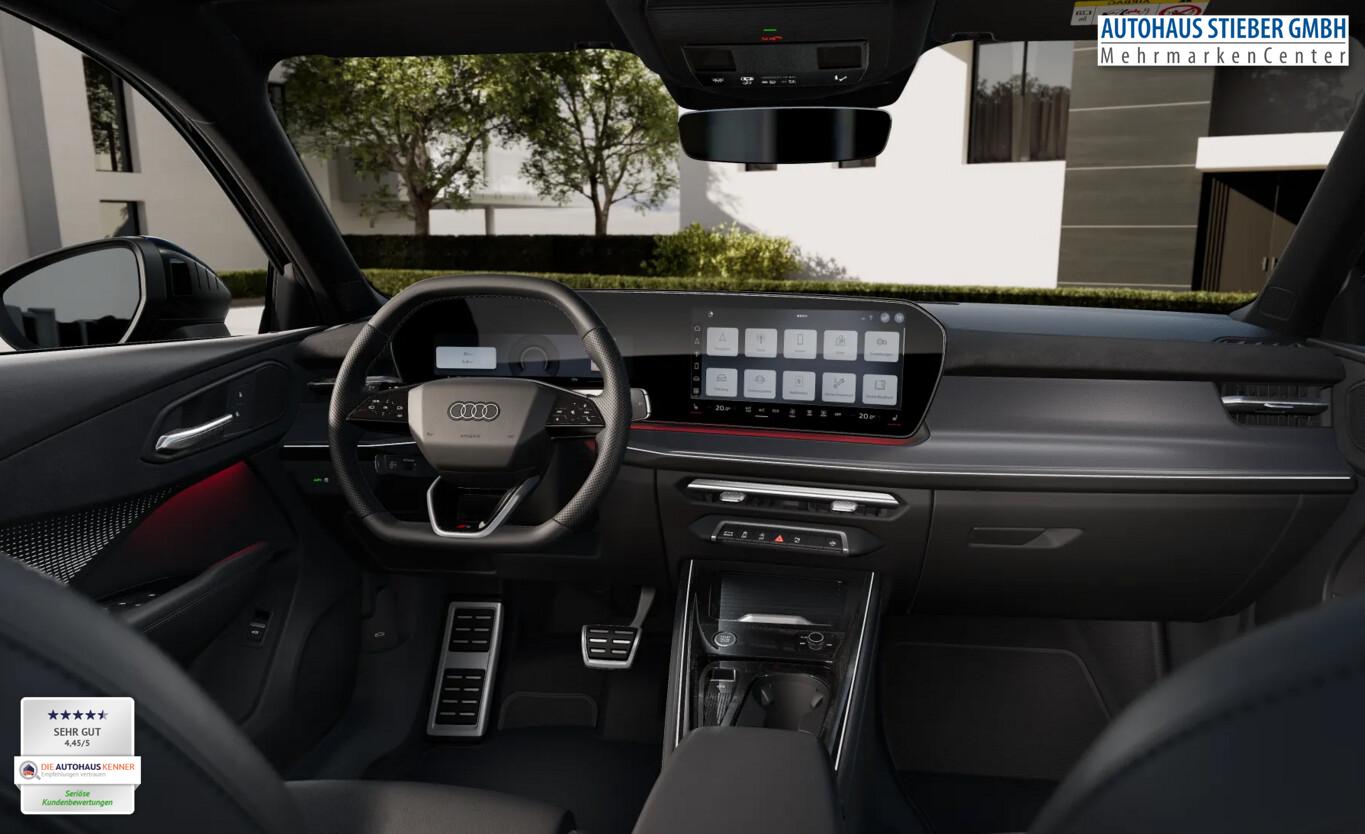 Komfort-Klimaautomatik 3-Zonen, Optik-Paket schwarz plus, Audi Smartphone Interface, Gepäckraumklappe elektr. betätigt (öffnen + schliessen), Kombiinstrument digital (virtual cockpit plus), Schließ-/Startsystem Advanced Key (Komfortschlüssel) (Start-Stop-Knopf), Rückfahrkamera, Bluetooth-Freisprecheinrichtung mit Spracherkennung (Audi Phone Box), Verglasung hinten abgedunkelt (Privacyverglasung), Fahrassistenz-System: Parklenkassistent (Einparkhilfe vorn und hinten, optisch (APS Plus)), Sitzheizung vorn, Außenspiegel elektr. verstell-, heiz- und anklappbar, mit Abblendautomatik und Bordsteinautomatik (Außenspiegel mit Bordsteinautomatik, rechts), Sound-System DSP / Audi Sound-System, Lendenwirbelstützen vorn, elektr. verstellbar, Dachhimmel Stoff, schwarz, Innenspiegel mit Abblendautomatik, Fahrassistenz-System: Fernlichtassistent, Einstiegsleuchten LED mit Projektionsfunktion, Außenspiegel schwarz, Isofix-Aufnahmen für Kindersitz an Beifahrersitz, 2 USB-C-Anschlüssen mit Ladefunktion im Fond, 2 USB-Schnittstellen in der 1. Sitzreihe, Akustikverglasung Türscheiben vorn, Ambiente-Lichtpaket pro, Audi connect Navigation & Infotainment, Dekoreinlage Aluminium Divergenz dunkel, Digitale Matrix LED-Scheinwerfer, Exterieur S line, Fahrassistenz-System: Abbiege- und Ausweichassistent, Fahrassistenz-System: Geschwindigkeitsassistent adaptiv mit prädiktiver Regelung, Fahrassistenz-System: Müdigkeitserkennung, Fahrassistenz-System: Querverkehrassistent vorn, Fahrassistenz-System: Spurverlassenswarnung, Fahrassistenz-System: Spurwechselwarnung mit Ausstiegswarnung und Querverkehrassistent hinten, Fahrassistenz-System: Verkehrszeichenerkennung, Insassenschutz proaktiv front, seite und heck, Interieur S line, Isofix-Aufnahmen für Kindersitz an Rücksitze, Klimatisierungspaket plus, LED-Heckleuchten pro, Lenkrad (Sport/Leder - 3-Speichen, oben und unten abgeflacht) mit Multifunktion und Schaltwippen, Leuchtende Audi Ringe hinten, LM-Felgen 8,5x19 (5-Arm, platingrau), MMI experience plus, MMI Navigation plus mit MMI touch, Reifen 255/45 R19, Sitzbezug / Polsterung: Leder/Kunstleder-Kombination, Sportsitze vorn, Tech plus, Blinkleuchten LED in Außenspiegel integriert, Dachkantenspoiler, Einstiegsleisten mit Aluminiumeinlage und Schriftzug, beleuchtet, Geschwindigkeits-Begrenzeranlage, Karosserie: 4-türig, Kindersicherung elektr. betätigt, Motor 2,0 Ltr. - 140 kW 16V TFSI, Otto-Partikelfilter (OPF), Parkbremse elektro-mechanisch, Radioempfang digital (DAB), Radstand 2680 mm, Anti-Blockier-System (ABS), Fahrassistenz-System: Bremsassistent (Audi pre sense front), Antriebsart: Allradantrieb, Audi Drive Select, Elektron. Stabilitätskontrolle (ESC), Wegfahrsperre (elektronisch), Getriebe 7-Gang - Doppelkupplungsgetriebe S-tronic, Airbag Beifahrerseite abschaltbar, Airbag Fahrer-/Beifahrerseite, Kopf-Airbag-System (Sideguard), Rücksitzlehne geteilt/klappbar, verschiebbar (40:20:40), Seitenairbag vorn, Fahrassistenz-System: Berganfahr-Assistent, Fahrassistenz-System: Notfall-Assistent mit automatischem Notruf, Progressivlenkung, Licht- und Regensensor, Fahrassistenz-System: Insassen-Schutzsystem (Audi pre sense basic), Reifenkontroll-Anzeige, Start/Stop-Anlage