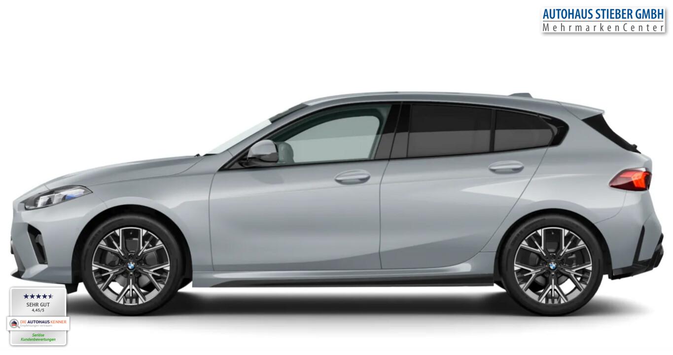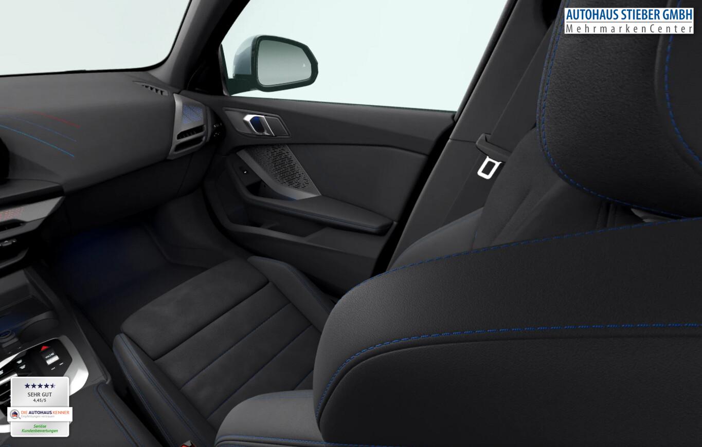 Premium-Paket (Induktionsladeschale für Smartphone (Wireless Charging) / Innenspiegel beschichtet (Elektrochrom) / Innenspiegel mit Abblendautomatik / Innenspiegel rahmenlos / Spiegel-Paket / Komfortzugang (Öffnungs- und Schließsystem) / Außenspiegel mit Abblendautomatik, links / Außenspiegel mit Bordsteinautomatik, rechts / Fahrassistenz-System: Fernlichtassistent / Scheinwerfer LED mit adaptiver Lichtverteilung), Fahrassistenz-System: Driving Assistant Plus (Fahrassistenz-System: Verkehrszeichenerkennung mit Speed Limit-Assistent / Geschwindigkeits-Regelanlage, Aktiv mit Stop&Go-Funktion), Sonnenschutzverglasung (hinten abgedunkelt), LM-Felgen 8x18 (Y-Speiche 975, Bicolor, Midnight Grey, glanzgedreht), Außenspiegel anklappbar, Dachzierleisten in Wagenfarbe, Einstiegsleisten Aluminiumeinleger mit Schriftzug ,,M", Fahrassistenz-System: Ausstiegswarnung, Fahrassistenz-System: Ausweichassistent, Fahrassistenz-System: Linksabbiegewarnung mit Bremsfunktion, Fahrassistenz-System: Spurverlassenswarnung mit aktiver Rückführung, Fahrassistenz-System: Verkehrszeichenerkennung, Getränkehalter vorn, Instrumententafel mit Kontrastnähten, Intelligent Personal Assistant, Interieur Lichtpaket, M Interieurdekore Illuminated Aluminium Hexacube, matt, M Kennzeichnung an den Seiten, Navigationssystem, Pedalauflagen in Edelstahloptik, Reifen 225/45 R18, Schadstoffarm nach Abgasnorm Euro 6e (EU6 EA), Motor 1,5 Ltr. - 90 kW 12V KAT (Motor 1,5 Ltr. - 90 kW 12V), Parkassistent-Paket (Fahrassistenz-System: Anhängerassistent / Fahrassistenz-System: Parken Anfahrüberwachung / Fahrassistenz-System: Rückfahr-Assistent / Fahrassistenz-System: Rückfahrhilfe Notbremsfunktion (Active PDC) / Rückfahrkamera / Fahrassistenz-System: Park-Assistent), Fahrassistenz-System: Driving Assistant (Fahrassistenz-System: Heckaufprall-Vermeidung (Prävention Heckkollision) / Fahrassistenz-System: Querverkehrs-Assistent / Fahrassistenz-System: Spurwechsel-Warnsystem), Aktive Motorhaube, Außenausstattung: Shadow-Line Hochglanz, BMW Live Cockpit Plus, Dachhimmel Anthrazit, Geschwindigkeits-Begrenzeranlage (Speed Limit Device), Karosserie: 5-türig, M Sport, Parkbremse elektrisch, Personalisierungssystem (BMW My Modes), Personalisierungssystem (Personal eSIM), Radioempfang digital (DAB+), Service-System: Gesetzlicher Notruf, Sitzbezug / Polsterung: M Alcantara / Veganza Kombination (Schwarz mit blau Kontraststeppung), Multimedia-Schnittstelle 2 x USB (Typ C) Mittelkonsole vorn, Anti-Blockier-System (ABS), Bremsassistent, Fahrassistenz-System: Active Guard (Bremsassistent), Adaptives Fahrwerk M-Technic, Getriebe 7-Gang - Doppelkupplungsgetriebe mit Steptronic und Schaltwippen, Klimaautomatik, Airbag Beifahrerseite abschaltbar, Airbag Fahrer-/Beifahrerseite, Armauflage vorn, Fensterheber elektrisch, Isofix-Aufnahmen für Kindersitz an Beifahrersitz, Isofix-Aufnahmen für Kindersitz an Rücksitz, Sitzheizung vorn, Sportsitze vorn, Zentralverriegelung mit Fernbedienung, Geschwindigkeits-Regelanlage mit Bremsfunktion, Service-System: Intelligenter Notruf inkl. TeleServices, Lenkrad (Leder) mit Multifunktion M-Technic, Servolenkung Servotronic, Licht- und Regensensor, Lichtassistent (Follow me home), Scheinwerfer LED, Fahrassistenz-System: Aufmerksamkeits-Assistent, Fahrassistenz-System: Performance Control, Reifendruck-Kontrollsystem