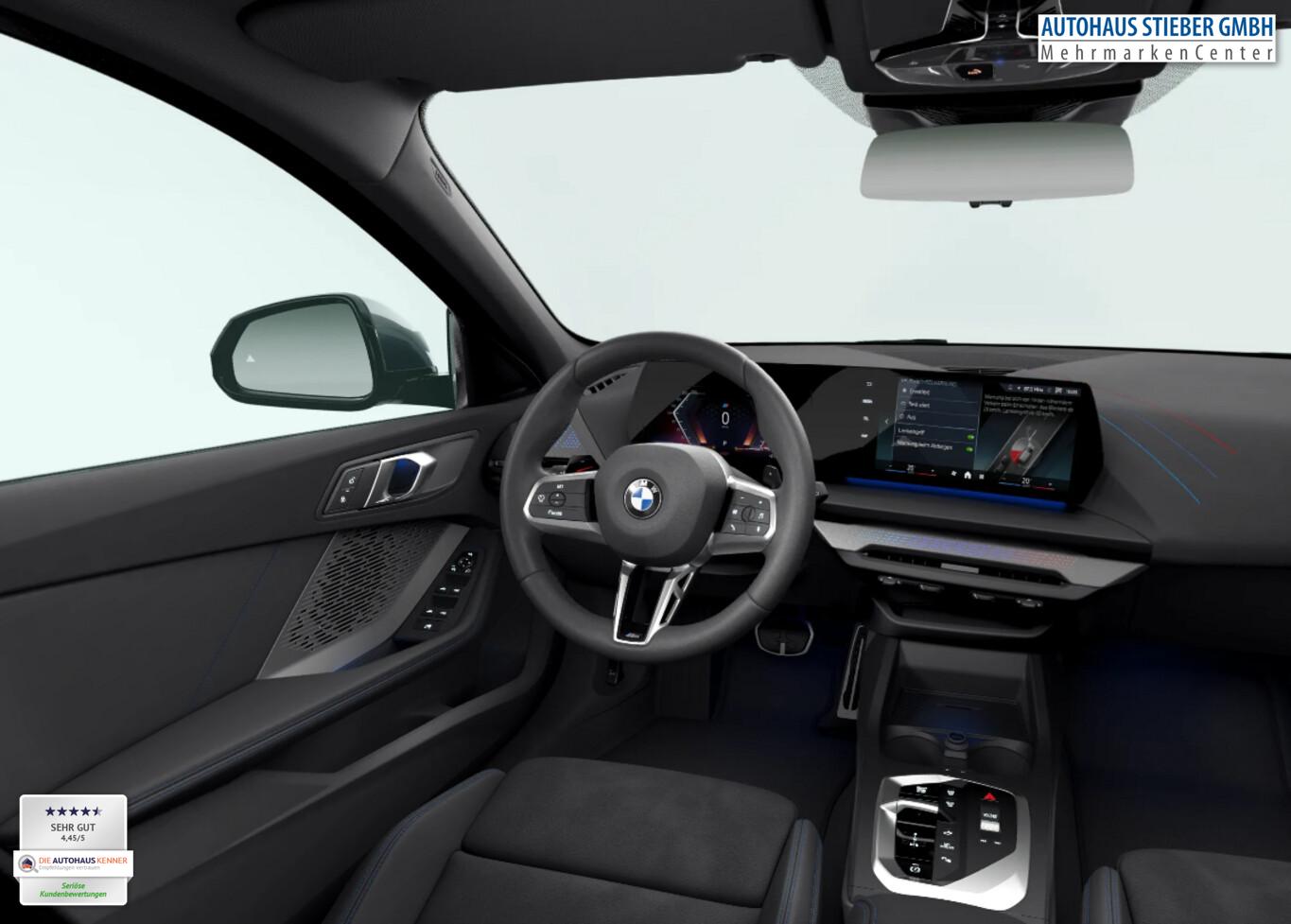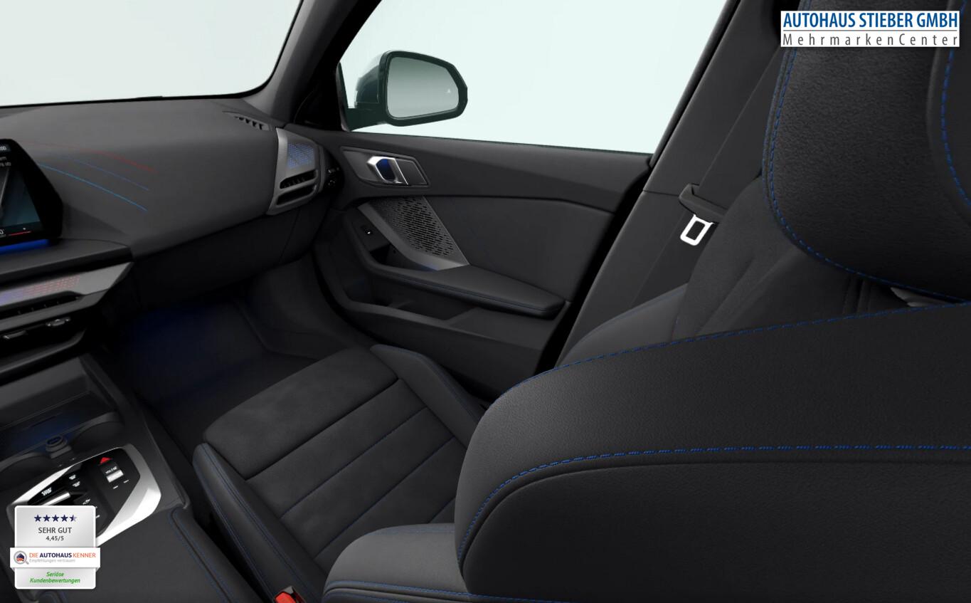 Premium-Paket (Induktionsladeschale für Smartphone (Wireless Charging) / Innenspiegel beschichtet (Elektrochrom) / Innenspiegel mit Abblendautomatik / Innenspiegel rahmenlos / Spiegel-Paket / Komfortzugang (Öffnungs- und Schließsystem) / Außenspiegel mit Abblendautomatik, links / Außenspiegel mit Bordsteinautomatik, rechts / Fahrassistenz-System: Fernlichtassistent / Scheinwerfer LED mit adaptiver Lichtverteilung), Panoramadach (Glas), Sonnenschutzverglasung (hinten abgedunkelt), LM-Felgen 8x18 (Y-Speiche 975, Bicolor, Midnight Grey, glanzgedreht), Außenspiegel anklappbar, Dachzierleisten in Wagenfarbe, Einstiegsleisten Aluminiumeinleger mit Schriftzug ,,M", Fahrassistenz-System: Ausstiegswarnung, Fahrassistenz-System: Ausweichassistent, Fahrassistenz-System: Linksabbiegewarnung mit Bremsfunktion, Fahrassistenz-System: Spurverlassenswarnung mit aktiver Rückführung, Fahrassistenz-System: Verkehrszeichenerkennung, Getränkehalter vorn, Instrumententafel mit Kontrastnähten, Intelligent Personal Assistant, Interieur Lichtpaket, M Interieurdekore Illuminated Aluminium Hexacube, matt, M Kennzeichnung an den Seiten, Navigationssystem, Pedalauflagen in Edelstahloptik, Reifen 225/45 R18, Schadstoffarm nach Abgasnorm Euro 6e (EU6 EA), Motor 1,5 Ltr. - 90 kW 12V KAT (Motor 1,5 Ltr. - 90 kW 12V), Parkassistent-Paket (Fahrassistenz-System: Anhängerassistent / Fahrassistenz-System: Parken Anfahrüberwachung / Fahrassistenz-System: Rückfahr-Assistent / Fahrassistenz-System: Rückfahrhilfe Notbremsfunktion (Active PDC) / Rückfahrkamera / Fahrassistenz-System: Park-Assistent), Fahrassistenz-System: Driving Assistant (Fahrassistenz-System: Heckaufprall-Vermeidung (Prävention Heckkollision) / Fahrassistenz-System: Querverkehrs-Assistent / Fahrassistenz-System: Spurwechsel-Warnsystem), Aktive Motorhaube, Außenausstattung: Shadow-Line Hochglanz, BMW Live Cockpit Plus, Dachhimmel Anthrazit, Geschwindigkeits-Begrenzeranlage (Speed Limit Device), Karosserie: 5-türig, M Sport, Parkbremse elektrisch, Personalisierungssystem (BMW My Modes), Personalisierungssystem (Personal eSIM), Radioempfang digital (DAB+), Service-System: Gesetzlicher Notruf, Sitzbezug / Polsterung: M Alcantara / Veganza Kombination (Schwarz mit blau Kontraststeppung), Multimedia-Schnittstelle 2 x USB (Typ C) Mittelkonsole vorn, Anti-Blockier-System (ABS), Bremsassistent, Fahrassistenz-System: Active Guard (Bremsassistent), Adaptives Fahrwerk M-Technic, Getriebe 7-Gang - Doppelkupplungsgetriebe mit Steptronic und Schaltwippen, Klimaautomatik, Airbag Beifahrerseite abschaltbar, Airbag Fahrer-/Beifahrerseite, Armauflage vorn, Fensterheber elektrisch, Isofix-Aufnahmen für Kindersitz an Beifahrersitz, Isofix-Aufnahmen für Kindersitz an Rücksitz, Sitzheizung vorn, Sportsitze vorn, Zentralverriegelung mit Fernbedienung, Geschwindigkeits-Regelanlage mit Bremsfunktion, Service-System: Intelligenter Notruf inkl. TeleServices, Lenkrad (Leder) mit Multifunktion M-Technic, Servolenkung Servotronic, Licht- und Regensensor, Lichtassistent (Follow me home), Scheinwerfer LED, Fahrassistenz-System: Aufmerksamkeits-Assistent, Fahrassistenz-System: Performance Control, Reifendruck-Kontrollsystem