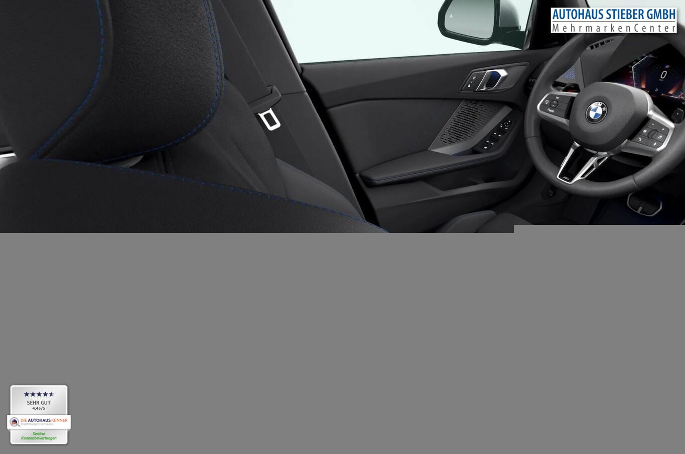 Sonnenschutzverglasung (hinten abgedunkelt), LM-Felgen 8x18 (Y-Speiche 975, Bicolor, Midnight Grey, glanzgedreht), Außenspiegel anklappbar, Dachzierleisten in Wagenfarbe, Einstiegsleisten Aluminiumeinleger mit Schriftzug ,,M", Fahrassistenz-System: Ausstiegswarnung, Fahrassistenz-System: Ausweichassistent, Fahrassistenz-System: Linksabbiegewarnung mit Bremsfunktion, Fahrassistenz-System: Spurverlassenswarnung mit aktiver Rückführung, Fahrassistenz-System: Verkehrszeichenerkennung, Getränkehalter vorn, Instrumententafel mit Kontrastnähten, Intelligent Personal Assistant, Interieur Lichtpaket, M Interieurdekore Illuminated Aluminium Hexacube, matt, M Kennzeichnung an den Seiten, Navigationssystem, Pedalauflagen in Edelstahloptik, Reifen 225/45 R18, Schadstoffarm nach Abgasnorm Euro 6e (EU6 EA), Motor 1,5 Ltr. - 90 kW 12V KAT (Motor 1,5 Ltr. - 90 kW 12V), Parkassistent-Paket (Fahrassistenz-System: Anhängerassistent / Fahrassistenz-System: Parken Anfahrüberwachung / Fahrassistenz-System: Rückfahr-Assistent / Fahrassistenz-System: Rückfahrhilfe Notbremsfunktion (Active PDC) / Rückfahrkamera / Fahrassistenz-System: Park-Assistent), Fahrassistenz-System: Driving Assistant (Fahrassistenz-System: Heckaufprall-Vermeidung (Prävention Heckkollision) / Fahrassistenz-System: Querverkehrs-Assistent / Fahrassistenz-System: Spurwechsel-Warnsystem), Aktive Motorhaube, Außenausstattung: Shadow-Line Hochglanz, BMW Live Cockpit Plus, Dachhimmel Anthrazit, Geschwindigkeits-Begrenzeranlage (Speed Limit Device), Karosserie: 5-türig, M Sport, Parkbremse elektrisch, Personalisierungssystem (BMW My Modes), Personalisierungssystem (Personal eSIM), Radioempfang digital (DAB+), Service-System: Gesetzlicher Notruf, Sitzbezug / Polsterung: M Alcantara / Veganza Kombination (Schwarz mit blau Kontraststeppung), Multimedia-Schnittstelle 2 x USB (Typ C) Mittelkonsole vorn, Anti-Blockier-System (ABS), Bremsassistent, Fahrassistenz-System: Active Guard (Bremsassistent), Adaptives Fahrwerk M-Technic, Getriebe 7-Gang - Doppelkupplungsgetriebe mit Steptronic und Schaltwippen, Klimaautomatik, Airbag Beifahrerseite abschaltbar, Airbag Fahrer-/Beifahrerseite, Armauflage vorn, Fensterheber elektrisch, Isofix-Aufnahmen für Kindersitz an Beifahrersitz, Isofix-Aufnahmen für Kindersitz an Rücksitz, Sitzheizung vorn, Sportsitze vorn, Zentralverriegelung mit Fernbedienung, Geschwindigkeits-Regelanlage mit Bremsfunktion, Service-System: Intelligenter Notruf inkl. TeleServices, Lenkrad (Leder) mit Multifunktion M-Technic, Servolenkung Servotronic, Licht- und Regensensor, Lichtassistent (Follow me home), Scheinwerfer LED, Fahrassistenz-System: Aufmerksamkeits-Assistent, Fahrassistenz-System: Performance Control, Reifendruck-Kontrollsystem