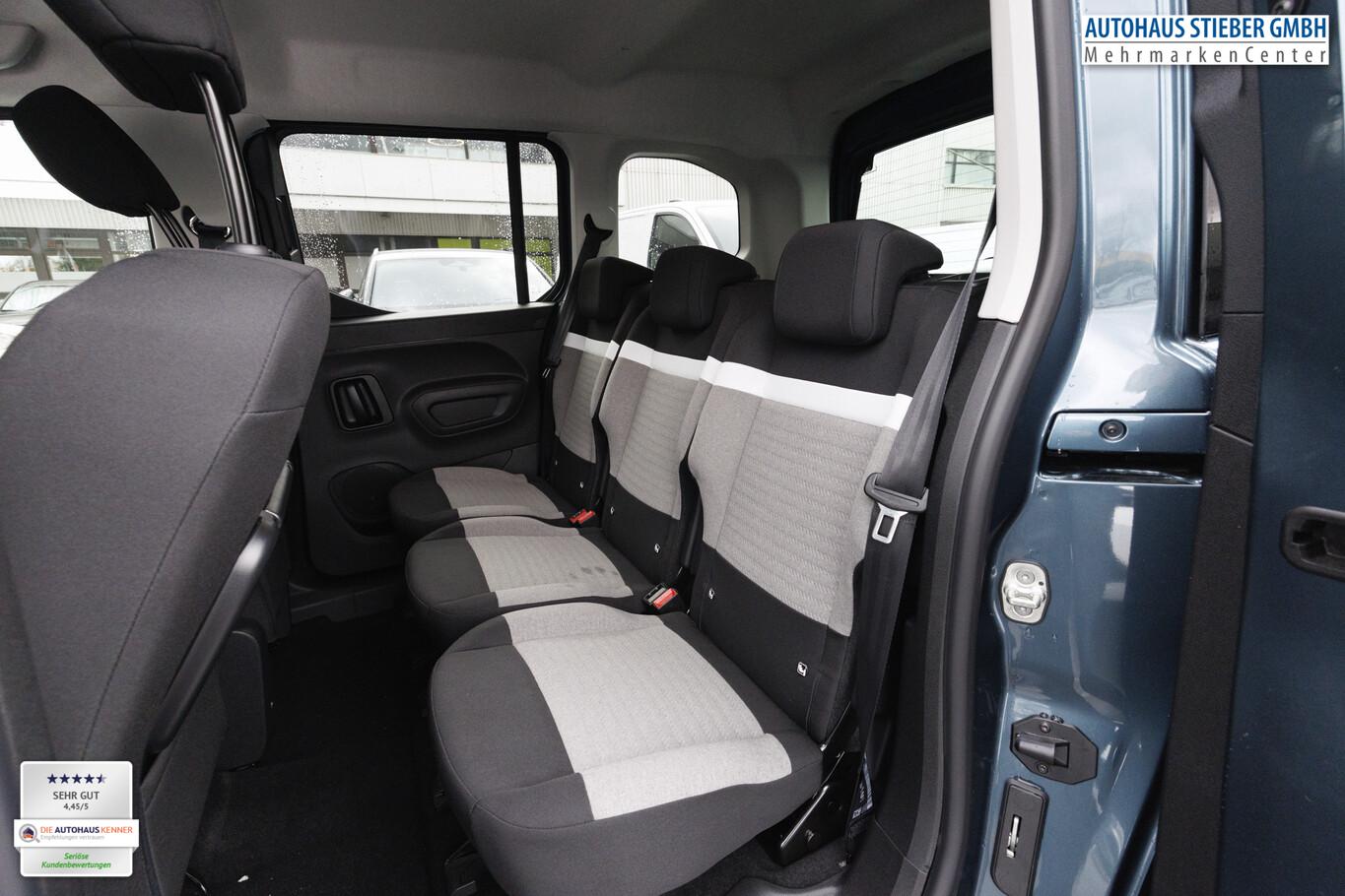 Audio-Navigationssystem: MyCitroen Drive (Kombiinstrument digital (10,0 Zoll) / Multifunktionsanzeige mit HD Touchscreen-Farbdisplay 10 Zoll / Freisprecheinrichtung Bluetooth / Navigationssystem: NaviDrive 3D / Smartphone Schnittstelle (Apple CarPlay & Android Auto) / USB-Anschluss (Typ C) / Audiobedienung am Lenkrad), 2. Sitzreihe, Einzelsitze klappbar (3. Sitzplätze), Airbump und Nebelscheinwerfer mit weißem Dekorstreifen, Außenspiegel elektr. verstell-, heiz- und anklappbar, Außenspiegelgehäuse in Schwarz, Belüftungsauslässe im Fond, Dachreling, Fensterheber elektrisch vorn und hinten, Induktionsladeschale für Smartphone (Wireless Charging), Isofix-Aufnahmen für Kindersitz an Rücksitz, Kindersicherung elektr. betätigt, Klimaautomatik 2-Zonen, Lenkrad (Leder) mit Multifunktion, Lenkrad heizbar, LM-Felgen 16 Zoll (Starlit), Nebelscheinwerfer, Reifen 205/60 R16, Schadstoffarm nach Abgasnorm Euro 6e (EU6EA), Schiebetüren beidseitig, mit elektr. Fensterhebern, Sitzbezug / Polsterung: Stoff (Slash Grey), Steckdose 220V, Zentralverriegelung / Startanlage Keyless System, Heckklappe, Scheibe ausstellbar (Heckscheibe aufstellbar / Heckscheibe heizbar / Heckscheibenwischer / Seitenscheiben hinten dunkel getönt und Heckscheibe stärker getönt), Sicht-Paket (Ablagegalerie (Modubox) / Scheibenwaschanlage vorn mit integrierten Scheibenwaschdüsen (Magic) / Einschaltautomatik für Fahrlicht / Scheibenwischer mit Regensensor), Elektron. Stabilitäts-Programm (ESP) (Antischlupfregelung (ASR)), Airbag Fahrer-/Beifahrerseite (Airbag Beifahrerseite), Fahrassistenz-System: Notruf- und Assistance-System (CITROEN Connect) (Vorbereitung für Citroen Connect-Box), Sicherheits-Paket (Fahrassistenz-System: Aktiver Notbrems-Assistent (Active Safety Brake) / Geschwindigkeits-Regelanlage (Tempomat) inkl. Geschwindigkeits-Begrenzeranlage / Fahrassistenz-System: Fernlichtassistent / Fahrassistenz-System: Aufmerksamkeits-Assistent (Müdigkeitserkennungs-Sensor) / Fahrassistenz-System: Spurassistent (AFIL)), Heckspoilerlippe, Karosserie: 5-türig, Lendenwirbelstütze manuell verstellbar, Motor 1,5 Ltr. - 96 kW Blue-HDI FAP, Parkbremse elektrisch, Radstand 2785 mm, Seitenschutzflächen stoßabsorbierend, Black (Airbump), Sitz vorn links höhenverstellbar, Steckdose (12V-Anschluß) in Mittelkonsole vorn, Anti-Blockier-System (ABS), Getriebe Automatik - (8-Stufen), Airbag Beifahrerseite abschaltbar, Kopf-Airbag-System, Kopf-Airbag-System hinten, Mittelarmlehne für Fahrersitz, Seitenairbag vorn, Bordcomputer, Rückfahrkamera mit 180° Umgebungsansicht, Tagfahrlicht (separat) LED, Einparkhilfe hinten, Reifendruck-Kontrollsystem, Rußpartikelfilter, Stop-Start-Anlage