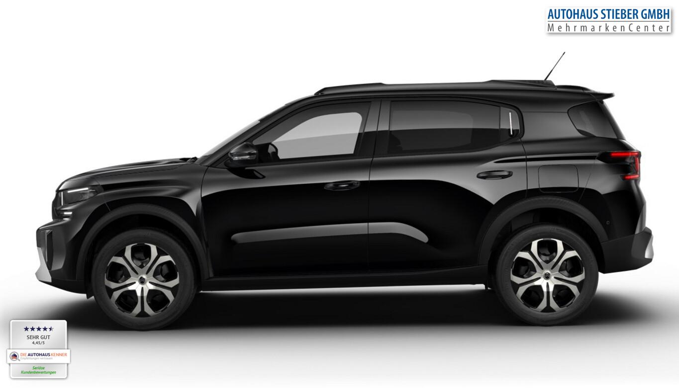 Anti-Blockier-System (ABS), Audiosystem inkl. 10"-Touchscreen, 6 Lautsprecher, USB-Schnittstelle (Typ C), Elektron. Stabilitäts-Programm (ESP), Fahrassistenz-System: Spurassistent (AFIL), Gepäckraumbeleuchtung, Geschwindigkeits-Regelanlage (Tempomat) inkl. Geschwindigkeits-Begrenzeranlage, Innenraumbeleuchtung LED, Kartentasche an den Rückseiten der Vordersitze, Kindersicherung manuell, Lenkrad mit Multifunktion, Navigation in Verbindung mit dem Smartphone (über Apple Carplay / Android Auto /...), Radioempfang digital (DAB), Reifen 215/60 R17, Schadstoffarm nach Abgasnorm Euro 6e (EU6 EA), Servolenkung, Smartphone-Schnittstelle (Apple CarPlay & Android Auto), Verzurrösen im Gepäckraum, Fahrassistenz-System: Automatische Fahrlichtschaltung inkl. Fernlichtassistent (Einschaltautomatik für Fahrlicht), Einparkhilfe hinten inkl. Rückfahrkamera (Rückfahrkamera), Citroen Advanced Comfort Sitze, Heckscheibe heizbar, Heckscheibenwischer, Karosserie: 5-türig, Koffer-/Laderaumboden variabel (Moduboard), Lenksäule (Lenkrad) mech. höhen-/längsverstellbar, Mild-Hybrid 107 kW (Motor 1,2 Ltr. - 100 kW), Parkbremse elektrisch, Radstand 2670 mm, Sitz vorn links höhenverstellbar, Sitzbezug / Polsterung: Stoff, Stahlfelgen 7x17, Steckdose (12V-Anschluß) in Mittelkonsole vorn, Antriebsart: Frontantrieb, Getriebe Automatik - Doppelkupplungsgetriebe (6-Stufen, Hybrid), Klimaautomatik, Airbag Beifahrerseite abschaltbar, Airbag Fahrer-/Beifahrerseite, Kopf-Airbag-System und Seitenairbag, Fensterheber elektrisch hinten, Fensterheber elektrisch vorn, Isofix-Aufnahmen für Kindersitz an Rücksitz, Rücksitzlehne geteilt/klappbar 1/3-2/3, Seitenscheiben hinten und Heckscheibe dunkel getönt, Zentralverriegelung mit Fernbedienung, Head-up-Display (Kombiinstrument hochgesetzt), Dachreling schwarz, Fahrassistenz-System: Verkehrszeichenerkennung, Außenspiegel elektr. verstell-, heiz- und anklappbar, Scheibenwischer mit Regensensor, Scheinwerfer Eco-LED, Tagfahrlicht LED, Reifendruck-Kontrollsystem