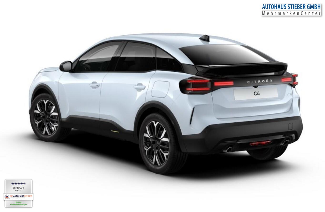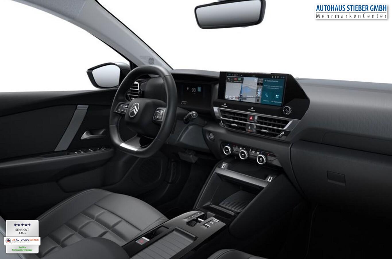 Advanced Comfort Sitze, Außenspiegelkappen schwarz, Fahrmodusschalter, Fensterheber elektrisch vorn, Isofix-Aufnahmen für Kindersitz an Rücksitz, Lendenwirbelstütze Sitz vorn links, Leseleuchten vorn und hinten, LM-Felgen 18", Navigationssystem inkl. 10"-HD-Touchscreen, Notrufsystem eCall, Reifen 195/60 R18, Schadstoffarm nach Abgasnorm Euro 6e (EU6 EA), Sitzbezug / Polsterung: Stoff, Sitze vorn höhenverstellbar, Smartphone-Schnittstelle (Apple CarPlay & Android Auto), USB-Schnittstelle (Typ C), Drive-Assist-Paket (Warnanlage für Sicherheitsgurte / Fahrassistenz-System: Aktiver Notbrems-Assistent (Active Safety Brake) / Fahrassistenz-System: Kollisionswarnsystem / Adaptive Geschwindigkeitsregelanlage (ACC) inkl. Stop&Go / Fahrassistenz-System: Verkehrszeichenerkennung Plus (Geschwindigkeits-Regel-/Begrenzeranlage) / Frontkamera / Einschaltautomatik für Fahrlicht / Fahrassistenz-System: Fernlichtassistent / Fahrassistenz-System: Totwinkel-Assistent / Scheibenwischer mit Regensensor / Fahrassistenz-System: Aufmerksamkeits-Assistent (Müdigkeitserkennungs-Sensor) / Fahrassistenz-System: Spurassistent (AFIL)), Elektron. Stabilitäts-Programm (ESP) (Antischlupfregelung (ASR)), Scheinwerfer Eco-LED (Einschaltautomatik für Fahrlicht / Scheibenwischer mit Regensensor), Einparkhilfe vorn und hinten inkl. Rückfahrkamera mit Top Rear Vision und Parksensoren seitlich (Rückfahrkamera mit Top Rear Vision / Einparkhilfe vorn und hinten), Comfort Federung (Citroen Advanced), Innenspiegel mit Abblendautomatik, Karosserie: 5-türig, Koffer-/Laderaumboden variabel (Moduboard), Kombiinstrument digital (7 Zoll), Mittelkonsole mit Ablagefach, Otto-Partikelfilter (GPF), Parkbremse elektrisch, Rücksitz mit Armlehne, Freisprecheinrichtung Bluetooth, USB-Anschlüsse (Typ A, 2-fach), Anti-Blockier-System (ABS), Getriebe Automatik - Doppelkupplungsgetriebe (6-Stufen, Hybrid), Klimaautomatik, Fahrer-/Beifahrerseite getrennt regelbar, Airbag Beifahrerseite abschaltbar, Fensterheber elektrisch hinten, Kopf-Airbag-System, Mittelarmlehne vorn, Seitenairbag vorn, Seitenscheiben hinten und Heckscheibe dunkel getönt, Zentralverriegelung / Startanlage Keyless System, Bordcomputer, Fahrassistenz-System: Berganfahrhilfe, Lenkrad (Leder), Außenspiegel elektr. verstell-, heiz- und anklappbar, Tagfahrlicht LED, Reifendruck-Kontrollsystem