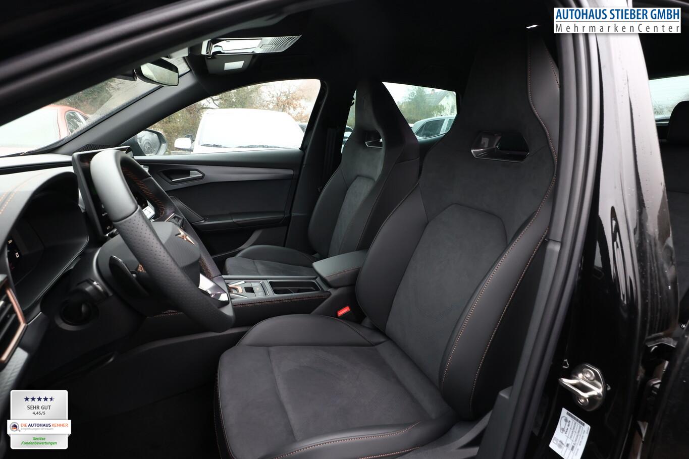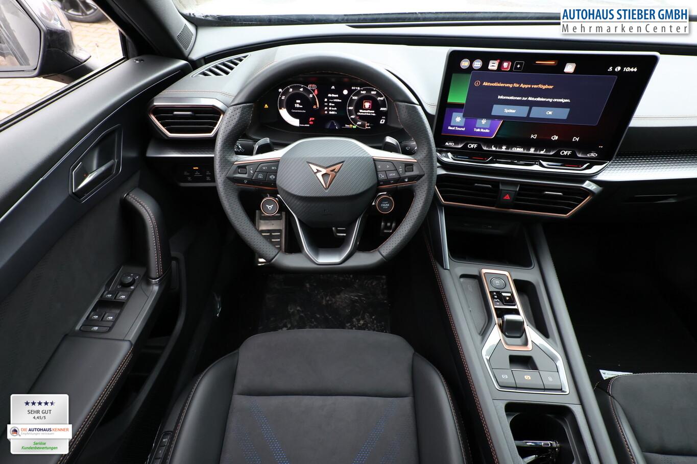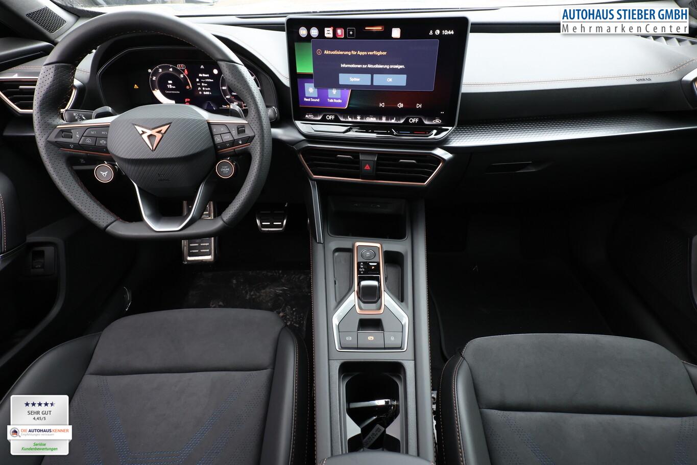 Performance-Paket (Fahrassistenz-System: Adaptive Fahrwerksregelung (DCC) / HD Matrix-LED-Scheinwerfer), Design-Paket Dynamic (Lendenwirbelstütze Sitz vorn links, elektr. verstellbar / Sitzbezug / Polsterung: Stoff Dinamica / Kunstleder schwarz mit blauen Akzenten / Sitz vorn links elektr. verstellbar (mit Memory) / Sitzheizung vorn / Sport-Schalensitze vorn mit integrierten Kopfstützen / Außenspiegel elektr. verstell-, heiz- und anklappbar, Spiegelabsenkung, Welcome Light, Memory / Winter-Paket), Edge-Paket (Ambiente-Beleuchtung LED / Ambiente-Beleuchtung Smart Ambient Light / Schließ-/Startsystem Kessy Advanced / Heckklappe/-Deckel elektr. betätigt (öffnen + schliessen, sensorgesteuert) / Rückfahrkamera / Diebstahl-Warnanlage mit Innenraumüberwachung und Abschleppschutz), Audiosystem inkl. 12,9"-Touchscreen, Fahrassistenz-System: Abbiege- und Ausweichassistent, Fahrassistenz-System: Autom. Distanzregelung (ACC), Fahrassistenz-System: Kreuzungsassistent, Gepäcktaschen an Rückseite der Vordersitzlehnen, Geschwindigkeits-Begrenzeranlage, Induktionsladeschale für Smartphone, Isofix-Aufnahmen für Kindersitz an Beifahrersitz und Rücksitz, LM-Felgen 8x19, Mittelarmlehne hinten, Navigation in Verbindung mit dem Smartphone (über Apple Carplay / Android Auto /...), Reifen 245/40 R19, Rücksitzlehne geteilt/klappbar, Schadstoffarm nach Abgasnorm Euro 6e (EU6 EA), Schublade unter dem rechten Vordersitz, Serviceintervall 30.000 km oder 2 Jahre, Sprachsteuerungs-System, Vorbereitung für Navigationssystem, Licht- und Sicht-Paket (Innenspiegel mit Abblendautomatik / Einschaltautomatik für Fahrlicht / Licht- und Regensensor / Lichtassistent (Coming Home, Leaving Home)), Einstiegsleisten vorn beleuchtet, Fensterzierleisten schwarz, Gepäckraumabdeckung / Rollo, Karosserie: 5-türig, Kombiinstrument digital (virtual cockpit), Kopfstützen hinten (3-fach), Ladekabel mit Schukostecker, Leseleuchten hinten LED, Leseleuchten vorn LED, Mobile Online Dienste Cupra Connect plus, Motor 2,0 Ltr. - 110 kW TDI, Parkbremse elektrisch mit Auto-Hold-Funktion, Radioempfang digital (DAB+), Radstand Standard, Sitz vorn rechts höhenverstellbar, Sonnenblende links mit Spiegel (beleuchtet), Sonnenblende rechts mit Spiegel (beleuchtet), Steckdose 230V im Gepäckraum, Warnanlage für Sicherheitsgurt-System, Full Link (MirrorLink, Apple CarPlay und Android Auto), USB-Schnittstelle vorn (2-fach, Typ C), Antriebsart: Frontantrieb, Elektron. Differentialsperre (XDS), Getriebe 7-Gang - Doppelkupplungsgetriebe DSG, Klimaanlage Climatronic 3-Zonen, Airbag Beifahrerseite abschaltbar, Airbag Fahrer-/Beifahrerseite, Fensterheber elektrisch vorn + hinten mit Komfortschaltung, Kopf-Airbag-System, Mittelarmlehne vorn, Seitenairbag, Seitenairbag vorn mitte (Central Airbag), Seitenscheiben hinten und Heckscheibe abgedunkelt, Dachreling schwarz, hochglänzend, Fahrassistenz-System: Automatische Distanzregelung (ACC), Fahrassistenz-System: Verkehrszeichenerkennung, Notrufsystem, Lenkrad heizbar (CUPRA Supersport, Leder) mit Multifunktion und Schaltfunktion, Progressivlenkung, Einparkhilfe vorn und hinten, Fahrassistenz-System: Müdigkeitserkennung, Fahrassistenz-System: Spurhalteassistent, Fahrassistenz-System: Umfeldbeobachtungssystem (Front assist) mit City-Notbremsfunktion, Reifenkontroll-Anzeige, Rußpartikelfilter, Start/Stop-Anlage