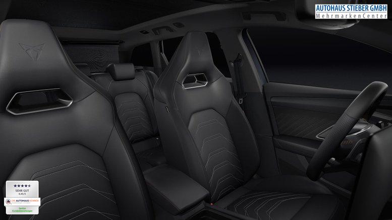• Dynamic Design Paket [CUPRA Sportschalensitze vorne mit Sitzmittelbahn in Dinamica, Farbe Soul Schwarz mit Akzenten in Astro Blau / Fahrersitz elektrisch einstellbar mit Memory-Funktion / Lendenwirbelstütze Fahrerseite, elektrisch einstellbar / Außenspiegel mit Memory-Funktion / Winter-Paket, Vordersitze beheizbar]