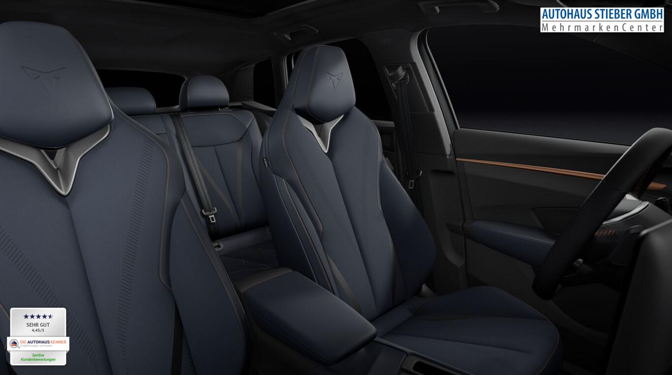 Skyline-Paket (Panorama Schiebe-/Hebedach elektrisch), Anhängerkupplung (Kugelkopf mit elektr. Entriegelung, schwenkbar), Fahrassistenz-System: Anhänger-Rangierassistent (Trailer Assist), Intelligent-Drive-Paket (Kamerasystem Umgebungsansicht (Top View, 360°) / Fahrassistenz-System: Fernlichtassistent / Fahrassistenz-System: Totwinkel-Assistent mit Auspark-Assistent, Spurwechselassistent und Ausstiegswarnung / Fahrassistenz-System: Intelligent Park Assist (IPA) / Fahrassistenz-System: Intelligenter Parkassistent inkl. trainiertem Parken / Fahrassistenz-System: Pre-Crash-System / Fahrassistenz-System: Spurhalteassistent Plus inkl. Travel Assist, Emergency Assist und Stauassistent), Digital Drive-Paket (Kombiinstrument digital (10,25 Zoll) / Kombiinstrument digital (virtual cockpit) / Audio-Navigationssystem mit Touchscreen Farbbildschirm 12,9" / Head-up-Display), LM-Felgen 8,5x20 (Hadron, schwarz / silber, glanzgedreht), Performance-Reifen, Mobile Online Dienste Cupra Connect plus, Außenspiegel elektr. verstell-, heiz- und anklappbar mit Spiegelabsenkung, Welcome Light, Diebstahl-Warnanlage mit Innenraumüberwachung und Abschleppschutz, Einstiegsleisten vorn beleuchtet, Fahrassistenz-System: Automatische Distanzregelung (ACC), Garantie Verlängerung auf: 5 Jahre / 100.000km, Heckklappe/-Deckel elektr. betätigt (öffnen + schliessen, sensorgesteuert), Induktionsladeschale für Smartphone, Isofix-Aufnahmen für Kindersitz an Beifahrersitz und Rücksitz, Klimaautomatik Climatronic 3-Zonen, Lenkrad heizbar (Sport/Leder) mit Multifunktion und Schaltfunktion, Reifen 255/40 R20, Schadstoffarm nach Abgasnorm Euro 6e (EU6 EB), Schließ-/Startsystem Kessy, Seitenscheiben hinten und Heckscheibe abgedunkelt, Serviceintervall 30.000 km oder 2 Jahre, Sitzheizung vorn, Sportsitze vorn, Connectivity-Box, Dachhimmel schwarz, Doppeltonhorn, Fahrassistenz-System: Abbiegebremsfunktion und Ausweichunterstützung, Fußraumbeleuchtung LED, Gepäck-/Laderaumboden doppelt, Geschwindigkeitsbegrenzer mit vorausschauender Geschw.-Regelung, Innenspiegel mit Abblendautomatik, Karosserie: 5-türig, Kopfstützen hinten (3-fach), Leseleuchten hinten LED, Leseleuchten vorn LED, Motor 2,0 Ltr. - 195 kW 16V TSI, Parkbremse elektrisch mit Auto-Hold-Funktion, Pedale Aluminium-Design, Radioempfang digital (DAB+), Radstand Standard, Reifen-Reparaturset, Sitz vorn links höhenverstellbar, Sitz vorn rechts höhenverstellbar, Sonnenblende links mit Spiegel (beleuchtet), Sonnenblende rechts mit Spiegel (beleuchtet), Warnanlage für Sicherheitsgurt-System, Full Link (MirrorLink, Apple CarPlay und Android Auto), Sprachsteuerungs-System, USB-Ladeanschlüsse (2-fach, Typ C) für 2.Sitzreihe, USB-Schnittstelle vorn (2-fach, Typ C), Antriebsart: Allradantrieb, Elektron. Stabilitäts-Programm (ESP) mit Bremskraftverstärker elektro-mechanisch, Fahrassistenz-System: Adaptive Fahrwerksregelung (DCC), Wegfahrsperre (elektronisch), Getriebe 7-Gang - Doppelkupplungsgetriebe DSG, Airbag Beifahrerseite abschaltbar, Airbag Fahrer-/Beifahrerseite, Fensterheber elektrisch vorn + hinten mit Komfortschaltung, Isofix-Aufnahmen für Kindersitz an Beifahrersitz und Rücksitz (inkl. i-Size-Kindersitze), Kopf-Airbag-System, Mittelarmlehne vorn, Rücksitzlehne geteilt/klappbar mit Mittelarmlehne und Durchladeeinrichtung, Seitenairbag, Seitenairbag vorn mitte (Central Airbag), Zentralverriegelung / Startanlage Keyless Go (Start-Stop-Knopf), Fahrassistenz-System: Fahrprofilauswahl (CUPRA Drive Profile), Dachreling schwarz, Wärmeschutzverglasung, Fahrassistenz-System: Berganfahr-Assistent, Fahrassistenz-System: Verkehrszeichenerkennung, Rückfahrkamera, Notrufsystem, Progressivlenkung, Heckleuchten LED mit dynamischem Blinklicht, Licht- und Regensensor, Lichtassistent (Coming Home, Leaving Home), Nebelscheinwerfer LED mit Abbiegelicht, Scheinwerfer Voll-LED, Tagfahrlicht LED, Einparkhilfe vorn und hinten, Fahrassistenz-System: Ablenkungs- und Müdigkeitserkennung, Fahrassistenz-System: Kreuzungs-Assistent (Crossroad Assist), Fahrassistenz-System: Spurhalteassistent, Fahrassistenz-System: Umfeldbeobachtungssystem (Front assist) mit City-Notbremsfunktion, Reifenkontroll-Anzeige