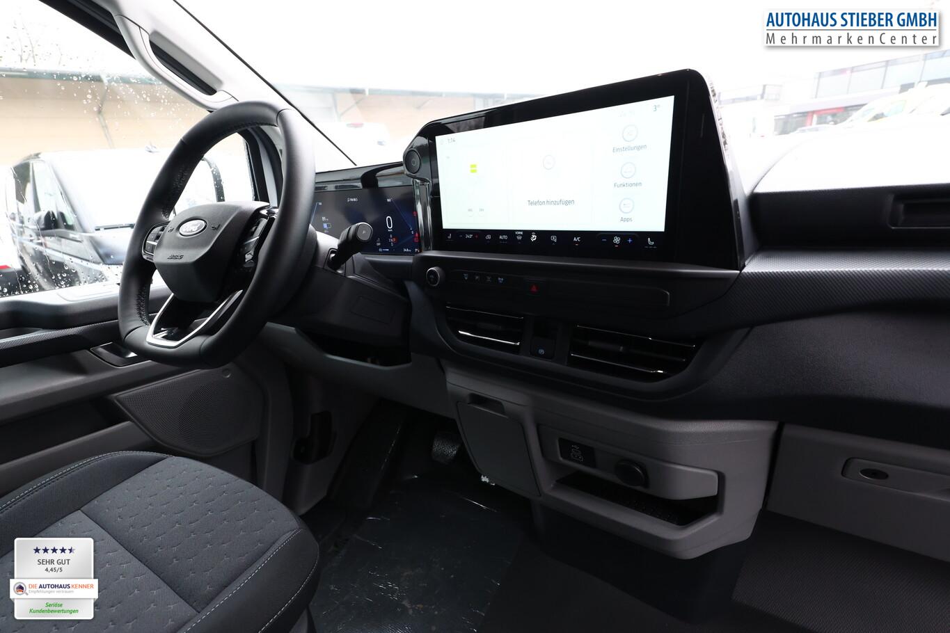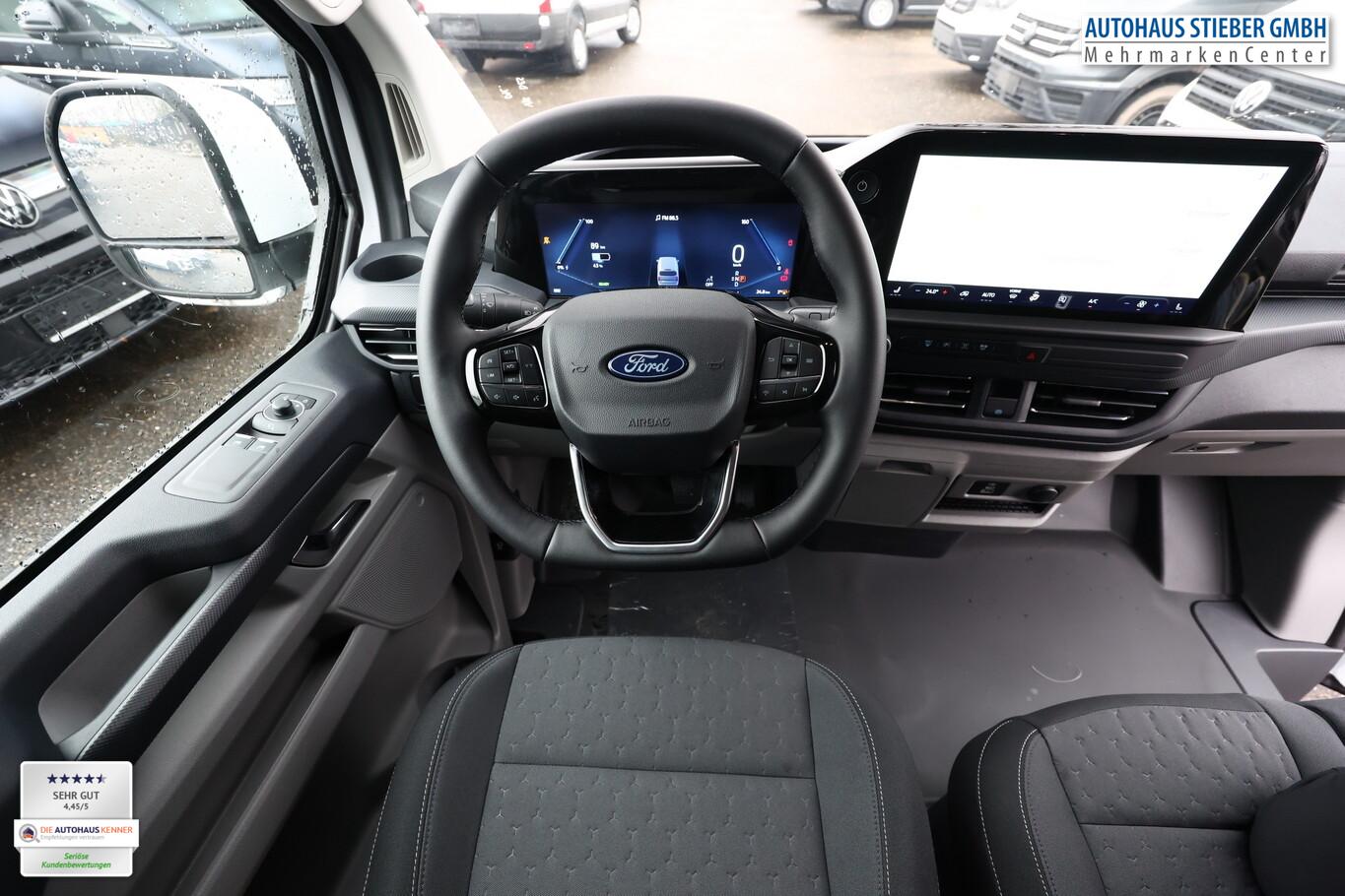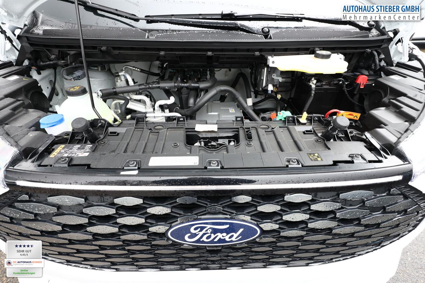 Anhängerkupplung: Kugelkopf fest, Induktionsladeschale für mobile Endgeräte, 4 Lautsprecher, Audiosystem: Radioempfang Digital (DAB / DAB+) mit 13" Multifunktionsdisplay und SYNC 4, Außenspiegel elektr. verstell-, heiz- und anklappbar, Bluetooth-Schnittstelle, Fahrassistenz-System: Falschfahrer-Warnfunktion, Fahrassistenz-System: Pre-Collision-System, Fahrassistenz-System: Spurhalteassistent, Fahrassistenz-System: Verkehrsschildassistent, Geschwindigkeits-Regelanlage (Tempomat), Heckflügeltüren (Öffnungswinkel 90/180 Grad), Heckleuchten LED, Intelligenter Geschwindigkeits-Begrenzer, Klapptisch vorn, Lenkrad (Leder, Sensico), Lenkrad mit Multifunktion, LM-Felgen 17 Zoll, Navigation in Verbindung mit dem Smartphone (über Apple Carplay / Android Auto /...), On-Board-Ladegerät (11kW), Parkpilotsystem vorn und hinten, Reifen 215/60 R17, Rückfahrkamera, Smartphone-Schnittstelle (Apple CarPlay / Android Auto), Tagfahrlicht LED, Verzurrösen (6), Wärmepumpe, Sitz-Paket 46: Fahrersitz (4-fach verstellbar) - Beifahrerdoppelsitz, Sitzheizung, Stoff (Sitze im Fahrerhaus: Fahrersitz mit Lendenwirbelstütze / Armlehne Fahrersitz / Sitze im Fahrerhaus: Fahrer- und Beifahrersitz heizbar), Scheinwerfer LED (Blinkleuchten LED / Fahrassistenz-System: Fernlichtassistent (Scheinwerfer mit Abblendautomatik) / Tagfahrlicht LED), Bodenbelag: Gummi im Fahrerhaus, Bodenbelag: Vinyl im Lade-/Fahrgastraum, Elektromotor 160 kW, Feststellbremse elektrisch, FordPass Connect inkl. eCall, Handschuhfach abschließbar, Karosserie/Aufbau: Kasten Standard, KeyFree-System, Laderaumleuchte LED, extra hell, Laderaumtrennwand Metall, LKW-Zulassung, Power KeyFree-Startfunktion, Radstand 3100 mm, Schiebetür Lade-/Fahrgastraum rechts, Schmutzfänger hinten, Schmutzfänger vorn, Verkleidung im Lade-/FG-Raum: hoch, Zul. Gesamtgewicht 3,20 t, USB-Schnittstelle, Anti-Blockier-System (ABS), Fahrassistenz-System: Notbrems-Assistent, Antriebsart: Heckantrieb, Elektron. Stabilitäts-Programm (ESP), Getriebe für Elektrofahrzeug, Klimaautomatik, Airbag Beifahrerseite, Airbag Beifahrerseite abschaltbar, Fensterheber elektrisch vorn mit Quickdown / -up-Schaltung Fahrer-/Beifahrerseite, Frontscheibe heizbar, Wärmeschutzverglasung Lade-/Fahrgastraum, mittlerer Tönungsgrad, Fahrassistenz-System: Berganfahr-Assistent, Scheibenwischer mit Regensensor, Reifendruck-Kontrollsystem