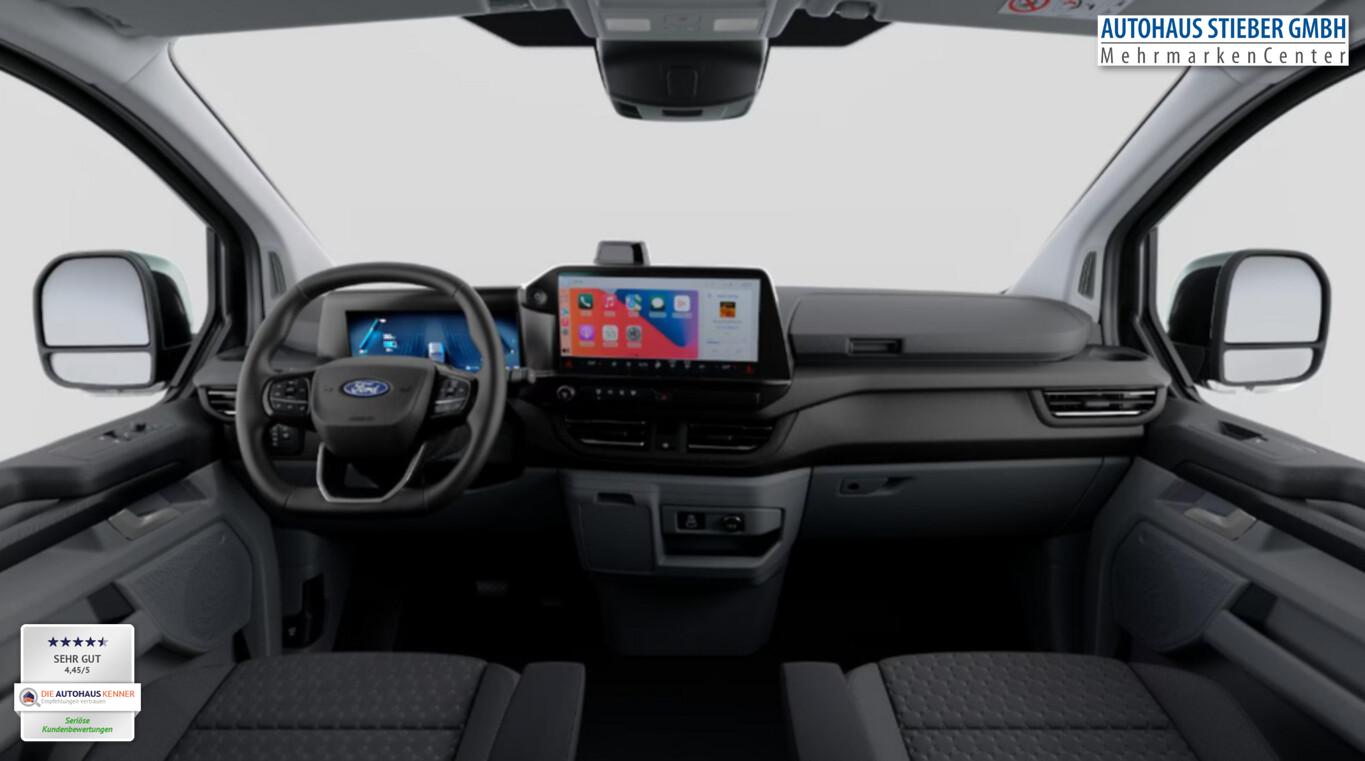 Schiebetür Lade-/Fahrgastraum links, Vorbereitung Anhängerkupplung elektrisch (Steckdose und Kabel), 13" Multifunktionsdisplay, 2. Sitzreihe mit 3er Sitzbank, 4 Lautsprecher, Ablagefach an Vordersitz, Außenspiegel elektr. verstell-, heiz- und anklappbar, Blinkleuchte in Außenspiegel integriert, Fahrassistenz-System: Pre-Collision-System, Geschwindigkeits-Regelanlage (Tempomat), Heckflügeltüren (Öffnungswinkel 90/180°), Heckleuchten LED, Intelligenter Geschwindigkeits-Begrenzer, Lenkrad (Sensico) mit Multifunktion, LM-Felgen 6,5x16, Navigation in Verbindung mit dem Smartphone (über Apple Carplay / Android Auto /...), Parkpilotsystem vorn und hinten, Reifen 215/65 R16, Rückfahrkamera, Smartphone-Schnittstelle (Apple CarPlay / Android Auto), Verglasung ab B-Säule verdunkelt, Wärmepumpe, Sitz-Paket 46: Fahrersitz (4-fach verstellbar) - Beifahrerdoppelsitz, Sitzheizung, Stoff (Sitze im Fahrerhaus: Fahrersitz mit Lendenwirbelstütze / Armlehne Fahrersitz / Sitze im Fahrerhaus: Fahrer- und Beifahrersitz heizbar), Scheinwerfer LED (Blinkleuchten LED / Fahrassistenz-System: Fernlichtassistent (Scheinwerfer mit Abblendautomatik) / Tagfahrlicht LED), Bodenbelag: Vinyl im Lade-/Fahrgastraum, Elektromotor 160 kW, Fenster im Lade-/FG-Raum: - feststehend, 2.Reihe links, Feststellbremse elektrisch, Ford SYNC 4 mit AppLink und Touchscreen, Handschuhfach abschließbar, Heckflügeltüren, Heizung mit Umluftschaltung, Karosserie/Aufbau: Doppelkabine, KeyFree-System, Laderaumleuchte LED, extra hell, Power KeyFree-Startfunktion, Radstand 3100 mm, Schiebetür Lade-/Fahrgastraum rechts, Zul. Gesamtgewicht 3,20 t, USB-Schnittstelle, Anti-Blockier-System (ABS), Fahrassistenz-System: Notbrems-Assistent, Antriebsart: Heckantrieb, Elektron. Stabilitäts-Programm (ESP), Getriebe für Elektrofahrzeug, Klimaautomatik, Airbag Beifahrerseite, Airbag Beifahrerseite abschaltbar, Fensterheber elektrisch vorn mit Quickdown / -up-Schaltung Fahrer-/Beifahrerseite, Laderaumtrennwand ohne Fenster, Verzurrösen (4), Zentralverriegelung mit Fernbedienung, Frontscheibe heizbar, Fahrassistenz-System: Berganfahr-Assistent, Reifendruck-Kontrollsystem