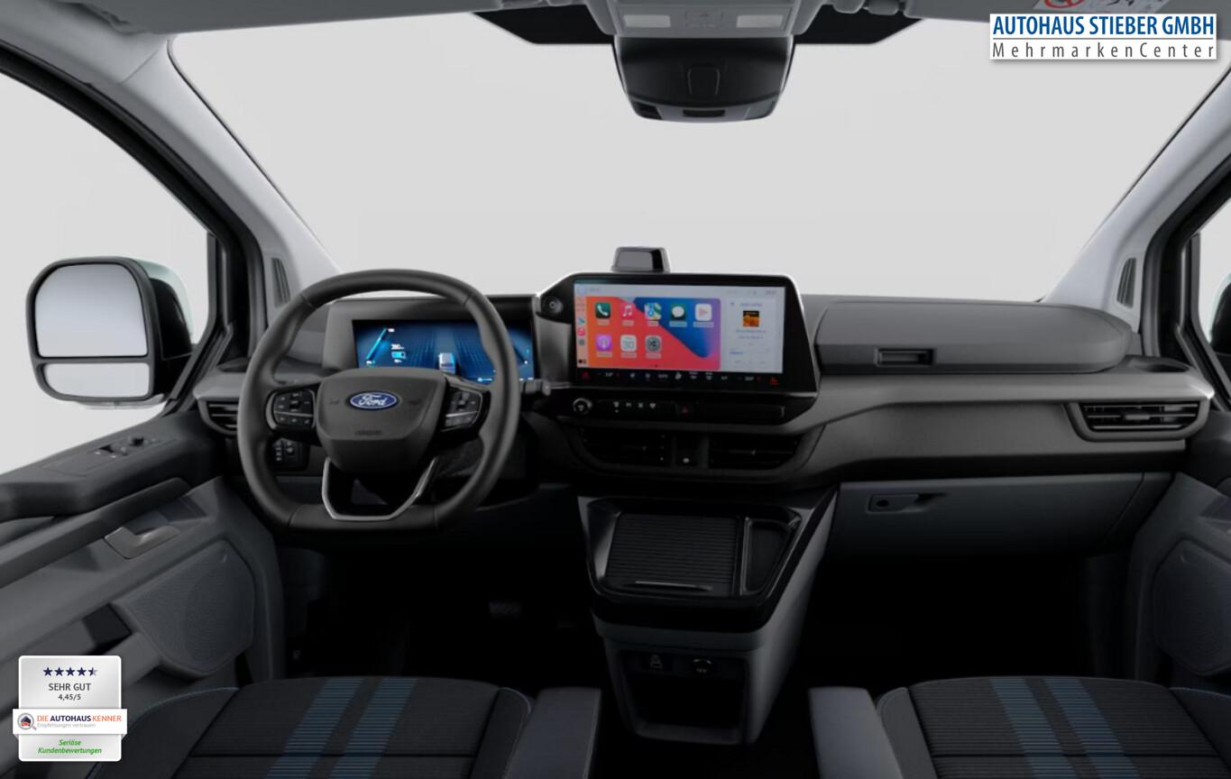 Anhängerkupplung: Kugelkopf fest, Induktionsladeschale für mobile Endgeräte, 13" Multifunktionsdisplay, 2. Sitzreihe mit 3er Sitzbank, 4 Lautsprecher, 6 Verzurrösen, Ablagefach an Vordersitz, Armlehne Fahrer und Beifahrer, Automatische Türverriegelung, Beifahrerairbag deaktivierbar, Fahrassistenz-System: Berganfahr-Assistent, Fahrassistenz-System: Pre-Collision-System, Geschwindigkeits-Regelanlage (Tempomat), Heckflügeltüren (Öffnungswinkel 90/180°), Intelligenter Geschwindigkeits-Begrenzer, Lendenwirbelstützen vorn, LM-Felgen 5x17, Navigation in Verbindung mit dem Smartphone (über Apple Carplay / Android Auto /...), Parkpilotsystem vorn und hinten, Reifen 215/60 R17, Rückfahrkamera, Schiebetür rechts mit Zuziehhilfe, Sitz vorn links 6-fach elektr. verstellbar, Sitz vorn rechts 4-fach verstellbar, Sitzheizung vorn, Smartphone-Schnittstelle (Apple CarPlay / Android Auto), Tagfahrlicht LED, Verglasung ab B-Säule verdunkelt, Wärmepumpe, Scheinwerfer LED (Blinkleuchten LED / Fahrassistenz-System: Fernlichtassistent (Scheinwerfer mit Abblendautomatik)), Außenspiegel elektr. anklappbar, Dekor-/Zierstreifen GT (auf Motorhaube), Elektromotor 160 kW, Feststellbremse elektrisch, Ford SYNC 4 mit AppLink und Touchscreen, Handschuhfach abschließbar, Heckspoiler, Karosserie/Aufbau: Doppelkabine, KeyFree-System, Laderaumleuchte LED, extra hell, Mittelkonsole große Ausführung, Radstand 3500 mm, Schiebetür Lade-/Fahrgastraum rechts, Zul. Gesamtgewicht 3,20 t, USB-Schnittstelle, Anti-Blockier-System (ABS), Fahrassistenz-System: Notbrems-Assistent, Antriebsart: Heckantrieb, Elektron. Stabilitäts-Programm (ESP), Getriebe für Elektrofahrzeug, Klimaautomatik 2-Zonen, Zusatzheizung elektrisch, Airbag Beifahrerseite, Fensterheber elektrisch, Zentralverriegelung mit Fernbedienung, Frontscheibe heizbar, Außenspiegel elektr. verstell- und heizbar, Blinkleuchte in Außenspiegel integriert, Heckleuchten LED, Reifendruck-Kontrollsystem