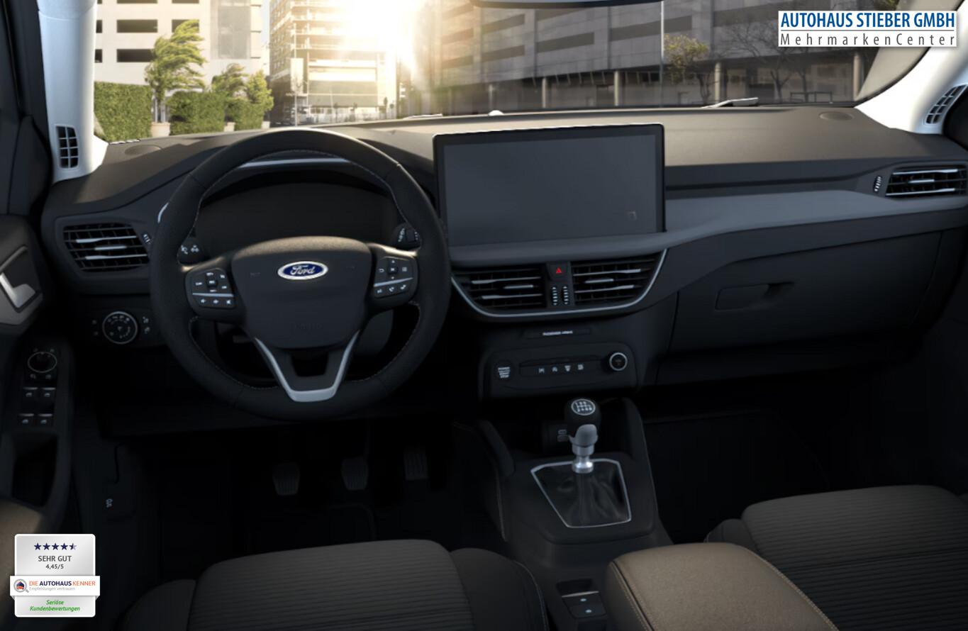 Winter-Paket (Lenkrad heizbar / Sitzheizung vorn / Frontscheibe heizbar), Allwetter-/ Ganzjahresreifen, Diebstahl-Warnanlage (Zentralverriegelung mit Doppelverriegelung), Ablagetaschen an Rückseite der Vordersitzlehnen, Audio-Navigationssystem Ford SYNC 4 inkl. 13,2"-Touchscreen, 6 Lautsprecher, Fahrassistenz-System: Müdigkeitserkennung, Fußraumbeleuchtung vorn, Handschuhfach beleuchtet, Kindersicherung, Klimaautomatik, Lenkrad mit Multifunktion, Leseleuchten vorn und hinten, Leuchtweitenregulierung, Notrufsystem, Radioempfang digital (DAB), Reifen 205/60 R16, Sitz vorn rechts höhenverstellbar, Sitzbezug / Polsterung: Stoff, Stahlfelgen 6,5x16, Intelligenter Geschwindigkeits-Begrenzer (Geschwindigkeits-Begrenzeranlage), Sitz vorn links höhenverstellbar (Lendenwirbelstütze Sitz vorn links), Fahrassistenz-System: Pre-Collision-System (Fahrassistenz-System: Auffahrwarnsystem), Scheinwerfer LED (Heckleuchten LED / Nebelscheinwerfer mit statischem Abbiegelicht), Intelligent Protection System (IPS) (3-Punkt-Sicherheitsgurt hinten / Gurtstraffer / Airbag Fahrer-/Beifahrerseite / Kopf-Schulter-Airbag vorn und hinten / Seitenairbag vorn), Ambiente-Beleuchtung vorn (LED), Bodenleuchte im Außenspiegel, Dachhimmel Stoff, Dachspoiler Wagenfarbe, Elektr. Bremskraftverteilung (EBD), Gepäckraumabdeckung / Rollo, Induktionsladeschale für mobile Endgeräte, Innenspiegel mit Abblendautomatik, Karosserie: 5-türig, Kombiinstrument Digitalanzeige 12,3 Zoll, Kopfstützen hinten mechan. verstellbar (3 Stück), Mild-Hybrid 92 kW (Motor 1,0 Ltr. - 92 kW EcoBoost), Mittelarmlehne hinten, Schalt-/Wählhebelgriff Leder, Sonnenblende links mit Spiegel (beleuchtet), Sonnenblende rechts mit Spiegel (beleuchtet), Warnanlage für Sicherheitsgurte hinten, Warnanlage für Sicherheitsgurte vorn, Anti-Blockier-System (ABS), Fahrassistenz-System: Notbrems-Assistent, Antischlupfregelung (ASR), Elektron. Stabilitäts-Programm (ESP), Getriebe 6-Gang - Typ: 6MX65, Airbag Beifahrerseite abschaltbar, Durchladeeinrichtung (Mittelarmlehne hinten), Fensterheber elektrisch vorn + hinten mit Komfortschließung, Isofix-Aufnahmen für Kindersitz, KeyFree-System, Rücksitzlehne geteilt/klappbar (60:40), Verglasung hinten abgedunkelt (Privacy Glass), Bord-/Verbrauchscomputer, Geschwindigkeits-Regelanlage (Tempomat), Rückfahrkamera, Lenkrad (Leder 3-Speichen), Servolenkung elektrisch, Außenspiegel elektr. anklappbar, Außenspiegel elektr. verstell- und heizbar, Blinkleuchte in Außenspiegel integriert, Nebelscheinwerfer LED, Scheibenwischer mit Regensensor, Scheinwerfer-Assistent mit Tag-/Nachtsensor, Tagfahrlicht LED, Parkpilotsystem vorn und hinten, Fahrassistenz-System: Spurhalteassistent, Reifendruck-Kontrollsystem, Start/Stop-Anlage