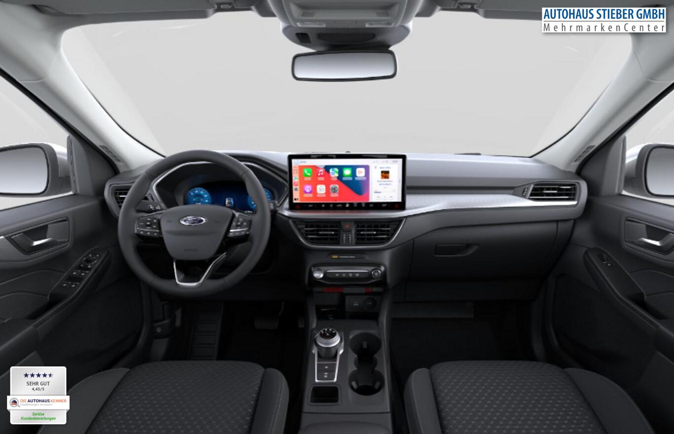 Winter-Paket (Lenkrad heizbar / Sitzheizung hinten / Frontscheibe heizbar), Verglasung hinten abgedunkelt (Privacy Glass), Reserverad als Notrad, 12V Steckdosen im Fond, 13,2 Zoll Farb-Touchscreen, 3. Bremsleuchte, Ablagetasche an Rückseite Vordersitzlehnen, Außenspiegel in Wagenfarbe, Außenspiegel mit Umfeldbeleuchtung, Beifahrerairbag deaktivierbar, Fahrassistenz-System: Fernlichtassistent (Scheinwerfer mit Abblendautomatik), Fahrassistenz-System: Müdigkeitserkennungssystem, Fahrassistenz-System: Verkehrszeichenerkennung, Gepäckraumbeleuchtung, Handschuhfach beleuchtet, Kindersicherung, Kopfstützen hinten (3-Stück), Lenkrad (Sport/Leder, ST) mit Multifunktion, LM-Felgen 7,5J x 18 Zoll, Nebelscheinwerfer LED, Nebelschlussleuchte, Notrufsystem, Reifen 225/60 R18, Schadstoffarm nach Abgasnorm Euro 6e (EU6EA), Scheibenwischer hinten, Scheinwerfer LED, Stoßfänger in Wagenfarbe, Türgriffe außen in Wagenfarbe, Umlaufheizung, Verzurrösen (4-fach), Body-Styling-Paket (Kühlergrill schwarz / Seitenschweller Wagenfarbe / Stoßfänger Sport-Ausführung), Parkbremse elektrisch mit Auto-Hold-Funktion (Fahrassistenz-System: Berganfahr-Assistent (Hill-Holder)), Sitz vorn links verstellbar (8-fach) (Lendenwirbelstütze Sitz vorn links), Sitz vorn rechts verstellbar (8-fach) (Lendenwirbelstütze Sitz vorn rechts), Audio-Navigationssystem Ford mit AppLink (6 Lautsprecher / Radioempfang digital (DAB) / Ford SYNC IV mit Navigation / Sprachsteuerung und Bluetooth-Schnittstelle / USB-Anschluss / Audiobedienung am Lenkrad), Fahrassistenz-System: Pre-Collision-System (Fahrassistenz-System: Active City Stop / Fahrassistenz-System: Auffahrwarnsystem), KeyFree-System (Power KeyFree-Startfunktion), Mittelkonsole mit Armlehne (Getränkehalter vorn / Mittelarmlehne vorn mit Staufach und 12V-Anschluß), Geschwindigkeits-Regelanlage (Tempomat) (Intelligenter Geschwindigkeits-Begrenzer), Intelligent Protection System (IPS) (3-Punkt-Sicherheitsgurt hinten / Warnanlage für Sicherheitsgurte hinten / Warnanlage für Sicherheitsgurte vorn / Airbag Fahrer-/Beifahrerseite / Kopf-Schulter-Airbag vorn und hinten / Seitenairbag vorn), Ambiente-Beleuchtung vorn (LED), Dachhimmel Stoff, dunkel, Dachspoiler Wagenfarbe, Induktionsladeschale für mobile Endgeräte, Innenspiegel mit Abblendautomatik, Karosserie: 5-türig, Kombiinstrument Digitalanzeige 12,3 Zoll, Lenksäule (Lenkrad) höhen-/längsverstellbar, Motor 1,5 Ltr. - 137 kW EcoBoost KAT, Radstand 2710 mm, Scheibenrahmen schwarz, Sonnenblende links mit Spiegel (beleuchtet), Sonnenblende rechts mit Spiegel (beleuchtet), Anti-Blockier-System (ABS), Fahrassistenz-System: Notbrems-Assistent, Antriebsart: Frontantrieb, Elektron. Stabilitäts-Programm (ESP), Getriebe Automatik - Typ: 8F35 (8-Stufen), Klimaautomatik 2-Zonen, Fensterheber elektrisch vorn + hinten mit Komfortschließung, Isofix-Aufnahmen für Kindersitz, Rücksitzlehne geteilt, Rücksitzlehne klappbar, Sitzheizung vorn, Zentralverriegelung mit Fernbedienung, Bordcomputer, Dachreling schwarz, Rückfahrkamera, Servolenkung elektrisch, Außenspiegel elektr. anklappbar, Außenspiegel elektr. verstell- und heizbar, Heckleuchten LED, Scheibenwischer mit Regensensor, Scheinwerfer-Assistent mit Tag-/Nachtsensor, Tagfahrlicht LED, Parkpilotsystem vorn und hinten, Fahrassistenz-System: Spurhalteassistent, Reifendruck-Kontrollsystem