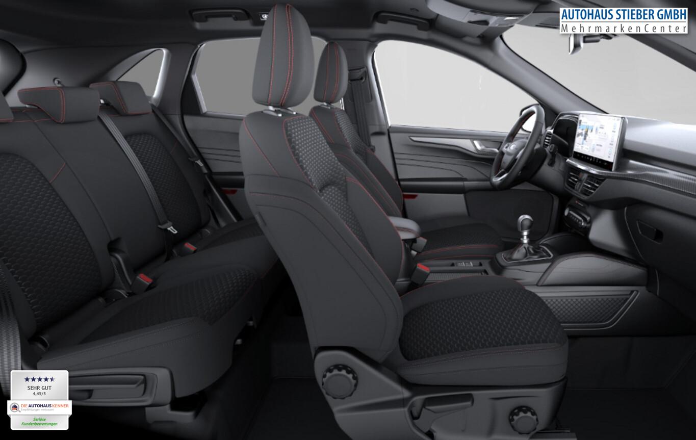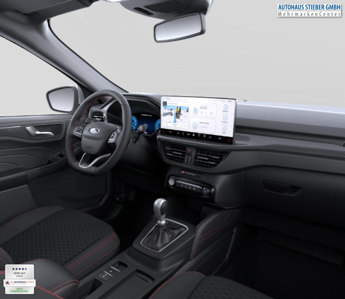 Winter-Paket (Lenkrad heizbar / Sitzheizung hinten / Frontscheibe heizbar), Verglasung hinten abgedunkelt (Privacy Glass), Reserverad als Notrad, 360°-Rückfahrkamera, Ablagetasche an Vordersitzlehnen, Adaptive Geschwindigkeits-Regelanlage mit Stop&Go-Funktion, Beifahrerairbag deaktivierbar, Fahrassistenz-Paket, Fahrassistenz-System: Falschfahrer-Warnfunktion, Fahrassistenz-System: Müdigkeitserkennungssensor, Fahrassistenz-System: Rückfahr-Assistent (Notbremsassistent), Fahrassistenz-System: Totwinkel-Assistent, Fahrassistenz-System: Verkehrsschildassistent, Handschuhfach beleuchtet, LM-Felgen 7,5x18, Notrufsystem, Parkbremse elektrisch, Reifen 225/60 R18, Scheinwerfer LED, Sitzbezug / Polsterung: Stoff Anthrazit mit Ziernähten in Rot, Smartphone Schnittstelle (Apple CarPlay / Android Auto), Touchscreen 13,2 Zoll, Türkantenschutz / Schutzprofil vorn und hinten (Door Edge Protector), Body-Styling-Paket (Kühlergrill schwarz / Seitenschweller Wagenfarbe / Stoßfänger Sport-Ausführung), Sitz vorn links verstellbar (8-fach) (Lendenwirbelstütze Sitz vorn links), Sitz vorn rechts verstellbar (8-fach) (Lendenwirbelstütze Sitz vorn rechts), Audio-Navigationssystem Ford mit AppLink (6 Lautsprecher / Radioempfang digital (DAB) / Ford SYNC IV mit Navigation / Sprachsteuerung und Bluetooth-Schnittstelle / USB-Anschluss / Audiobedienung am Lenkrad), Fahrassistenz-System: Pre-Collision-System (Fahrassistenz-System: Active City Stop / Fahrassistenz-System: Auffahrwarnsystem), KeyFree-System (Power KeyFree-Startfunktion), Mittelkonsole mit Armlehne (Getränkehalter vorn / Mittelarmlehne vorn mit Staufach und 12V-Anschluß), Intelligent Protection System (IPS) (3-Punkt-Sicherheitsgurt hinten / Warnanlage für Sicherheitsgurte hinten / Warnanlage für Sicherheitsgurte vorn / Airbag Fahrer-/Beifahrerseite / Kopf-Schulter-Airbag vorn und hinten / Seitenairbag vorn), Ambiente-Beleuchtung vorn (LED), Dachhimmel Stoff, dunkel, Hybrid 132 kW (Motor 2,5 Ltr. - 112 kW), Induktionsladeschale für mobile Endgeräte, Innenspiegel mit Abblendautomatik, Karosserie: 5-türig, Kombiinstrument Digitalanzeige 12,3 Zoll, Scheibenrahmen schwarz, Scheinwerfer mit Ausschaltverzögerung, Sonnenblende links mit Spiegel (beleuchtet), Sonnenblende rechts mit Spiegel (beleuchtet), Anti-Blockier-System (ABS), Antischlupfregelung (ASR), Antriebsart: Frontantrieb, Elektron. Stabilitäts-Programm (ESP), Sport-Fahrwerk, Getriebe Automatik - ECVT, Klimaautomatik 2-Zonen, Fensterheber elektrisch vorn + hinten mit Komfortschließung, Isofix-Aufnahmen für Kindersitz, Rücksitzlehne geteilt, Rücksitzlehne klappbar, Sitzheizung vorn, Sportsitze, Bordcomputer, Dachreling schwarz, Lenkrad (Sport/Leder, ST), Servolenkung elektrisch, Außenspiegel elektr. anklappbar, Außenspiegel elektr. verstell- und heizbar, Heckleuchten LED, Scheibenwischer mit Regensensor, Scheinwerfer-Assistent mit Tag-/Nachtsensor, Tagfahrlicht LED, Parkpilotsystem vorn und hinten, Fahrassistenz-System: Spurhalteassistent, Reifendruck-Kontrollsystem