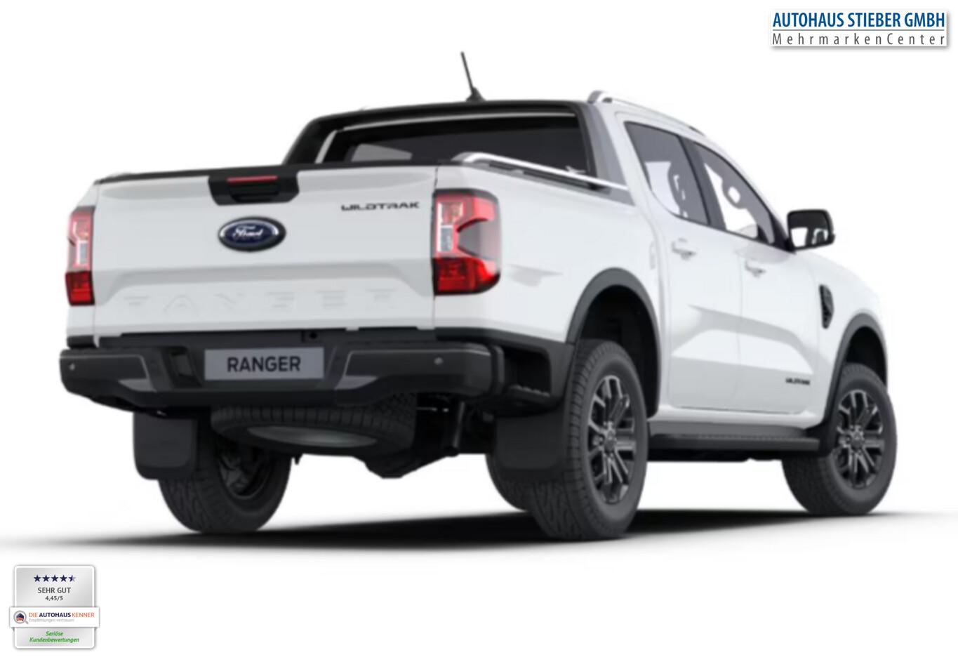 Pritschenabdeckung elektr. (Rollo) (Laderaumwanne / Steckdose (12V-Anschluß) im Koffer-/Laderaum), Anhängerkupplung, Fensterheber elektrisch hinten, 3-Punkt-Sicherheitsgurt hinten, 6 Lautsprecher, Ablagetasche an Fahrersitzlehne, Adaptive Geschwindigkeits-Regelanlage (ACC), Audio-Navigationssystem Ford mit AppLink, Audiobedienung am Lenkrad, Audiosystem Ford SYNC4, Diebstahlwarnanlage, Fahrassistenz-System: Abstandsregelung (Distance Alert, DA), Fahrassistenz-System: Auffahrwarnsystem, Fahrassistenz-System: Ausweich-Assistent, Fahrassistenz-System: Notbrems-Assistent, Fahrassistenz-System: Pre-Collision-System, Fahrassistenz-System: Spurhalteassistent, Fahrassistenz-System: Verkehrsschildassistent, Fahrmodus-Drehregler, Farbdisplay (12 Zoll), Handschuhfach, Intelligenter Geschwindigkeits-Begrenzer, Isofix-Aufnahmen für Kindersitz, Ladeflächenbeleuchtung, LM-Felgen 7,5x18, Mittelarmlehne hinten, Mittelkonsole vorn, Parkpilotsystem vorn und hinten, Radioempfang digital (DAB), Reifen 255/65 R18, Reserverad in Fahrbereifung, Rückfahrkamera, Schmutzfänger vorn und hinten, Smartphone-Integration (Apple CarPlay und Android Auto), Sonnenblenden mit Spiegel, beleuchtet, Sonnenbrillenfach, Sperrdifferential hinten, Sportbügel, Sprachsteuerung und Bluetooth-Schnittstelle, Technologie-Paket 46 inkl. Außenspiegel mit Totwinkel-Assistent, Anhänger-Assistent und 360°-Kamera, USB-Anschluss, Verzurrösen, Vorrüstung Mobiltelefon/Handy mit Bluetooth-Schnittstelle inkl. Telefonfunktion über Ford Audiosystem, Warnanlage für Sicherheitsgurte hinten, Zentralverriegelung mit Fernbedienung, Bremskraftverstärker elektrisch (Parkbremse elektrisch), Lenkrad heizbar (Lenkrad (Leder)), Off-Road-Paket (Off-Road Farbdisplay SYNC), Outdoor-Paket (Unterfahrschutz (Motor)), Sitz-Paket 7 (Sitz vorn rechts verstellbar (4-fach) / Warnanlage für Sicherheitsgurte hinten / Warnanlage für Sicherheitsgurte vorn / Sitz vorn links elektr. verstellbar (8-fach) / Sitzheizung vorn), Außenspiegel elektr. anklappbar (Bodenleuchte im Außenspiegel), Sicherheits-Paket 3 (Gurtstraffer / Airbag Beifahrerseite abschaltbar / Airbag Fahrer-/Beifahrerseite / Isofix-Aufnahmen für Kindersitz / Knieairbag Beifahrerseite / Knieairbag Fahrerseite / Kopf-Schulter-Airbag vorn / Seitenairbag vorn), Ambiente-Beleuchtung vorn (LED), Dachhimmel Stoff, dunkel, Fahrassistenz-System: Rückfahr-Assistent (Notbremsassistent), Heckscheibe heizbar, Innenraumfilter: Staub- und Pollenfilter, Innenspiegel mit Abblendautomatik, Kombiinstrument Digitalanzeige 8 Zoll, Motor 2,0 Ltr. - 151 kW EcoBlue, Stoßfänger hinten mit Trittstufe, Türgriffe außen Wagenfarbe, Anti-Blockier-System (ABS), Antriebsart: Allradantrieb, Elektron. Stabilitäts-Programm (ESP), Getriebe Automatik - Typ: 10R80 (10-Stufen), Klimaautomatik 2-Zonen, Fensterheber elektr. vorn mit Komfortschaltung, KeyFree-System, Sitzbezug / Polsterung: Leder, Verglasung hinten abgedunkelt (Privacy Glass), Dachreling, Frontscheibe heizbar, Heckklappe Easy Lift (Pick-Up), Heckklappenentriegelung elektrisch (ohne Schloss), Außenspiegel elektr. verstell- und heizbar, Blinkleuchte in Außenspiegel integriert, Fahrassistenz-System: Fernlichtassistent (Scheinwerfer mit Abblendautomatik), Heckleuchten LED, Nebelscheinwerfer LED, Scheibenwischer mit Regensensor, Scheinwerfer LED, Tagfahrlicht, Reifendruck-Kontrollsystem, Start/Stop-Anlage