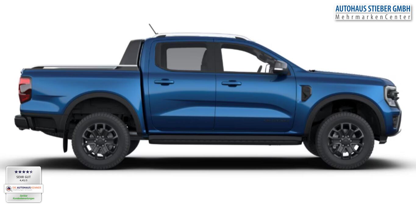 Pritschenabdeckung elektr. (Rollo) (Laderaumwanne / Steckdose (12V-Anschluß) im Koffer-/Laderaum), Anhängerkupplung, Fensterheber elektrisch hinten, 3-Punkt-Sicherheitsgurt hinten, 6 Lautsprecher, Ablagetasche an Fahrersitzlehne, Adaptive Geschwindigkeits-Regelanlage (ACC), Audio-Navigationssystem Ford mit AppLink, Audiobedienung am Lenkrad, Audiosystem Ford SYNC4, Diebstahlwarnanlage, Fahrassistenz-System: Abstandsregelung (Distance Alert, DA), Fahrassistenz-System: Auffahrwarnsystem, Fahrassistenz-System: Ausweich-Assistent, Fahrassistenz-System: Notbrems-Assistent, Fahrassistenz-System: Pre-Collision-System, Fahrassistenz-System: Spurhalteassistent, Fahrassistenz-System: Verkehrsschildassistent, Fahrmodus-Drehregler, Farbdisplay (12 Zoll), Handschuhfach, Intelligenter Geschwindigkeits-Begrenzer, Isofix-Aufnahmen für Kindersitz, Ladeflächenbeleuchtung, LM-Felgen 7,5x18, Mittelarmlehne hinten, Mittelkonsole vorn, Parkpilotsystem vorn und hinten, Radioempfang digital (DAB), Reifen 255/65 R18, Reserverad in Fahrbereifung, Rückfahrkamera, Schmutzfänger vorn und hinten, Smartphone-Integration (Apple CarPlay und Android Auto), Sonnenblenden mit Spiegel, beleuchtet, Sonnenbrillenfach, Sperrdifferential hinten, Sportbügel, Sprachsteuerung und Bluetooth-Schnittstelle, Technologie-Paket 46 inkl. Außenspiegel mit Totwinkel-Assistent, Anhänger-Assistent und 360°-Kamera, USB-Anschluss, Verzurrösen, Vorrüstung Mobiltelefon/Handy mit Bluetooth-Schnittstelle inkl. Telefonfunktion über Ford Audiosystem, Warnanlage für Sicherheitsgurte hinten, Zentralverriegelung mit Fernbedienung, Bremskraftverstärker elektrisch (Parkbremse elektrisch), Lenkrad heizbar (Lenkrad (Leder)), Off-Road-Paket (Off-Road Farbdisplay SYNC), Outdoor-Paket (Unterfahrschutz (Motor)), Sitz-Paket 7 (Sitz vorn rechts verstellbar (4-fach) / Warnanlage für Sicherheitsgurte hinten / Warnanlage für Sicherheitsgurte vorn / Sitz vorn links elektr. verstellbar (8-fach) / Sitzheizung vorn), Außenspiegel elektr. anklappbar (Bodenleuchte im Außenspiegel), Sicherheits-Paket 3 (Gurtstraffer / Airbag Beifahrerseite abschaltbar / Airbag Fahrer-/Beifahrerseite / Isofix-Aufnahmen für Kindersitz / Knieairbag Beifahrerseite / Knieairbag Fahrerseite / Kopf-Schulter-Airbag vorn / Seitenairbag vorn), Ambiente-Beleuchtung vorn (LED), Dachhimmel Stoff, dunkel, Fahrassistenz-System: Rückfahr-Assistent (Notbremsassistent), Heckscheibe heizbar, Innenraumfilter: Staub- und Pollenfilter, Innenspiegel mit Abblendautomatik, Kombiinstrument Digitalanzeige 8 Zoll, Motor 2,0 Ltr. - 151 kW EcoBlue, Stoßfänger hinten mit Trittstufe, Türgriffe außen Wagenfarbe, Anti-Blockier-System (ABS), Antriebsart: Allradantrieb, Elektron. Stabilitäts-Programm (ESP), Getriebe Automatik - Typ: 10R80 (10-Stufen), Klimaautomatik 2-Zonen, Fensterheber elektr. vorn mit Komfortschaltung, KeyFree-System, Sitzbezug / Polsterung: Leder, Verglasung hinten abgedunkelt (Privacy Glass), Dachreling, Frontscheibe heizbar, Heckklappe Easy Lift (Pick-Up), Heckklappenentriegelung elektrisch (ohne Schloss), Außenspiegel elektr. verstell- und heizbar, Blinkleuchte in Außenspiegel integriert, Fahrassistenz-System: Fernlichtassistent (Scheinwerfer mit Abblendautomatik), Heckleuchten LED, Nebelscheinwerfer LED, Scheibenwischer mit Regensensor, Scheinwerfer LED, Tagfahrlicht, Reifendruck-Kontrollsystem, Start/Stop-Anlage