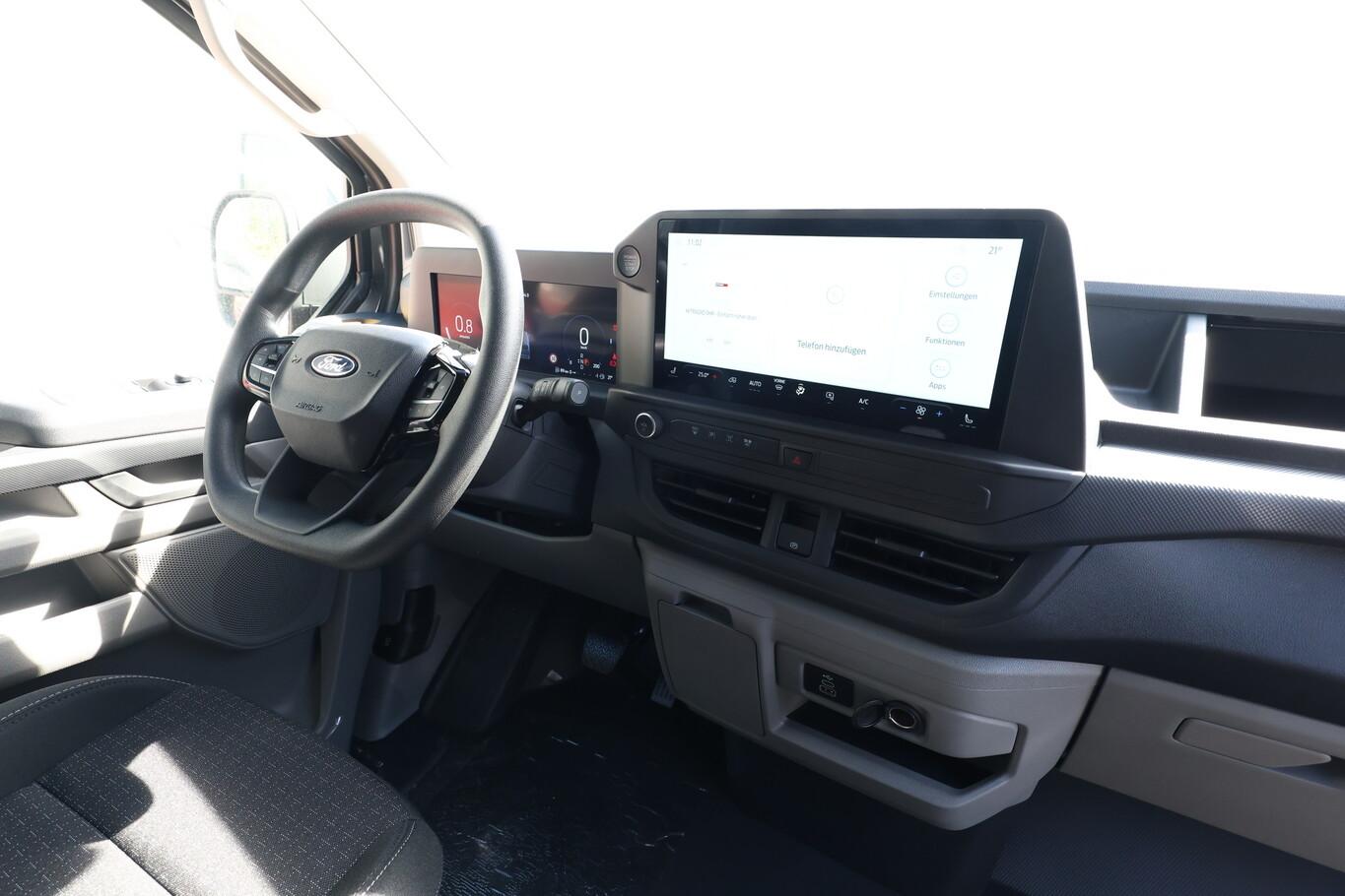 Scheinwerfer LED (Blinkleuchten LED / Fahrassistenz-System: Fernlichtassistent (Scheinwerfer mit Abblendautomatik) / Tagfahrlicht LED), Laderaumschutz-Paket (Bodenbelag: Vinyl im Lade-/Fahrgastraum / Laderaumleuchte LED, extra hell / Verkleidung im Lade-/FG-Raum: hoch), 4 Lautsprecher, AdBlue Tank: 20L, Airbag Fahrerseite, Audiosystem: Radioempfang Digital (DAB / DAB+) mit 13" Multifunktionsdisplay und SYNC 4, Außenspiegel schwarz lackiert, Beifahrerdoppelsitz mit Durchladefunktion, Blinkleuchte in Außenspiegel integriert, Einparkhilfe vorn und hinten, Fahrassistenz-System: Falschfahrer-Warnfunktion, Fahrassistenz-System: Pre-Collision-System, Fahrassistenz-System: Spurhalteassistent, Fahrassistenz-System: Verkehrsschildassistent, Geschwindigkeits-Regelanlage (Tempomat), Intelligenter Geschwindigkeits-Begrenzer, Kraftstofftank: 55 Ltr., Lenkrad mit Multifunktion, Navigation in Verbindung mit dem Smartphone (über Apple Carplay / Android Auto /...), Reifen 215/65 R16, Rückfahrkamera, Schadstoffarm nach Abgasnorm Euro 6e (EU6 EA), Seitenairbag, Sitz-Paket 11A: Fahrersitz (4-fach verstellbar) - Beifahrerdoppelsitz, Stoff, Sitze im Fahrerhaus: Fahrersitz mit Lendenwirbelstütze, Smartphone-Schnittstelle (Apple CarPlay / Android Auto), Steckdose 12V, Verzurrösen (6), Feststellbremse elektrisch, FordPass Connect inkl. eCall, Heckflügeltüren, Karosserie/Aufbau: Kasten Standard, Laderaumtrennwand Metall, Motor 2,0 Ltr. - 125 kW EcoBlue KAT, Power KeyFree-Startfunktion, Radstand 3500 mm, Schiebetür Lade-/Fahrgastraum rechts, Schmutzfänger hinten, Schmutzfänger vorn, Stahlfelgen 6,5x16, Zul. Gesamtgewicht 3,20 t, Anti-Blockier-System (ABS), Antriebsart: Frontantrieb, Elektron. Stabilitäts-Programm (ESP), Getriebe Automatik - (8-Stufen), Klimaautomatik, Airbag Beifahrerseite, Armlehne Fahrersitz, Fensterheber elektrisch, Sitze im Fahrerhaus: Fahrer- und Beifahrersitz heizbar, Zentralverriegelung mit Fernbedienung, Frontscheibe heizbar, Fahrassistenz-System: Berganfahr-Assistent, Außenspiegel elektr. verstell- und heizbar, Scheibenwischer mit Regensensor, Reifendruck-Kontrollsystem, Rußpartikelfilter, Start/Stop-Anlage