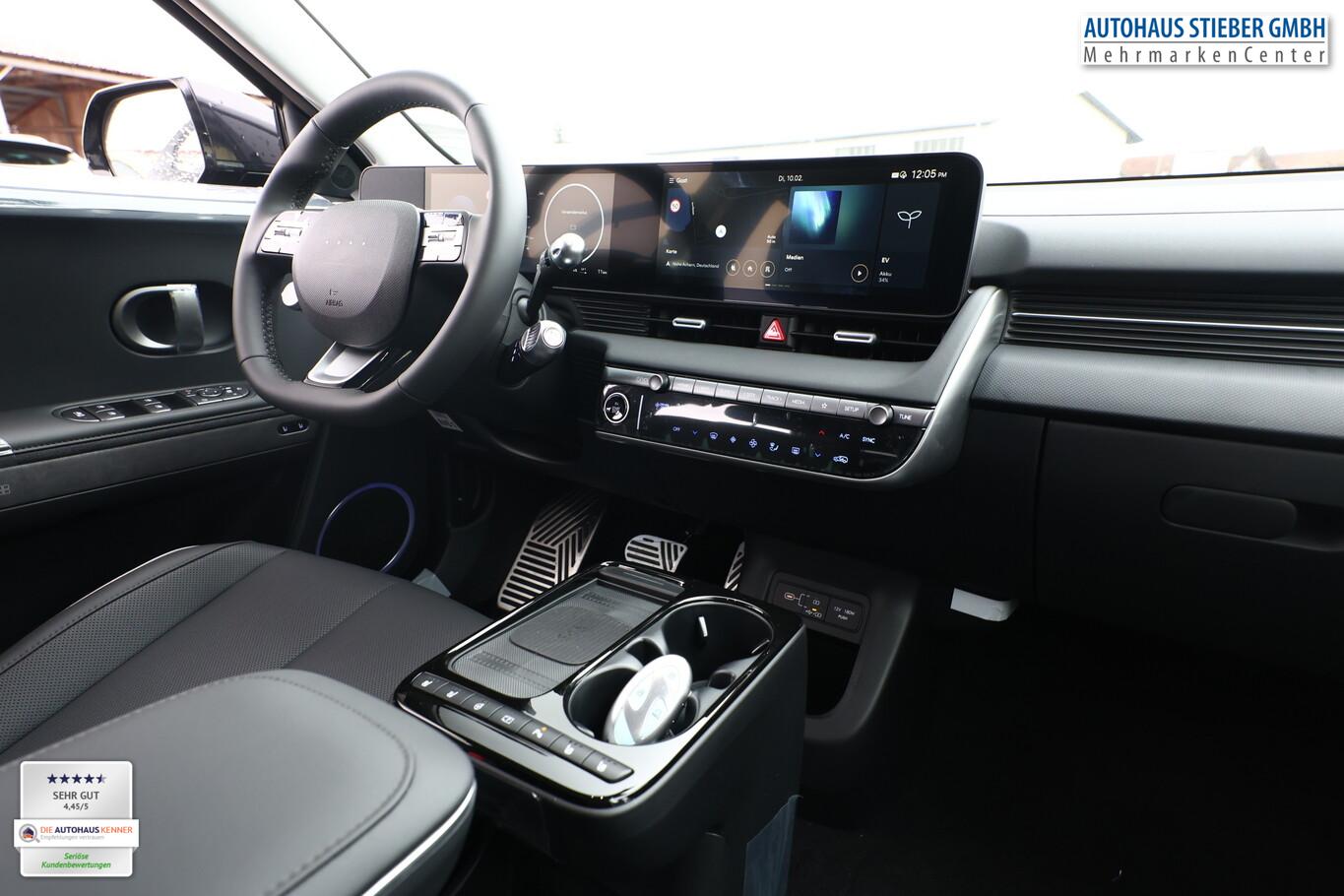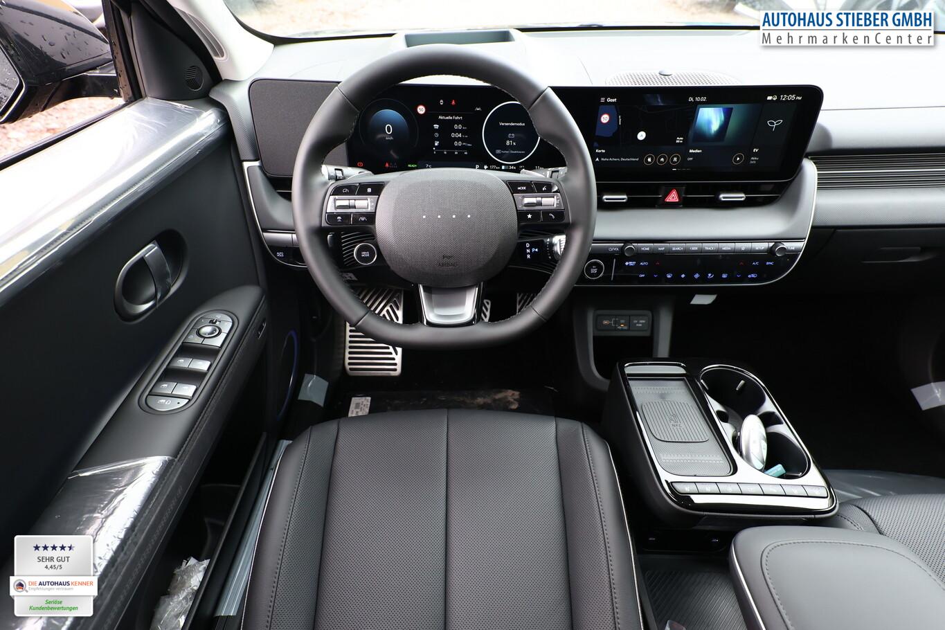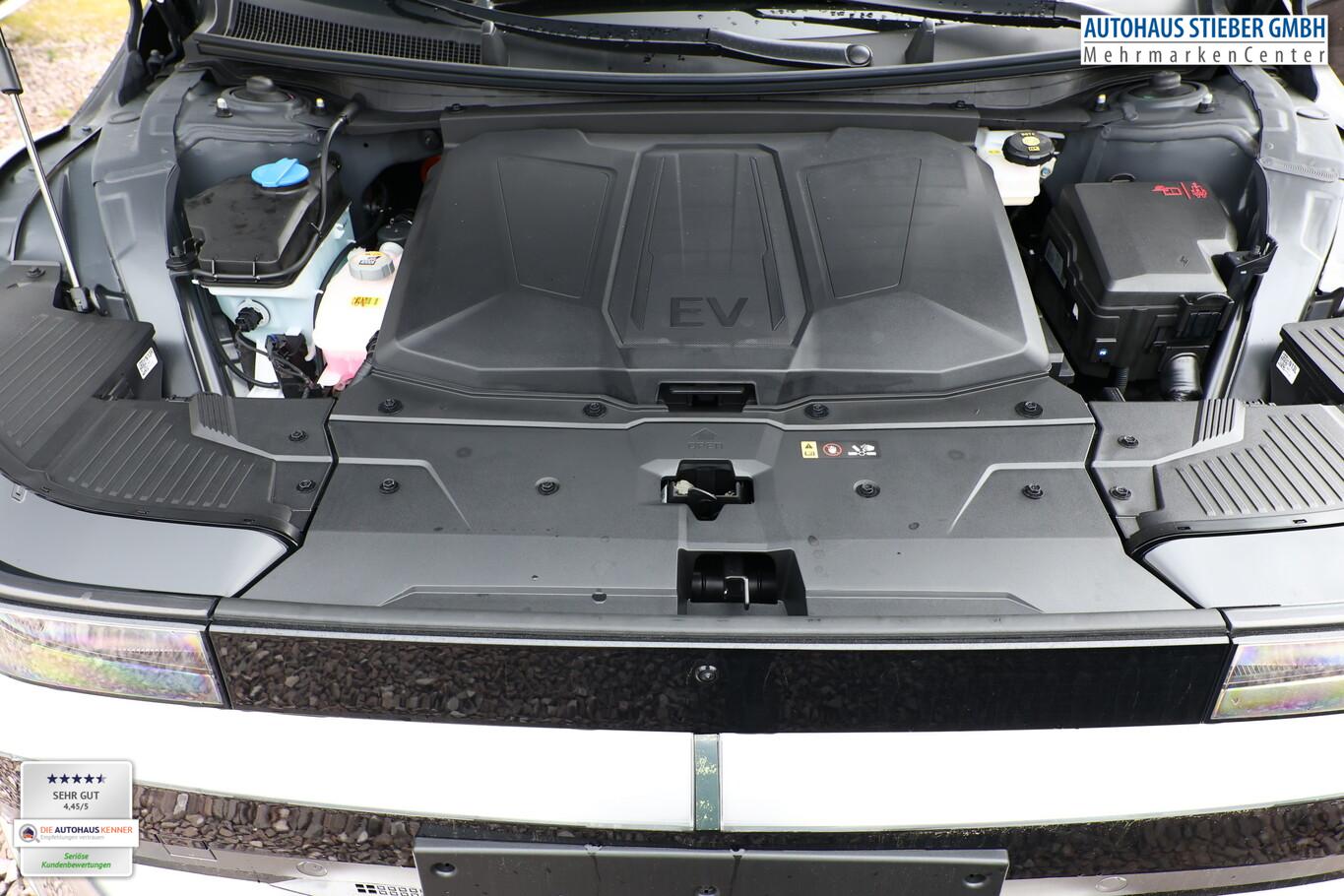 Park-Paket (Einparkhilfe seitlich / Radlaufabdeckung vorn und hinten lackiert / Seitenschutzleisten silber / Stoßfänger vorn mit Applikationen (Silber) / Fahrassistenz-System: City-Notbremsfunktion, rückwärts (PCA-R) / Kamerasystem Around View / Fahrassistenz-System: Totwinkel-Assistent mit Monitoranzeige (BVM) / Fahrassistenz-System: Remote Parklenkassistent (Remote Smart Parking Assist, RSPA)), Sound-System BOSE (7 Lautsprecher / Soundgenerator (innen) / Subwoofer), Ambientebeleuchtung, Bluetooth-Schnittstelle, Digitaler Fahrzeugschlüssel 2.0, Fahrassistenz-System: Spurwechselassistent, Freisprecheinrichtung Bluetooth, Head-up-Display, Kein Ladekabel vorhanden, LM-Felgen 20 Zoll, Mittelkonsole verschiebbar, Panorama-Glasdach, Reifen 255/45 R20, Relax-Paket, Rücksitzbank elektrisch verschiebbar, Sitzbelüftung vorn, Sitzbezug / Polsterung: Leder, Sitze vorn mit Memoryfunktion, Sitze vorn mit Relaxfunktion, SmartLink (Apple CarPlay & Android Auto), Sonnenrollos an den hinteren Türen (2. Sitzreihe), Wärmeschutzverglasung Frontscheibe, Dachspoiler (grosse Ausführung) (3. Bremsleuchte), LED-Paket (Blinkleuchten LED in Außenspiegel integriert / LED-Leuchtband vorn / Matrix-LED-Scheinwerfer), Audio-Navigationssystem (Touchscreen-Farbdisplay (12,25 Zoll)), Lenkrad (Leder) 3-Speichen (Lenkrad heizbar / Lenkrad (Leder) / Lenkrad (Leder) mit Multifunktion), Fahrassistenz-System: Autonome Notbremsfunktion inkl. Frontkollisionswarnung (FCA) (Fahrassistenz-System: Ausweich-Assistent (Evasive Steer Assistance, ESA) / Fahrassistenz-System: Ausweich-Assistent Fahrtrichtung (FCA-LS) / Fahrassistenz-System: Ausweich-Assistent Gegenverkehr (FCA-LO) / Fahrassistenz-System: Autonome Notbremsfunktion inkl. Abbiegefunktion (FCA-JT) / Fahrassistenz-System: Autonome Notbremsfunktion inkl. Fahrradfahrererkennung (FCA-Cyc.) / Fahrassistenz-System: Autonome Notbremsfunktion inkl. Fußgängererkennung (FCA-Ped.) / Fahrassistenz-System: Querverkehrs-Assistent vorn (Kreuzungs-Assistent)), Außenspiegel Unterschale schwarz lackiert, Batterieheizsystem, Elektromotor 168 kW (cont. 56 kW), Fahrassistenz-System: Autobahnassistent 2.0 (Highway Driving Assist, HDA 2.0), Fahrassistenz-System: Insassenalarm (RSA), Fahrassistenz-System: Multikollisionsbremse (Multi Collision Brake), Geschwindigkeits-Begrenzeranlage (Speed-Limiter), Heckscheibe heizbar, Heckscheibenwischer, HV-Batterie 84 kWh (Lithium-Ionen), Induktionsladeschale für Smartphone, Innenspiegel mit Abblendautomatik, Instrumentenanzeige Farbdisplay 12,25 Zoll, Karosserie: 5-türig, Kopfstützen hinten verstellbar, Kühlergrill, Aktive Luftklappen, regelbar, Ladevorrichtung On-Board-Lader (3-Phasen), Lendenwirbelstütze Sitz vorn links, elektr. verstellbar, Lendenwirbelstütze Sitz vorn rechts, elektr. verstellbar, Lenksäule (Lenkrad) höhenverstellbar, Lenksäule (Lenkrad) längsverstellbar, Mittelarmlehne hinten, Parkbremse elektrisch (EPB), Pedale Aluminium, Radioempfang digital (DAB+), Türgriffe außen ausfahrbar / versenkbar, elektrisch, Türgriffe außen Wagenfarbe, Wärmepumpe für Heizungs-/Klimaanlage, Audiosystem: Radio RDS, USB-Anschluss (Typ C), USB-Anschluss hinten (Typ C), USB-Anschluss Mittelkonsole, Anti-Blockier-System (ABS), Antriebsart: Heckantrieb, Elektron. Stabilitätskontrolle (ESC) mit Bremsassistent, Getriebe für Elektrofahrzeug, Klimaautomatik 2-Zonen, Airbag Beifahrerseite, Airbag Beifahrerseite abschaltbar, Airbag Fahrerseite, Fensterheber elektrisch vorn und hinten, mit Auf-/Ab-Automatik, Isofix-Aufnahmen für Kindersitz, Kopf-Airbag-System, Mittelarmlehne vorn verschiebbar, Rücksitzlehne geteilt/klappbar, Seitenairbag vorn, Seitenairbag vorn mitte (Central Airbag), Sitz vorn links elektr. verstellbar, Sitz vorn rechts elektr. verstellbar, Sitzheizung hinten, Sitzheizung vorn, Smart-Key, Verglasung hinten abgedunkelt (Privacy Glass), Zentralverriegelung mit Fernbedienung, Heckklappe/-Deckel elektr. betätigt (Öffnung, sensorgesteuert), Fahrassistenz-System: Berganfahrhilfe, Fahrassistenz-System: Verkehrszeichenerkennung, erweitert (Geschwindigkeits-Regel-/Begrenzeranlage), Geschwindigkeits-Regelanlage (Tempomat) mit Abstandsregelung ACC, Navigationsbasierte Adaptive Geschwindigkeitsregelanlage (Tempomat) mit Abstandsregelung (NSCC), Rückfahrkamera, Fahrassistenz-System: Sicherheitssystem mit automatischem Notruf (ERA GLONASS / eCall), Service-System: Remote Services (Blue Link), Lenkrad mit Schaltwippen, Außenspiegel elektr. anklappbar, Außenspiegel elektr. verstell- und heizbar, beide, Einschaltautomatik für Fahrlicht / Lichtsensor, Fahrassistenz-System: Fernlichtassistent, Heckleuchten LED (Pixel-Design), Scheibenwischer mit Regensensor, Fahrassistenz-System: aktiver Spurhalteassistent (LKAS, Lane Keep Assist System), Fahrassistenz-System: Aufmerksamkeits-Assistent, Fahrassistenz-System: Spurfolgeassistent (Lane Following Assist, LFA), Reifendruck-Kontrollsystem, Start-Stop-Knopf