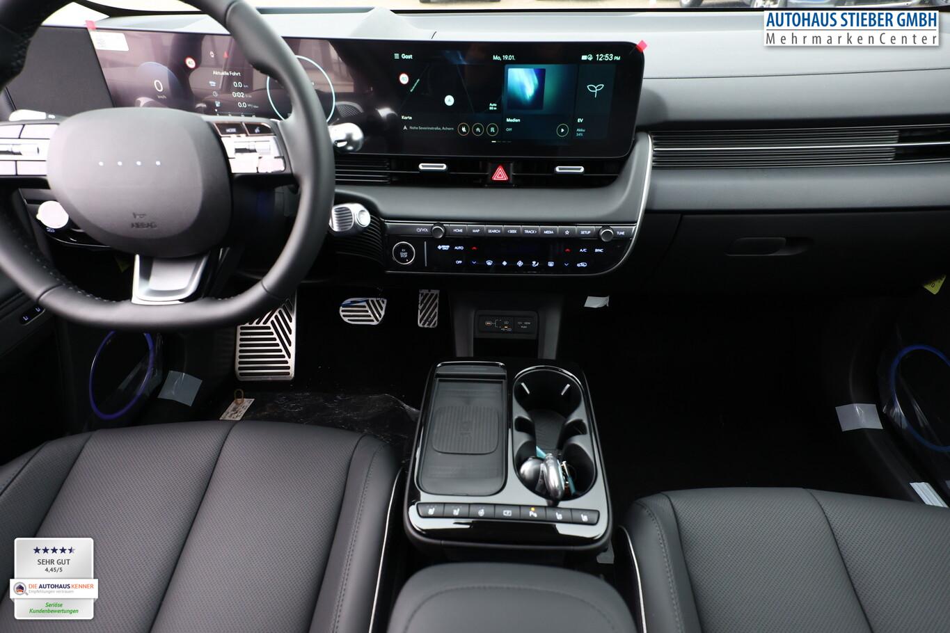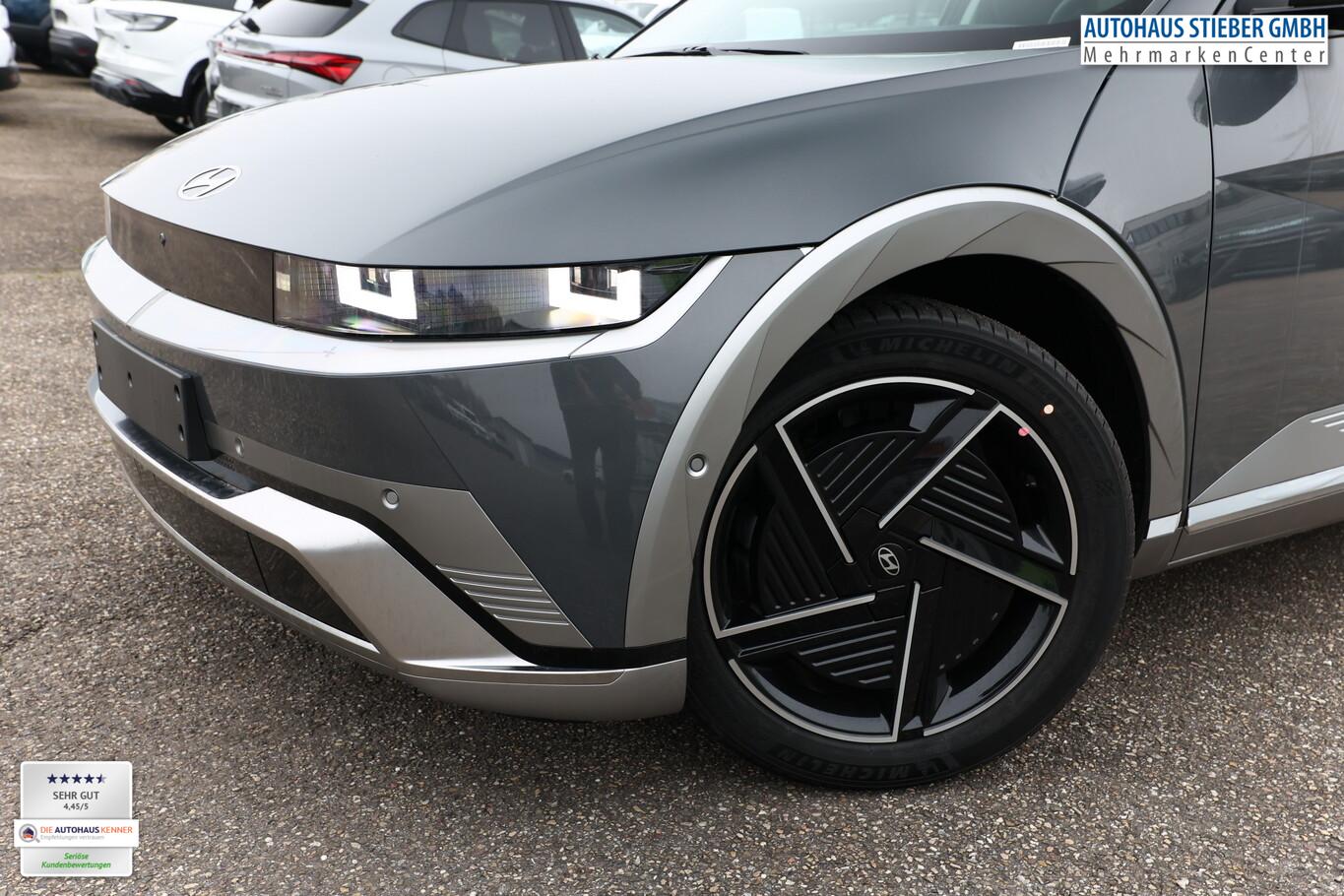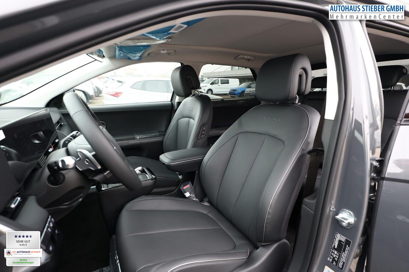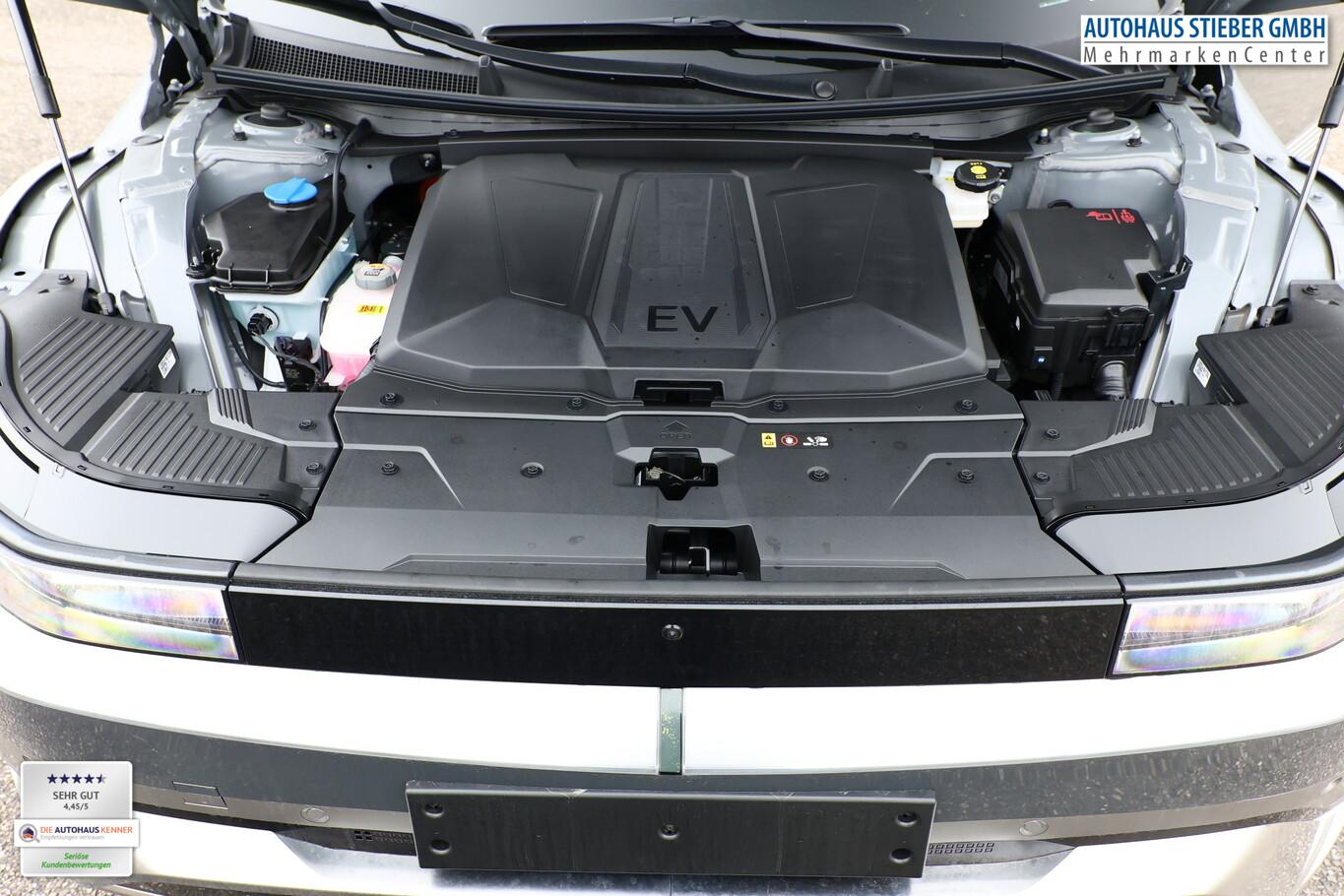 Park-Paket (Einparkhilfe seitlich / Radlaufabdeckung vorn und hinten lackiert / Seitenschutzleisten silber / Stoßfänger vorn mit Applikationen (Silber) / Fahrassistenz-System: City-Notbremsfunktion, rückwärts (PCA-R) / Kamerasystem Around View / Fahrassistenz-System: Totwinkel-Assistent mit Monitoranzeige (BVM) / Fahrassistenz-System: Remote Parklenkassistent (Remote Smart Parking Assist, RSPA)), Sound-System BOSE (7 Lautsprecher / Soundgenerator (innen) / Subwoofer), Ambientebeleuchtung, Bluetooth-Schnittstelle, Digitaler Fahrzeugschlüssel 2.0, Fahrassistenz-System: Spurwechselassistent, Freisprecheinrichtung Bluetooth, Head-up-Display, Kein Ladekabel vorhanden, LM-Felgen 20 Zoll, Mittelkonsole verschiebbar, Panorama-Glasdach, Reifen 255/45 R20, Relax-Paket, Rücksitzbank elektrisch verschiebbar, Sitzbelüftung vorn, Sitzbezug / Polsterung: Leder, Sitze vorn mit Memoryfunktion, Sitze vorn mit Relaxfunktion, SmartLink (Apple CarPlay & Android Auto), Sonnenrollos an den hinteren Türen (2. Sitzreihe), Wärmeschutzverglasung Frontscheibe, Dachspoiler (grosse Ausführung) (3. Bremsleuchte), LED-Paket (Blinkleuchten LED in Außenspiegel integriert / LED-Leuchtband vorn / Matrix-LED-Scheinwerfer), Audio-Navigationssystem (Touchscreen-Farbdisplay (12,25 Zoll)), Lenkrad (Leder) 3-Speichen (Lenkrad heizbar / Lenkrad (Leder) / Lenkrad (Leder) mit Multifunktion), Fahrassistenz-System: Autonome Notbremsfunktion inkl. Frontkollisionswarnung (FCA) (Fahrassistenz-System: Ausweich-Assistent (Evasive Steer Assistance, ESA) / Fahrassistenz-System: Ausweich-Assistent Fahrtrichtung (FCA-LS) / Fahrassistenz-System: Ausweich-Assistent Gegenverkehr (FCA-LO) / Fahrassistenz-System: Autonome Notbremsfunktion inkl. Abbiegefunktion (FCA-JT) / Fahrassistenz-System: Autonome Notbremsfunktion inkl. Fahrradfahrererkennung (FCA-Cyc.) / Fahrassistenz-System: Autonome Notbremsfunktion inkl. Fußgängererkennung (FCA-Ped.) / Fahrassistenz-System: Querverkehrs-Assistent vorn (Kreuzungs-Assistent)), Außenspiegel Unterschale schwarz lackiert, Batterieheizsystem, Elektromotor 168 kW (cont. 56 kW), Fahrassistenz-System: Autobahnassistent 2.0 (Highway Driving Assist, HDA 2.0), Fahrassistenz-System: Insassenalarm (RSA), Fahrassistenz-System: Multikollisionsbremse (Multi Collision Brake), Geschwindigkeits-Begrenzeranlage (Speed-Limiter), Heckscheibe heizbar, Heckscheibenwischer, HV-Batterie 84 kWh (Lithium-Ionen), Induktionsladeschale für Smartphone, Innenspiegel mit Abblendautomatik, Instrumentenanzeige Farbdisplay 12,25 Zoll, Karosserie: 5-türig, Kopfstützen hinten verstellbar, Kühlergrill, Aktive Luftklappen, regelbar, Ladevorrichtung On-Board-Lader (3-Phasen), Lendenwirbelstütze Sitz vorn links, elektr. verstellbar, Lendenwirbelstütze Sitz vorn rechts, elektr. verstellbar, Lenksäule (Lenkrad) höhenverstellbar, Lenksäule (Lenkrad) längsverstellbar, Mittelarmlehne hinten, Parkbremse elektrisch (EPB), Pedale Aluminium, Radioempfang digital (DAB+), Türgriffe außen ausfahrbar / versenkbar, elektrisch, Türgriffe außen Wagenfarbe, Wärmepumpe für Heizungs-/Klimaanlage, Audiosystem: Radio RDS, USB-Anschluss (Typ C), USB-Anschluss hinten (Typ C), USB-Anschluss Mittelkonsole, Anti-Blockier-System (ABS), Antriebsart: Heckantrieb, Elektron. Stabilitätskontrolle (ESC) mit Bremsassistent, Getriebe für Elektrofahrzeug, Klimaautomatik 2-Zonen, Airbag Beifahrerseite, Airbag Beifahrerseite abschaltbar, Airbag Fahrerseite, Fensterheber elektrisch vorn und hinten, mit Auf-/Ab-Automatik, Isofix-Aufnahmen für Kindersitz, Kopf-Airbag-System, Mittelarmlehne vorn verschiebbar, Rücksitzlehne geteilt/klappbar, Seitenairbag vorn, Seitenairbag vorn mitte (Central Airbag), Sitz vorn links elektr. verstellbar, Sitz vorn rechts elektr. verstellbar, Sitzheizung hinten, Sitzheizung vorn, Smart-Key, Verglasung hinten abgedunkelt (Privacy Glass), Zentralverriegelung mit Fernbedienung, Heckklappe/-Deckel elektr. betätigt (Öffnung, sensorgesteuert), Fahrassistenz-System: Berganfahrhilfe, Fahrassistenz-System: Verkehrszeichenerkennung, erweitert (Geschwindigkeits-Regel-/Begrenzeranlage), Geschwindigkeits-Regelanlage (Tempomat) mit Abstandsregelung ACC, Navigationsbasierte Adaptive Geschwindigkeitsregelanlage (Tempomat) mit Abstandsregelung (NSCC), Rückfahrkamera, Fahrassistenz-System: Sicherheitssystem mit automatischem Notruf (ERA GLONASS / eCall), Service-System: Remote Services (Blue Link), Lenkrad mit Schaltwippen, Außenspiegel elektr. anklappbar, Außenspiegel elektr. verstell- und heizbar, beide, Einschaltautomatik für Fahrlicht / Lichtsensor, Fahrassistenz-System: Fernlichtassistent, Heckleuchten LED (Pixel-Design), Scheibenwischer mit Regensensor, Fahrassistenz-System: aktiver Spurhalteassistent (LKAS, Lane Keep Assist System), Fahrassistenz-System: Aufmerksamkeits-Assistent, Fahrassistenz-System: Spurfolgeassistent (Lane Following Assist, LFA), Reifendruck-Kontrollsystem, Start-Stop-Knopf