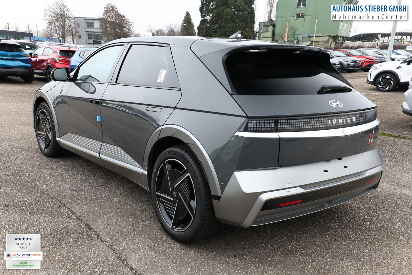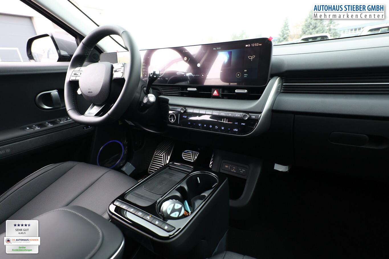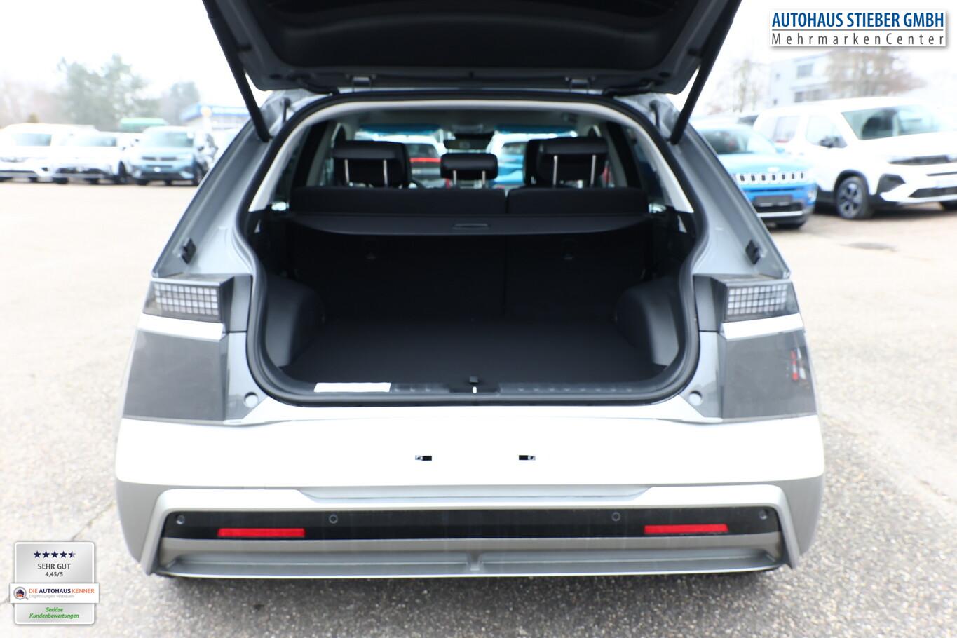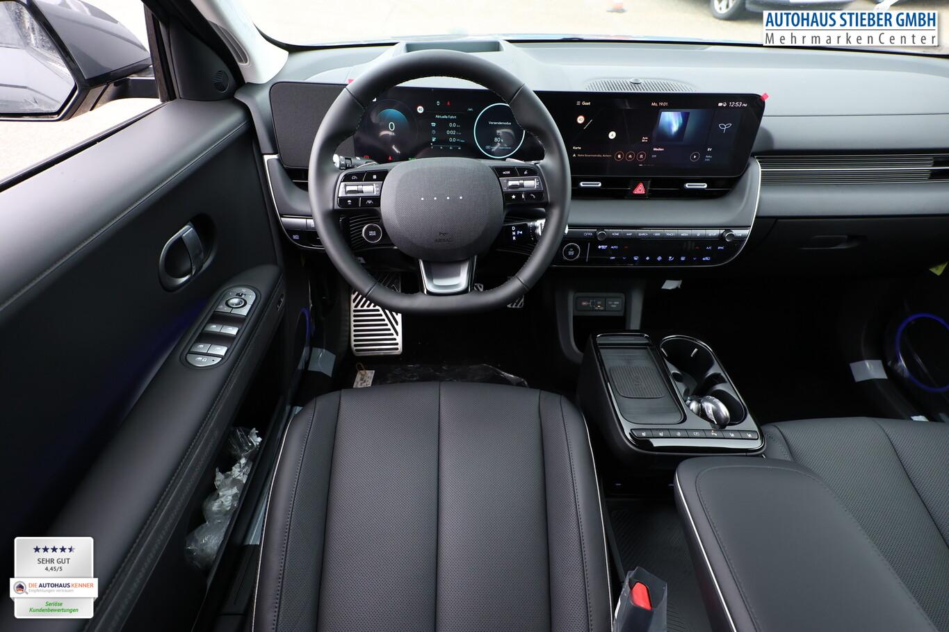 Park-Paket (Einparkhilfe seitlich / Radlaufabdeckung vorn und hinten lackiert / Seitenschutzleisten silber / Stoßfänger vorn mit Applikationen (Silber) / Fahrassistenz-System: City-Notbremsfunktion, rückwärts (PCA-R) / Kamerasystem Around View / Fahrassistenz-System: Totwinkel-Assistent mit Monitoranzeige (BVM) / Fahrassistenz-System: Remote Parklenkassistent (Remote Smart Parking Assist, RSPA)), Sound-System BOSE (7 Lautsprecher / Soundgenerator (innen) / Subwoofer), Ambientebeleuchtung, Bluetooth-Schnittstelle, Digitaler Fahrzeugschlüssel 2.0, Fahrassistenz-System: Spurwechselassistent, Freisprecheinrichtung Bluetooth, Head-up-Display, Kein Ladekabel vorhanden, LM-Felgen 20 Zoll, Mittelkonsole verschiebbar, Panorama-Glasdach, Reifen 255/45 R20, Relax-Paket, Rücksitzbank elektrisch verschiebbar, Sitzbelüftung vorn, Sitzbezug / Polsterung: Leder, Sitze vorn mit Memoryfunktion, Sitze vorn mit Relaxfunktion, SmartLink (Apple CarPlay & Android Auto), Sonnenrollos an den hinteren Türen (2. Sitzreihe), Wärmeschutzverglasung Frontscheibe, Dachspoiler (grosse Ausführung) (3. Bremsleuchte), LED-Paket (Blinkleuchten LED in Außenspiegel integriert / LED-Leuchtband vorn / Matrix-LED-Scheinwerfer), Audio-Navigationssystem (Touchscreen-Farbdisplay (12,25 Zoll)), Lenkrad (Leder) 3-Speichen (Lenkrad heizbar / Lenkrad (Leder) / Lenkrad (Leder) mit Multifunktion), Fahrassistenz-System: Autonome Notbremsfunktion inkl. Frontkollisionswarnung (FCA) (Fahrassistenz-System: Ausweich-Assistent (Evasive Steer Assistance, ESA) / Fahrassistenz-System: Ausweich-Assistent Fahrtrichtung (FCA-LS) / Fahrassistenz-System: Ausweich-Assistent Gegenverkehr (FCA-LO) / Fahrassistenz-System: Autonome Notbremsfunktion inkl. Abbiegefunktion (FCA-JT) / Fahrassistenz-System: Autonome Notbremsfunktion inkl. Fahrradfahrererkennung (FCA-Cyc.) / Fahrassistenz-System: Autonome Notbremsfunktion inkl. Fußgängererkennung (FCA-Ped.) / Fahrassistenz-System: Querverkehrs-Assistent vorn (Kreuzungs-Assistent)), Außenspiegel Unterschale schwarz lackiert, Batterieheizsystem, Elektromotor 168 kW (cont. 56 kW), Fahrassistenz-System: Autobahnassistent 2.0 (Highway Driving Assist, HDA 2.0), Fahrassistenz-System: Insassenalarm (RSA), Fahrassistenz-System: Multikollisionsbremse (Multi Collision Brake), Geschwindigkeits-Begrenzeranlage (Speed-Limiter), Heckscheibe heizbar, Heckscheibenwischer, HV-Batterie 84 kWh (Lithium-Ionen), Induktionsladeschale für Smartphone, Innenspiegel mit Abblendautomatik, Instrumentenanzeige Farbdisplay 12,25 Zoll, Karosserie: 5-türig, Kopfstützen hinten verstellbar, Kühlergrill, Aktive Luftklappen, regelbar, Ladevorrichtung On-Board-Lader (3-Phasen), Lendenwirbelstütze Sitz vorn links, elektr. verstellbar, Lendenwirbelstütze Sitz vorn rechts, elektr. verstellbar, Lenksäule (Lenkrad) höhenverstellbar, Lenksäule (Lenkrad) längsverstellbar, Mittelarmlehne hinten, Parkbremse elektrisch (EPB), Pedale Aluminium, Radioempfang digital (DAB+), Türgriffe außen ausfahrbar / versenkbar, elektrisch, Türgriffe außen Wagenfarbe, Wärmepumpe für Heizungs-/Klimaanlage, Audiosystem: Radio RDS, USB-Anschluss (Typ C), USB-Anschluss hinten (Typ C), USB-Anschluss Mittelkonsole, Anti-Blockier-System (ABS), Antriebsart: Heckantrieb, Elektron. Stabilitätskontrolle (ESC) mit Bremsassistent, Getriebe für Elektrofahrzeug, Klimaautomatik 2-Zonen, Airbag Beifahrerseite, Airbag Beifahrerseite abschaltbar, Airbag Fahrerseite, Fensterheber elektrisch vorn und hinten, mit Auf-/Ab-Automatik, Isofix-Aufnahmen für Kindersitz, Kopf-Airbag-System, Mittelarmlehne vorn verschiebbar, Rücksitzlehne geteilt/klappbar, Seitenairbag vorn, Seitenairbag vorn mitte (Central Airbag), Sitz vorn links elektr. verstellbar, Sitz vorn rechts elektr. verstellbar, Sitzheizung hinten, Sitzheizung vorn, Smart-Key, Verglasung hinten abgedunkelt (Privacy Glass), Zentralverriegelung mit Fernbedienung, Heckklappe/-Deckel elektr. betätigt (Öffnung, sensorgesteuert), Fahrassistenz-System: Berganfahrhilfe, Fahrassistenz-System: Verkehrszeichenerkennung, erweitert (Geschwindigkeits-Regel-/Begrenzeranlage), Geschwindigkeits-Regelanlage (Tempomat) mit Abstandsregelung ACC, Navigationsbasierte Adaptive Geschwindigkeitsregelanlage (Tempomat) mit Abstandsregelung (NSCC), Rückfahrkamera, Fahrassistenz-System: Sicherheitssystem mit automatischem Notruf (ERA GLONASS / eCall), Service-System: Remote Services (Blue Link), Lenkrad mit Schaltwippen, Außenspiegel elektr. anklappbar, Außenspiegel elektr. verstell- und heizbar, beide, Einschaltautomatik für Fahrlicht / Lichtsensor, Fahrassistenz-System: Fernlichtassistent, Heckleuchten LED (Pixel-Design), Scheibenwischer mit Regensensor, Fahrassistenz-System: aktiver Spurhalteassistent (LKAS, Lane Keep Assist System), Fahrassistenz-System: Aufmerksamkeits-Assistent, Fahrassistenz-System: Spurfolgeassistent (Lane Following Assist, LFA), Reifendruck-Kontrollsystem, Start-Stop-Knopf