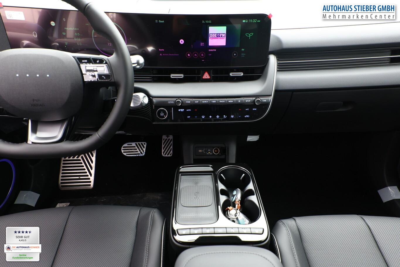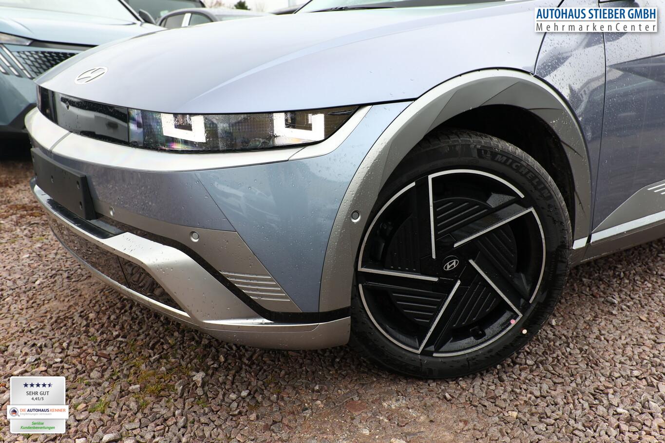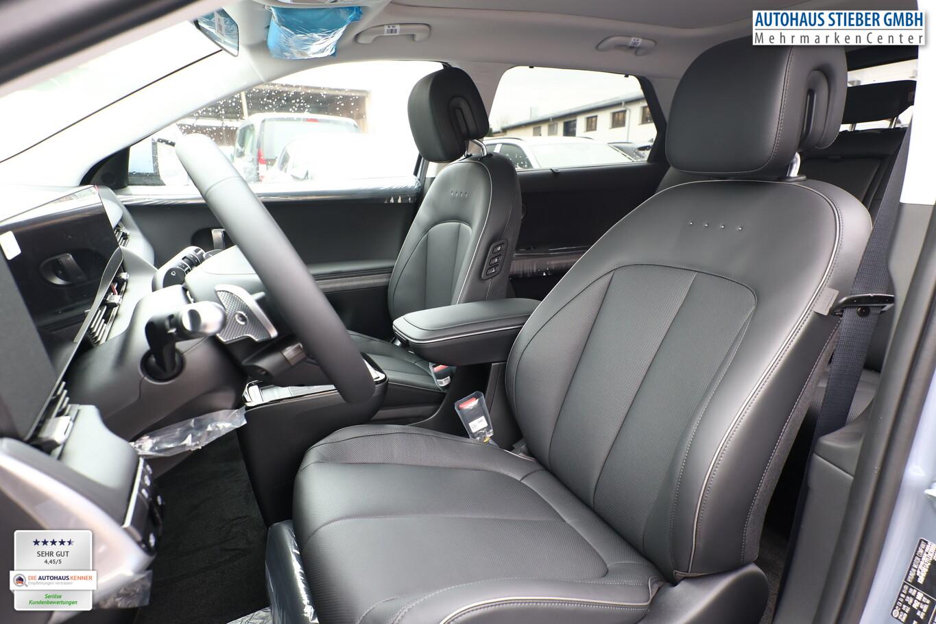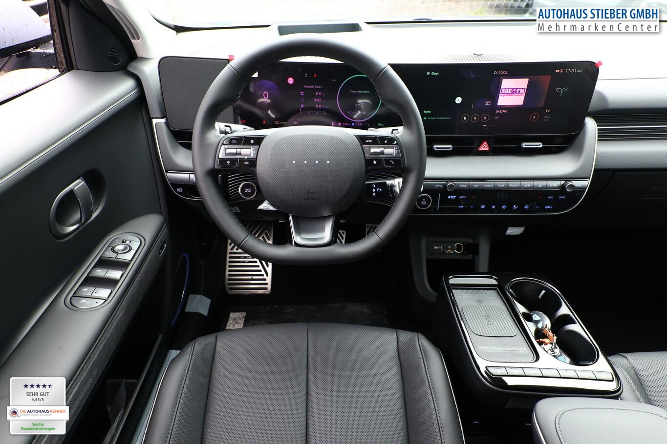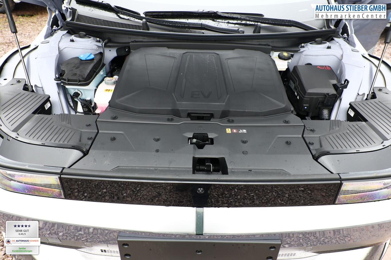 Park-Paket (Einparkhilfe seitlich / Radlaufabdeckung vorn und hinten lackiert / Seitenschutzleisten silber / Stoßfänger vorn mit Applikationen (Silber) / Fahrassistenz-System: City-Notbremsfunktion, rückwärts (PCA-R) / Kamerasystem Around View / Fahrassistenz-System: Totwinkel-Assistent mit Monitoranzeige (BVM) / Fahrassistenz-System: Remote Parklenkassistent (Remote Smart Parking Assist, RSPA)), Sound-System BOSE (7 Lautsprecher / Soundgenerator (innen) / Subwoofer), Ambientebeleuchtung, Bluetooth-Schnittstelle, Digitaler Fahrzeugschlüssel 2.0, Fahrassistenz-System: Spurwechselassistent, Freisprecheinrichtung Bluetooth, Head-up-Display, Kein Ladekabel vorhanden, LM-Felgen 20 Zoll, Mittelkonsole verschiebbar, Panorama-Glasdach, Reifen 255/45 R20, Relax-Paket, Rücksitzbank elektrisch verschiebbar, Sitzbelüftung vorn, Sitzbezug / Polsterung: Leder, Sitze vorn mit Memoryfunktion, Sitze vorn mit Relaxfunktion, SmartLink (Apple CarPlay & Android Auto), Sonnenrollos an den hinteren Türen (2. Sitzreihe), Wärmeschutzverglasung Frontscheibe, Dachspoiler (grosse Ausführung) (3. Bremsleuchte), LED-Paket (Blinkleuchten LED in Außenspiegel integriert / LED-Leuchtband vorn / Matrix-LED-Scheinwerfer), Audio-Navigationssystem (Touchscreen-Farbdisplay (12,25 Zoll)), Lenkrad (Leder) 3-Speichen (Lenkrad heizbar / Lenkrad (Leder) / Lenkrad (Leder) mit Multifunktion), Fahrassistenz-System: Autonome Notbremsfunktion inkl. Frontkollisionswarnung (FCA) (Fahrassistenz-System: Ausweich-Assistent (Evasive Steer Assistance, ESA) / Fahrassistenz-System: Ausweich-Assistent Fahrtrichtung (FCA-LS) / Fahrassistenz-System: Ausweich-Assistent Gegenverkehr (FCA-LO) / Fahrassistenz-System: Autonome Notbremsfunktion inkl. Abbiegefunktion (FCA-JT) / Fahrassistenz-System: Autonome Notbremsfunktion inkl. Fahrradfahrererkennung (FCA-Cyc.) / Fahrassistenz-System: Autonome Notbremsfunktion inkl. Fußgängererkennung (FCA-Ped.) / Fahrassistenz-System: Querverkehrs-Assistent vorn (Kreuzungs-Assistent)), Außenspiegel Unterschale schwarz lackiert, Batterieheizsystem, Elektromotor 168 kW (cont. 56 kW), Fahrassistenz-System: Autobahnassistent 2.0 (Highway Driving Assist, HDA 2.0), Fahrassistenz-System: Insassenalarm (RSA), Fahrassistenz-System: Multikollisionsbremse (Multi Collision Brake), Geschwindigkeits-Begrenzeranlage (Speed-Limiter), Heckscheibe heizbar, Heckscheibenwischer, HV-Batterie 84 kWh (Lithium-Ionen), Induktionsladeschale für Smartphone, Innenspiegel mit Abblendautomatik, Instrumentenanzeige Farbdisplay 12,25 Zoll, Karosserie: 5-türig, Kopfstützen hinten verstellbar, Kühlergrill, Aktive Luftklappen, regelbar, Ladevorrichtung On-Board-Lader (3-Phasen), Lendenwirbelstütze Sitz vorn links, elektr. verstellbar, Lendenwirbelstütze Sitz vorn rechts, elektr. verstellbar, Lenksäule (Lenkrad) höhenverstellbar, Lenksäule (Lenkrad) längsverstellbar, Mittelarmlehne hinten, Parkbremse elektrisch (EPB), Pedale Aluminium, Radioempfang digital (DAB+), Türgriffe außen ausfahrbar / versenkbar, elektrisch, Türgriffe außen Wagenfarbe, Wärmepumpe für Heizungs-/Klimaanlage, Audiosystem: Radio RDS, USB-Anschluss (Typ C), USB-Anschluss hinten (Typ C), USB-Anschluss Mittelkonsole, Anti-Blockier-System (ABS), Antriebsart: Heckantrieb, Elektron. Stabilitätskontrolle (ESC) mit Bremsassistent, Getriebe für Elektrofahrzeug, Klimaautomatik 2-Zonen, Airbag Beifahrerseite, Airbag Beifahrerseite abschaltbar, Airbag Fahrerseite, Fensterheber elektrisch vorn und hinten, mit Auf-/Ab-Automatik, Isofix-Aufnahmen für Kindersitz, Kopf-Airbag-System, Mittelarmlehne vorn verschiebbar, Rücksitzlehne geteilt/klappbar, Seitenairbag vorn, Seitenairbag vorn mitte (Central Airbag), Sitz vorn links elektr. verstellbar, Sitz vorn rechts elektr. verstellbar, Sitzheizung hinten, Sitzheizung vorn, Smart-Key, Verglasung hinten abgedunkelt (Privacy Glass), Zentralverriegelung mit Fernbedienung, Heckklappe/-Deckel elektr. betätigt (Öffnung, sensorgesteuert), Fahrassistenz-System: Berganfahrhilfe, Fahrassistenz-System: Verkehrszeichenerkennung, erweitert (Geschwindigkeits-Regel-/Begrenzeranlage), Geschwindigkeits-Regelanlage (Tempomat) mit Abstandsregelung ACC, Navigationsbasierte Adaptive Geschwindigkeitsregelanlage (Tempomat) mit Abstandsregelung (NSCC), Rückfahrkamera, Fahrassistenz-System: Sicherheitssystem mit automatischem Notruf (ERA GLONASS / eCall), Service-System: Remote Services (Blue Link), Lenkrad mit Schaltwippen, Außenspiegel elektr. anklappbar, Außenspiegel elektr. verstell- und heizbar, beide, Einschaltautomatik für Fahrlicht / Lichtsensor, Fahrassistenz-System: Fernlichtassistent, Heckleuchten LED (Pixel-Design), Scheibenwischer mit Regensensor, Fahrassistenz-System: aktiver Spurhalteassistent (LKAS, Lane Keep Assist System), Fahrassistenz-System: Aufmerksamkeits-Assistent, Fahrassistenz-System: Spurfolgeassistent (Lane Following Assist, LFA), Reifendruck-Kontrollsystem, Start-Stop-Knopf