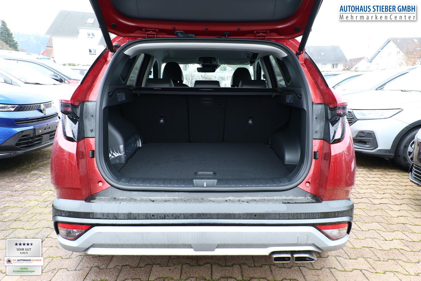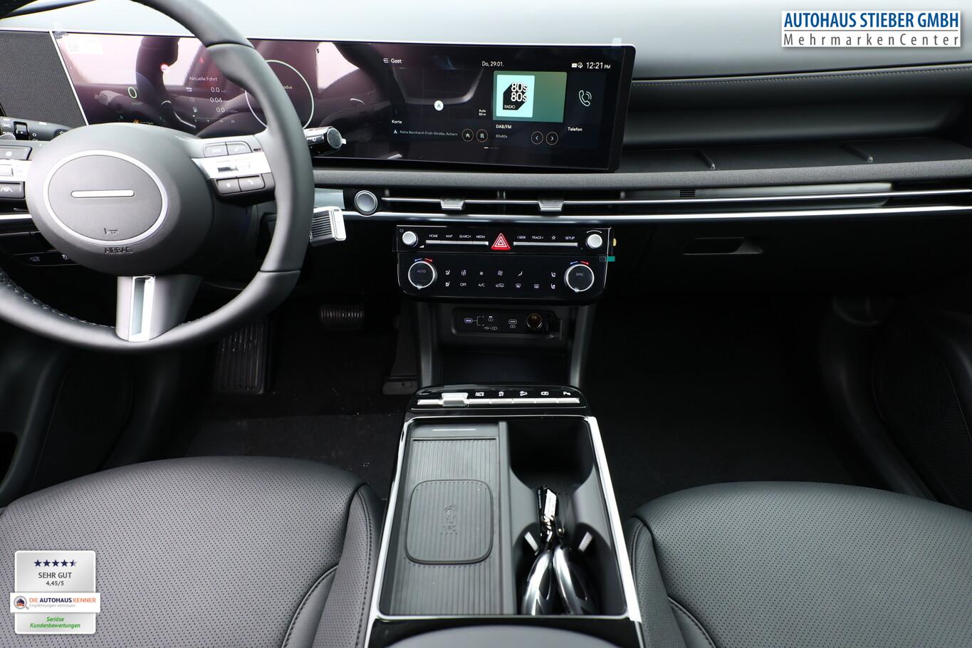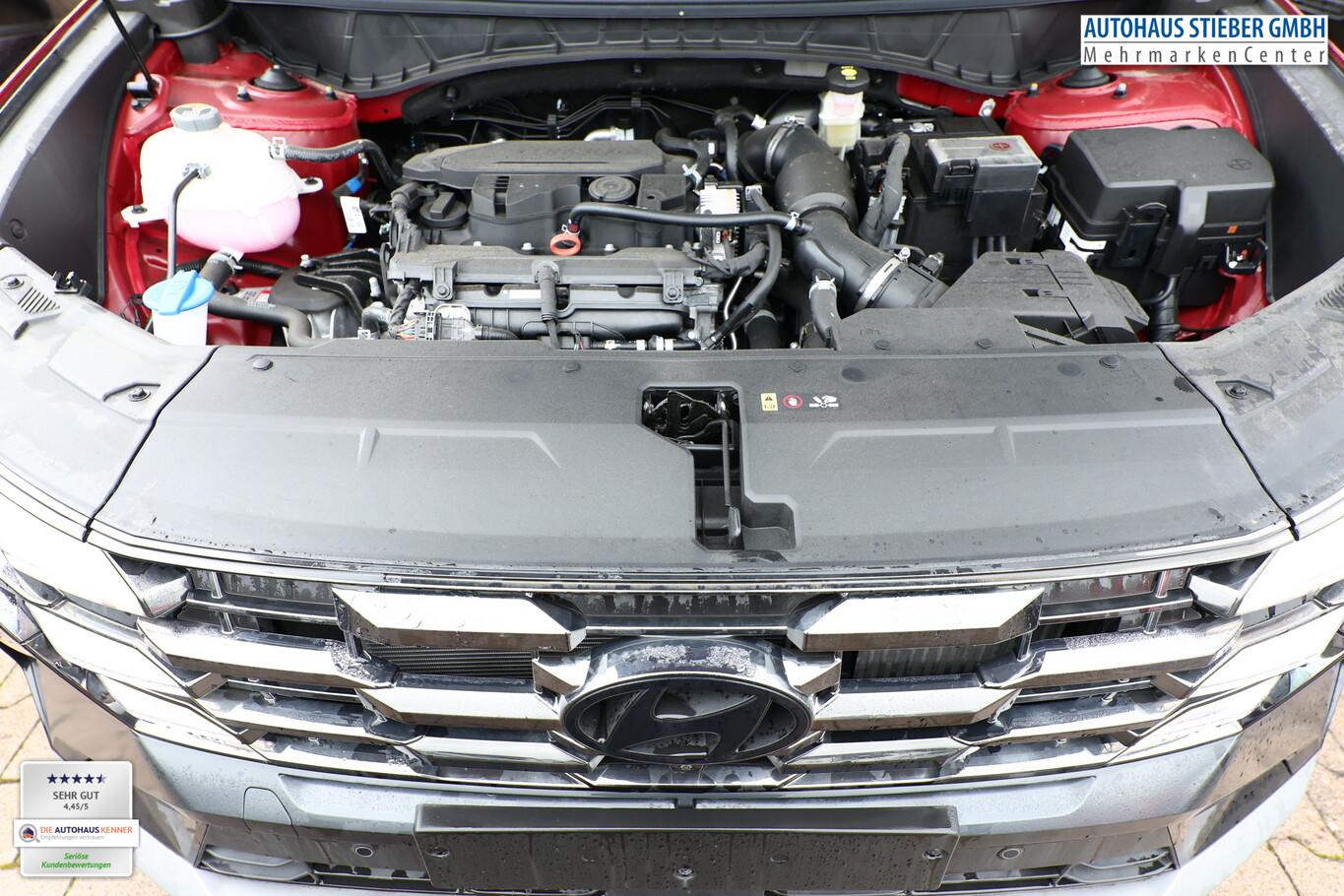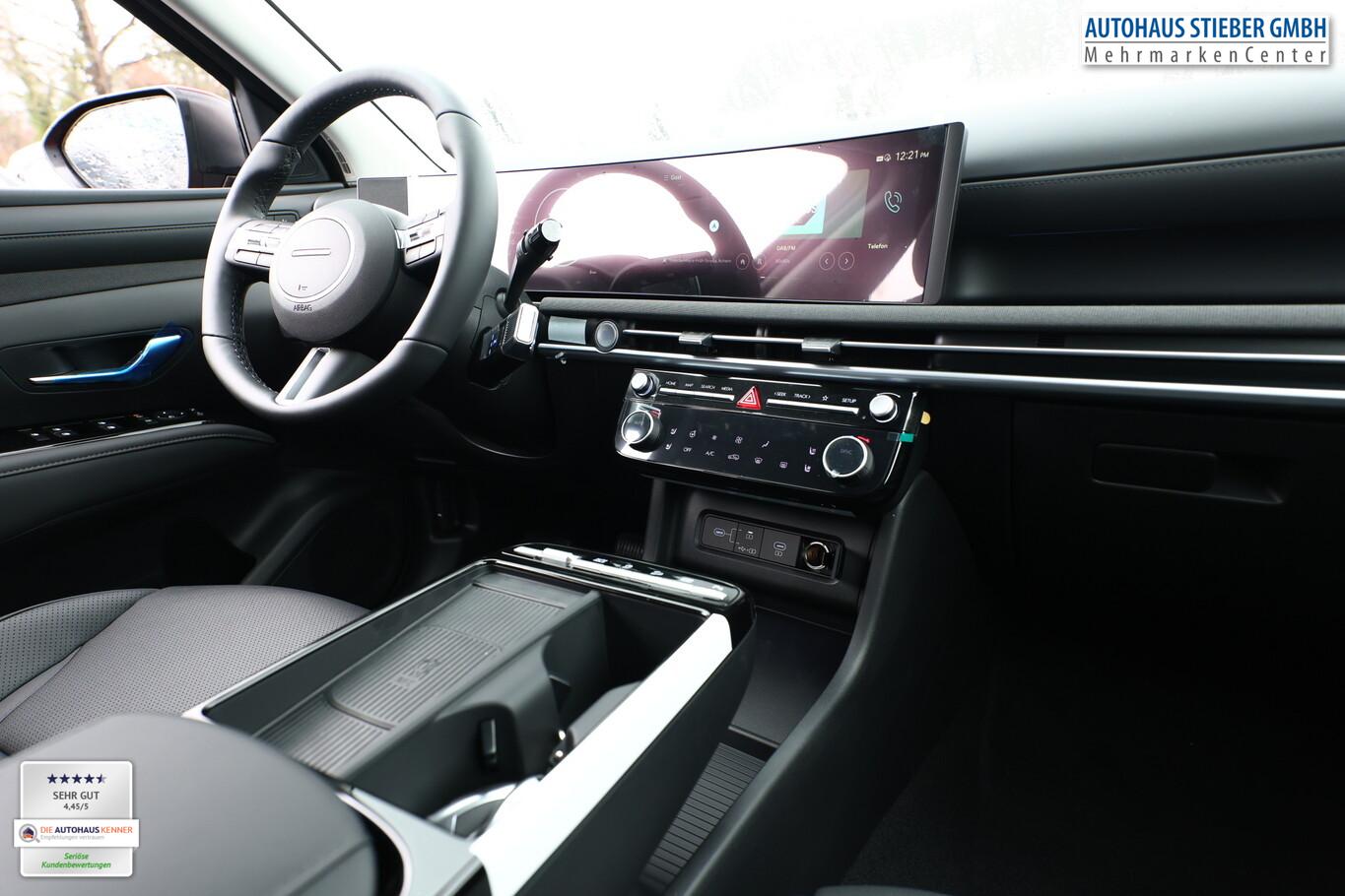 Assistenz-Paket (Einparkhilfe seitlich / Fahrassistenz-System: City-Notbremsfunktion, rückwärts (PCA-R) / Kamerasystem Around View / Fahrassistenz-System: Totwinkel-Assistent mit Monitoranzeige (BVM)), Digital Key, Fahrassistenz-System: Spurfolgeassistent (LFA), Lenksäule (Lenkrad) höhen-/längsverstellbar, LM-Felgen 19", Reifen 235/50 R19, Schadstoffarm nach Abgasnorm Euro 6e (EU6 EA), Smartphone-Schnittstelle (Apple CarPlay & Android Auto), Dachspoiler (3. Bremsleuchte), Design-Paket (Kühlergrill in dunkler Optik / Heckleuchten LED / Tagfahrlicht LED in dunkler Optik), Digital Cockpit (Instrumentenanzeige Digital) (Kombiinstrument digital mit Panorama-Display (Curved) / Bordcomputer), Sitz-Paket (Komfortsitze vorn (inkl. Belüftung / Sitzheizung) / Memoryfunktion für Sitz vorn links / Sitz vorn links elektr. verstellbar / Sitz vorn rechts elektr. verstellbar / Sitzheizung hinten / Außenspiegel elektr. verstell- und heizbar, mit Memory), Sound-System KRELL (7 Lautsprecher / Subwoofer), Sitzbezug / Polsterung: Leder (Komfortsitze vorn (inkl. Belüftung / Sitzheizung)), Lenkrad (Leder) (Lenkrad (Leder) 3-Speichen / Lenkrad (Leder) mit Multifunktion), Fahrassistenz-System: Autonome Notbremsfunktion inkl. Frontkollisionswarnung (FCA) (Fahrassistenz-System: Autonome Notbremsfunktion inkl. Abbiegefunktion (FCA-JT) / Fahrassistenz-System: Autonome Notbremsfunktion inkl. Fahrradfahrererkennung (FCA-Cyc.) / Fahrassistenz-System: Autonome Notbremsfunktion inkl. Fußgängererkennung (FCA-Ped.)), Aktives Bremslicht (ESS), Anhänger-Stabilisierungs-Programm (TSA), Außenspiegel lackiert, Fahrassistenz-System: Autobahnassistent 1.5 (Highway Driving Assist, HDA 1.5), Fahrassistenz-System: Insassenalarm (Rear Occopant Alert, ROA), Fahrassistenz-System: Multikollisionsbremse (Multi Collision Brake), Frontscheibe Verbundglas, Geschwindigkeits-Begrenzeranlage (Speed-Limiter), Gurtstraffer, Heckscheibe heizbar, Induktionsladeschale für Smartphone, Innenspiegel mit Abblendautomatik, Karosserie: 5-türig, Lendenwirbelstütze Sitz vorn links, elektr. verstellbar, Lenkrad heizbar, Mild-Hybrid 118 kW (Motor 1,6 Ltr. - 118 kW T-GDI), Nebelschlussleuchte, Otto-Partikelfilter (OPF), Parkbremse elektrisch (EPB), Radioempfang digital (DAB+), Radstand 2680 mm, Schalt-/Wählhebel (Shift by Wire), Sitz vorn links höhenverstellbar, Touchscreen-Farbdisplay (12,25 Zoll), Türgriffe außen Wagenfarbe, Warnanlage für Sicherheitsgurte, Fahrer-/Beifahrerseite, Audio-Navigationssystem, Freisprecheinrichtung Bluetooth, USB-Anschluss Mittelkonsole, Anti-Blockier-System (ABS), Antriebsart: Frontantrieb, Elektron. Stabilitätskontrolle (ESC) mit Bremsassistent, Wegfahrsperre (elektronisch), Getriebe 7-Gang - Doppelkupplungsgetriebe DCT, Klimaautomatik 3-Zonen, Airbag Beifahrerseite, Airbag Fahrerseite, Fensterheber elektr. mit Einklemmschutz, Fensterheber elektrisch vorn und hinten, mit Auf-/Ab-Automatik, Isofix-Aufnahmen für Kindersitz, Kopf-Airbag-System, Mittelarmlehne vorn, Rücksitzlehne geteilt/klappbar, Seitenairbag vorn, Seitenairbag vorn mitte (Central Airbag), Sitzheizung vorn, Smart-Key, Sonnenschutzrollo an Türscheiben hinten, Verglasung hinten abgedunkelt (Privacy Glass), Head-up-Display, Dachreling, Heckklappe/-Deckel elektr. betätigt (Öffnung, sensorgesteuert), Verglasung getönt, Fahrassistenz-System: Berganfahrhilfe, Fahrassistenz-System: Verkehrszeichenerkennung, erweitert (Geschwindigkeits-Regel-/Begrenzeranlage), Geschwindigkeits-Regelanlage (Tempomat) mit Abstandsregelung ACC, Fahrassistenz-System: Sicherheitssystem mit automatischem Notruf (ERA GLONASS / eCall), Lenkrad mit Schaltwippen, Servolenkung, Außenspiegel elektr. anklappbar, Einschaltautomatik für Fahrlicht / Lichtsensor, Fahrassistenz-System: Fernlichtassistent, Matrix-LED-Scheinwerfer, Scheibenwischer mit Regensensor, Fahrassistenz-System: aktiver Spurhalteassistent (LKAS, Lane Keep Assist System), Fahrassistenz-System: Aufmerksamkeits-Assistent, Reifendruck-Kontrollsystem, Start-Stop-Knopf, Start/Stop-Anlage
