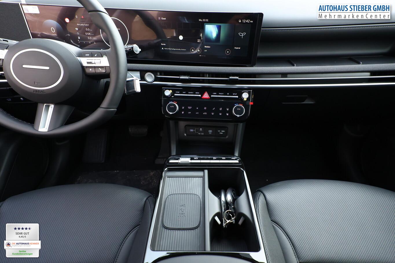 Panorama-Schiebedach, Assistenz-Paket (Einparkhilfe seitlich / Fahrassistenz-System: City-Notbremsfunktion, rückwärts (PCA-R) / Kamerasystem Around View / Fahrassistenz-System: Totwinkel-Assistent mit Monitoranzeige (BVM) / Fahrassistenz-System: Remote Parklenkassistent (Remote Smart Parking Assist, RSPA)), Fahrwerksdämpfung elektronisch geregelt (ASD / ECS), Geschwindigkeits-Begrenzeranlage (Speed-Limiter), Gurtstraffer, Radioempfang digital (DAB+), USB-Anschluss Mittelkonsole, Fahrassistenz-System: Spurfolgeassistent (LFA), Lenksäule (Lenkrad) höhen-/längsverstellbar, LM-Felgen 19", Nebelscheinwerfer, Reifen 235/50 R19, Schadstoffarm nach Abgasnorm Euro 6e (EU6 EA), Smartphone-Schnittstelle (Apple CarPlay & Android Auto), Sprachsteuerung, Zentralverriegelung mit Fernbedienung, Dachspoiler (3. Bremsleuchte), Design-Paket (Kühlergrill in dunkler Optik / Heckleuchten LED / Tagfahrlicht LED in dunkler Optik), Digital Cockpit (Instrumentenanzeige Digital) (Kombiinstrument digital mit Panorama-Display (Curved) / Bordcomputer), Sound-System KRELL (7 Lautsprecher / Subwoofer), Sitzbezug / Polsterung: Leder (Komfortsitze vorn (inkl. Belüftung / Sitzheizung)), Lenkrad (Leder) (Lenkrad (Leder) 3-Speichen / Lenkrad (Leder) mit Multifunktion), Aktives Bremslicht (ESS), Anhänger-Stabilisierungs-Programm (TSA), Außenspiegel lackiert, Fahrassistenz-System: Autobahnassistent 1.5 (Highway Driving Assist, HDA 1.5), Fahrassistenz-System: Insassenalarm (Rear Occopant Alert, ROA), Fahrassistenz-System: Multikollisionsbremse (Multi Collision Brake), Frontscheibe Verbundglas, Heckscheibe heizbar, Hybrid 158 kW (Motor 1,6 Ltr. - 118 kW T-GDI), Induktionsladeschale für Smartphone, Innenspiegel mit Abblendautomatik, Karosserie: 5-türig, Lendenwirbelstütze Sitz vorn links, elektr. verstellbar, Lenkrad heizbar, Nebelschlussleuchte, Otto-Partikelfilter (OPF), Parkbremse elektrisch (EPB), Radstand 2680 mm, Schalt-/Wählhebel (Shift by Wire), Sitz vorn links höhenverstellbar, Touchscreen-Farbdisplay (12,25 Zoll), Türgriffe außen Wagenfarbe, Warnanlage für Sicherheitsgurte, Fahrer-/Beifahrerseite, Audio-Navigationssystem, Freisprecheinrichtung Bluetooth, Anti-Blockier-System (ABS), Antriebsart: Frontantrieb, Elektron. Stabilitätskontrolle (ESC) mit Bremsassistent, Wegfahrsperre (elektronisch), Getriebe Automatik - (6-Stufen), Klimaautomatik 3-Zonen, Airbag Beifahrerseite, Airbag Fahrerseite, Digital Key, Fensterheber elektr. mit Einklemmschutz, Fensterheber elektrisch vorn und hinten, mit Auf-/Ab-Automatik, Isofix-Aufnahmen für Kindersitz, Kopf-Airbag-System, Mittelarmlehne vorn, Rücksitzlehne geteilt/klappbar, Seitenairbag vorn, Seitenairbag vorn mitte (Central Airbag), Sitzheizung vorn, Smart-Key, Sonnenschutzrollo an Türscheiben hinten, Verglasung hinten abgedunkelt (Privacy Glass), Head-up-Display, Dachreling, Heckklappe/-Deckel elektr. betätigt (Öffnung, sensorgesteuert), Verglasung getönt, Fahrassistenz-System: Berganfahrhilfe, Fahrassistenz-System: Verkehrszeichenerkennung, erweitert (Geschwindigkeits-Regel-/Begrenzeranlage), Geschwindigkeits-Regelanlage (Tempomat) mit Abstandsregelung ACC, Fahrassistenz-System: Sicherheitssystem mit automatischem Notruf (ERA GLONASS / eCall), Lenkrad mit Schaltwippen, Servolenkung, Außenspiegel elektr. anklappbar, Einschaltautomatik für Fahrlicht / Lichtsensor, Fahrassistenz-System: Fernlichtassistent, Matrix-LED-Scheinwerfer, Scheibenwischer mit Regensensor, Fahrassistenz-System: aktiver Spurhalteassistent (LKAS, Lane Keep Assist System), Fahrassistenz-System: Aufmerksamkeits-Assistent, Reifendruck-Kontrollsystem, Start-Stop-Knopf, Start/Stop-Anlage