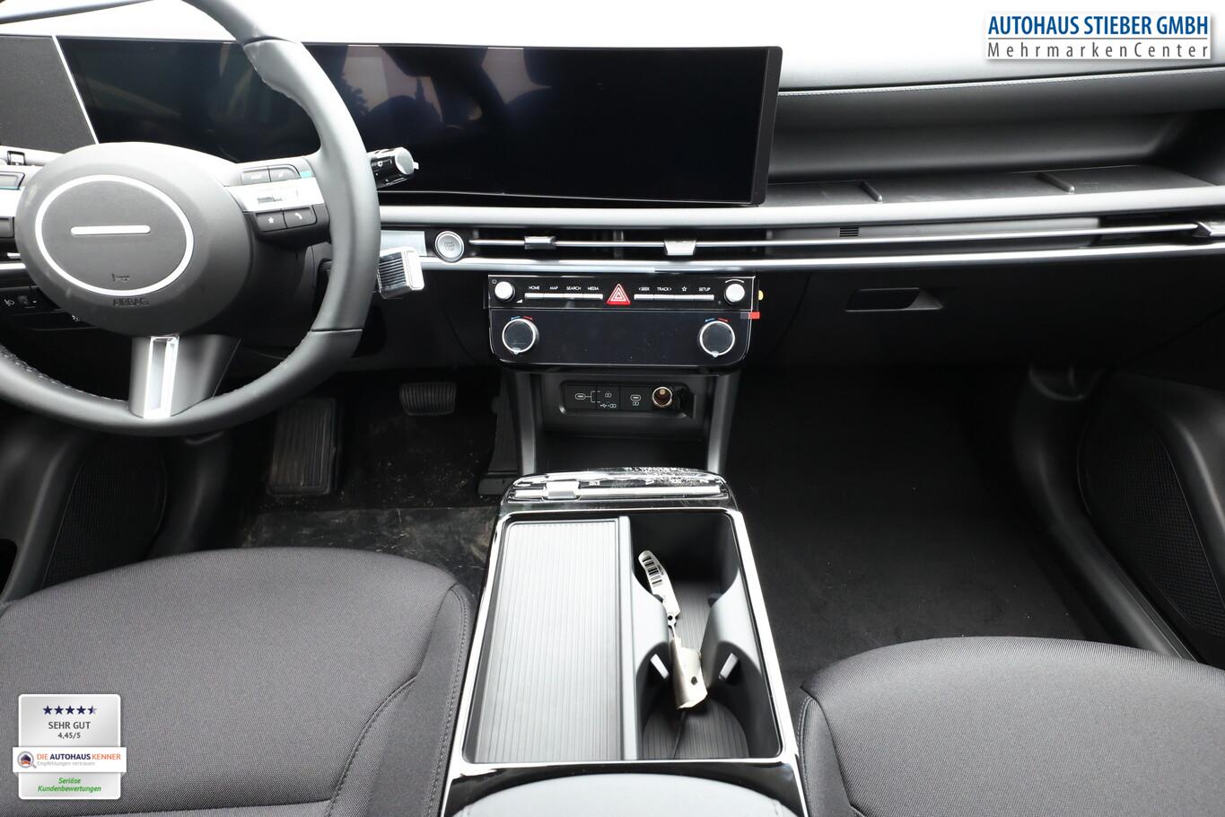 Fahrassistenz-System: Autonome Notbremsfunktion inkl. Frontkollisionwarnung (FCA), Fahrassistenz-System: Spurfolgeassistent (LFA), Kombiinstrument digital, Lenksäule (Lenkrad) höhen-/längsverstellbar, LM-Felgen 17", Reifen 215/65 R17, Schadstoffarm nach Abgasnorm Euro 6e (EU6 EA), Smartphone-Schnittstelle (Apple CarPlay & Android Auto), Dachspoiler (3. Bremsleuchte), Lenkrad (Leder) (Lenkrad (Leder) 3-Speichen / Lenkrad (Leder) mit Multifunktion), Fahrassistenz-System: Einparkhilfe vorn und hinten (Einparkhilfe hinten), 6 Lautsprecher, Aktives Bremslicht (ESS), Anhänger-Stabilisierungs-Programm (TSA), Außenspiegel lackiert, Fahrassistenz-System: Insassenalarm (RSA), Fahrassistenz-System: Multikollisionsbremse (Multi Collision Brake), Geschwindigkeits-Begrenzeranlage (Speed-Limiter), Heckscheibe heizbar, Hybrid 158 kW (Motor 1,6 Ltr. - 118 kW T-GDI), Karosserie: 5-türig, Kopfstützen hinten verstellbar, Nebelschlussleuchte, Otto-Partikelfilter (OPF), Parkbremse elektrisch (EPB), Radioempfang digital (DAB+), Radstand 2680 mm, Schalt-/Wählhebel (Shift by Wire), Sitz vorn links höhenverstellbar, Sitzbezug / Polsterung: Stoff, Touchscreen-Farbdisplay (12,25 Zoll), Türgriffe außen Wagenfarbe, Verglasung Akustikglas, Warnanlage für Sicherheitsgurte, Fahrer-/Beifahrerseite, Audio-Navigationssystem, Freisprecheinrichtung Bluetooth, USB-Anschluss Mittelkonsole, Anti-Blockier-System (ABS), Antriebsart: Frontantrieb, Elektron. Stabilitätskontrolle (ESC) mit Bremsassistent, LM-Felgen 7x17 (5-Arm, Turbinen-Design), Wegfahrsperre (elektronisch), Getriebe Automatik - (6-Stufen), Klimaautomatik 2-Zonen, Airbag Beifahrerseite, Airbag Fahrerseite, Fensterheber elektr. mit Einklemmschutz, Fensterheber elektrisch vorn und hinten, mit Auf-/Ab-Automatik, Isofix-Aufnahmen für Kindersitz, Kopf-Airbag-System, Mittelarmlehne vorn, Rücksitzlehne geteilt/klappbar, Seitenairbag vorn, Seitenairbag vorn mitte (Central Airbag), Smart-Key, Zentralverriegelung mit Fernbedienung, Verglasung getönt, Fahrassistenz-System: Berganfahrhilfe, Fahrassistenz-System: Verkehrszeichenerkennung, erweitert (Geschwindigkeits-Regel-/Begrenzeranlage), Geschwindigkeits-Regelanlage (Tempomat) mit Abstandsregelung ACC, Rückfahrkamera, Fahrassistenz-System: Sicherheitssystem mit automatischem Notruf (ERA GLONASS / eCall), Service-System: Remote Services (Blue Link), Servolenkung, Abbiegelicht, Außenspiegel elektr. anklappbar, Außenspiegel elektr. verstell- und heizbar, beide, Einschaltautomatik für Fahrlicht / Lichtsensor, Fahrassistenz-System: Fernlichtassistent, Scheinwerfer Voll-LED, Tagfahrlicht LED, Fahrassistenz-System: aktiver Spurhalteassistent (LKAS, Lane Keep Assist System), Fahrassistenz-System: Aufmerksamkeits-Assistent, Reifendruck-Kontrollsystem, Start-Stop-Knopf