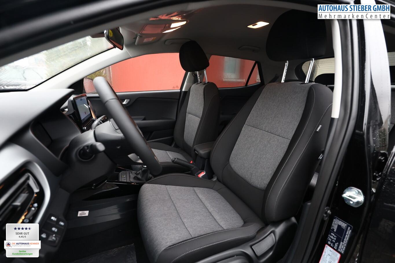 LED-Paket (Nebelscheinwerfer / Scheinwerfer LED), Fahrassistenz-System: Spurfolgeassistent (LFA), Leseleuchten vorn und hinten, LM-Felgen 16", Reifen 195/55 R16, Schadstoffarm nach Abgasnorm Euro 6e (EU6 EA), Seitenscheiben hinten und Heckscheibe abgedunkelt, Unterfahrschutz (Silber) (Unterfahrschutz hinten / Unterfahrschutz vorn), Audio-Navigationssystem KIA (8 Zoll) (Mobile Online Dienste UVO Connect / Kia Connect / Smartphone Schnittstelle (Apple CarPlay & Android Auto) / Rückfahrkamera), Blinkleuchten LED in Außenspiegel integriert (Blinkleuchte in Außenspiegel integriert), Anzeigeinstrumente Supervision mit LCD Display, Außenspiegel Wagenfarbe, Geschwindigkeits-Begrenzeranlage, Getränkehalter, Karosserie: 5-türig, Lenksäule (Lenkrad) höhen-/längsverstellbar, Motor 1,2 Ltr. - 58 kW KAT, Radioempfang digital (DAB+), Radstand 2580 mm, Sitz vorn links höhenverstellbar, Sitzbezug / Polsterung: Stoff, Sonnenblenden mit Spiegel (beleuchtet), Stoßfänger Wagenfarbe, Türgriffe außen Wagenfarbe, Freisprecheinrichtung (Bluetooth) mit Sprachsteuerung, USB-Anschluss Mittelkonsole, Anti-Blockier-System (ABS), Bremsassistent, Fahrassistenz-System: Frontkollisionswarnung mit Fußgänger- und Fahrraderkennung und Abbiegefunktion, Antriebs-Schlupfregelung (TCS), Antriebsart: Frontantrieb, Elektron. Stabilitäts-Programm (ESP / ESC), Wegfahrsperre, Getriebe 5-Gang, Klimaautomatik, Airbag Fahrer-/Beifahrerseite, Fensterheber elektrisch hinten, Fensterheber elektrisch vorn, Isofix-Aufnahmen für Kindersitz, Kopf-Airbag-System, Mittelarmlehne vorn, Rücksitzlehne geteilt/klappbar, Seitenairbag, Zentralverriegelung mit Fernbedienung, Bordcomputer, Dachreling, Wärmeschutzverglasung, Fahrassistenz-System: Verkehrszeichenerkennung, erweitert (Geschwindigkeits-Regel-/Begrenzeranlage), Geschwindigkeits-Regelanlage (Tempomat), Multifunktion für Lenkrad, Servolenkung elektronisch gesteuert, Außenspiegel elektr. anklappbar, Außenspiegel elektr. verstell- und heizbar, beide, Tagfahrlicht LED, Einparkhilfe hinten, Fahrassistenz-System: aktiver Spurhalteassistent (LKAS, Lane Keep Assist System), Reifendruck-Kontrollsystem, Start/Stop-Anlage (ISG)