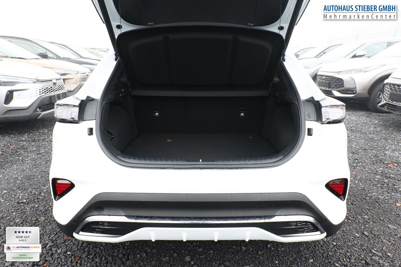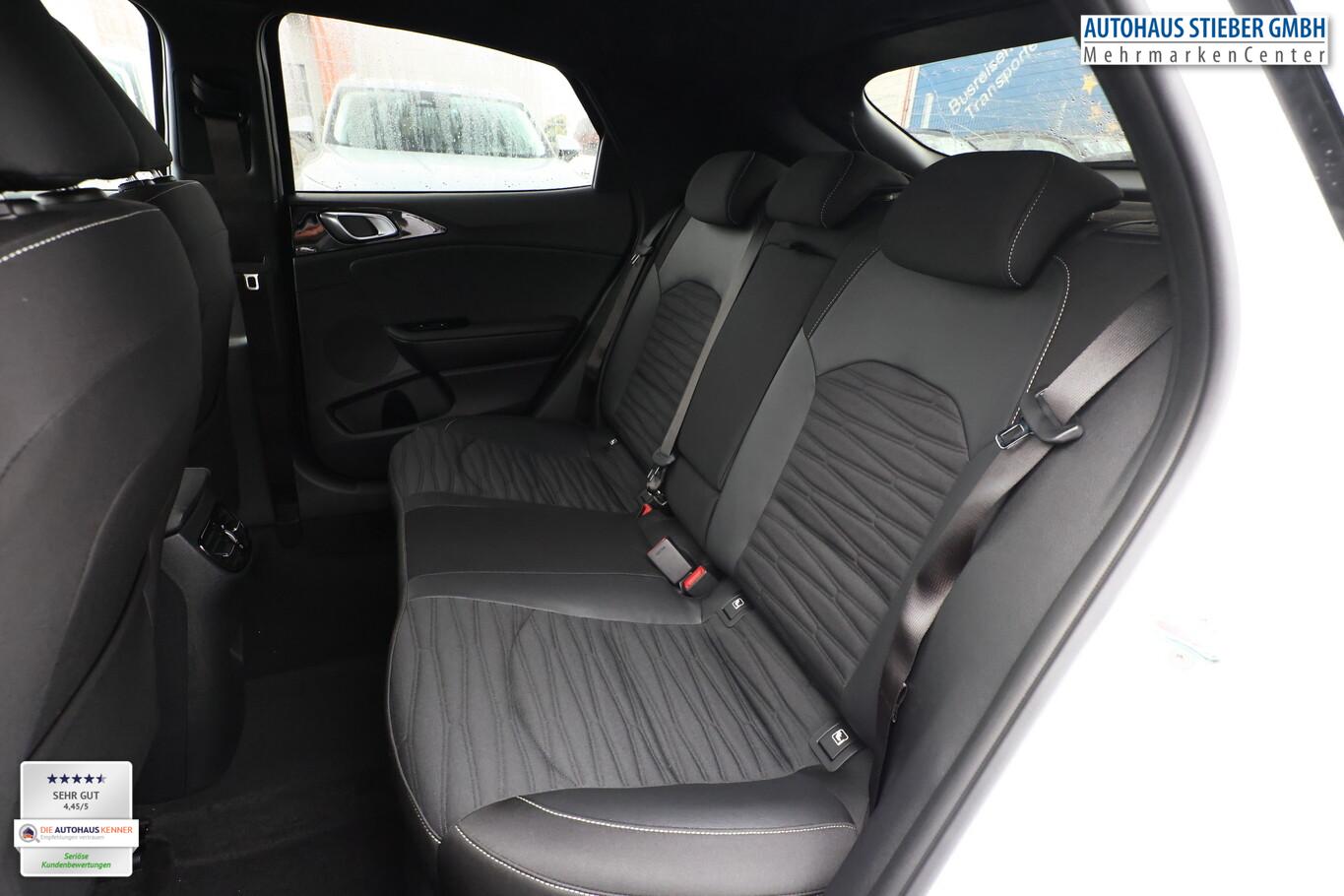 Anzeigeinstrumente Supervision mit LCD Display 4,2 Zoll, Auto-Hold-Funktion, Beifahrerairbag deaktivierbar, Dachreling, Fahrassistenz-System: Spurhalteassistent, Freisprecheinrichtung Bluetooth, Geschwindigkeitsbegrenzer, Handschuhfach beleuchtet, Heckleuchten LED in Wabenform mit sequentiellen Blinkern, Lendenwirbelstütze Sitz vorn links und rechts, Lenkrad (Lenksäule) höhen-/längsverstellbar, LM-Felgen 18 Zoll, Mittelarmlehne hinten, Reifen 235/45 R18, Rücksitzlehne geteilt klappbar (60:40), Seitenairbag vorn, Sitzbezug / Polsterung: Stoff/Kunstleder, Sitzheizung hinten, Sportsitze vorn, Zentralverriegelung, Audio-Navigationssystem KIA (10,25") (Mobile Online Dienste UVO Connect / Kia Connect), Klimaautomatik 2-Zonen (Sensor Scheibenbeschlagerkennung), Aktives Bremslicht (ESS), Brillenfach in Dachhimmel / Dachkonsole integriert, Dachhimmel schwarz, Fahrassistenz-System: Insassenalarm (Rear Occopant Alert, ROA), Induktionsladeschale für Smartphone, Innenspiegel mit Abblendautomatik, Karosserie: 5-türig, Laderaumboden variabel, Lenkrad heizbar, Luftausströmer im Fond mitte, Motor 1,6 Ltr. - 110 kW T-GDI KAT, Otto-Partikelfilter (OPF), Parkbremse elektrisch, Pedale Aluminium, Radioempfang digital (DAB+), Sitz vorn links höhenverstellbar, Sitz vorn rechts mech. höhenverstellbar, Steckdose (12V-Anschluß) im Koffer-/Laderaum, Steckdose (12V-Anschluß) in Mittelkonsole, Warnanlage für Sicherheitsgurte hinten, Warnanlage für Sicherheitsgurte, Fahrer-/Beifahrerseite, Smartphone Schnittstelle (Apple CarPlay & Android Auto), USB-Schnellladeanschluß Mittelkonsole, Anti-Blockier-System (ABS), Bremsassistent, Fahrassistenz-System: Frontkollisionswarnung mit Fußgänger- und Fahrraderkennung und Abbiegefunktion, Antriebs-Schlupfregelung (TCS), Antriebsart: Frontantrieb, Elektron. Stabilitäts-Programm (ESP / ESC), Wegfahrsperre, Getriebe 7-Gang - Doppelkupplungsgetriebe DCT, Airbag Fahrer-/Beifahrerseite, Fensterheber elektrisch vorn + hinten, Isofix-Aufnahmen für Kindersitz, Kopf-Airbag-System, Mittelarmlehne vorn verschiebbar, Schließ-/Startsystem Smart-Key, Sitzheizung vorn, Verglasung hinten abgedunkelt (Privacy Glass), Bordcomputer, Fahrassistenz-System: Fahrprofilauswahl (Drive Mode), Heckklappe elektr. betätigt sensorgesteuert, Adaptive Geschwindigkeits-Regelanlage mit Stop&Go-Funktion, Fahrassistenz-System: Berganfahr-Assistent, Fahrassistenz-System: Verkehrszeichenerkennung, Rückfahrkamera, Lenkrad (Leder), Lenkrad mit Multifunktion, Servolenkung elektronisch gesteuert, Außenspiegel elektr. anklappbar, Außenspiegel elektr. verstellbar, beide, Außenspiegel heizbar, Bi-LED-Scheinwerfer, Einschaltautomatik für Fahrlicht, Fahrassistenz-System: Fernlichtassistent, Nebelscheinwerfer LED, Scheibenwischer mit Regensensor, Tagfahrlicht LED, Einparkhilfe hinten, Einparkhilfe vorn, Fahrassistenz-System: Müdigkeitserkennungs-Sensor (Driver Attention Warning, DAW), Fahrassistenz-System: Spurfolgeassistent (Lane Following Assist, LFA), Reifendruck-Kontrollsystem, Start/Stop-Anlage (ISG)