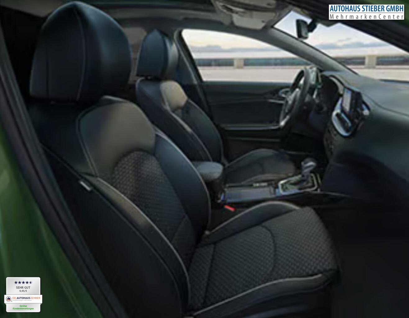 Außenspiegel elektr. anklappbar, Beifahrerairbag deaktivierbar, Dachreling, Einparkhilfe vorn, Fahrassistenz-System: Autonomer Notbrems-Assistent mit Fußgänger- und Fahrraderkennung, Fahrassistenz-System: Spurhalteassistent, Fahrmodusschalter, Freisprecheinrichtung Bluetooth, Geschwindigkeitsbegrenzer, Handschuhfach beleuchtet, Induktionsladeschale für Smartphone, Innenspiegel mit Abblendautomatik, Klimaautomatik 2-Zonen, Lenkrad (Lenksäule) höhen-/längsverstellbar, LM-Felgen 16 Zoll, Lüftungsauslässe im Fond, Mittelarmlehne hinten, Parkbremse elektrisch inkl. Auto-Hold-Funktion, Reifen 205/60 R16, Rücksitzlehne geteilt klappbar (60:40), Scheibenwischer mit Regensensor, Seitenairbag vorn, Sitz vorn rechts höhenverstellbar, Sitzbezug / Polsterung: Stoff/Kunstleder, Verglasung hinten abgedunkelt (Privacy Glass), Audio-Navigationssystem KIA (10,25") (Mobile Online Dienste UVO Connect / Kia Connect), Aktives Bremslicht (ESS), Anzeigeinstrumente Supervision mit LCD Display 4,2 Zoll, Brillenfach in Dachhimmel / Dachkonsole integriert, Fahrassistenz-System: Insassenalarm (Rear Occopant Alert, ROA), Karosserie: 5-türig, Laderaumboden variabel, Lenkrad heizbar, Motor 1,6 Ltr. - 110 kW T-GDI KAT, Otto-Partikelfilter (OPF), Radioempfang digital (DAB+), Sitz vorn links höhenverstellbar, Steckdose (12V-Anschluß) im Koffer-/Laderaum, Steckdose (12V-Anschluß) in Mittelkonsole, Warnanlage für Sicherheitsgurte hinten, Warnanlage für Sicherheitsgurte, Fahrer-/Beifahrerseite, Smartphone Schnittstelle (Apple CarPlay & Android Auto), USB-Schnellladeanschluß Mittelkonsole, Anti-Blockier-System (ABS), Bremsassistent, Antriebs-Schlupfregelung (TCS), Antriebsart: Frontantrieb, Elektron. Stabilitäts-Programm (ESP / ESC), Wegfahrsperre, Getriebe 7-Gang - Doppelkupplungsgetriebe DCT, Airbag Fahrer-/Beifahrerseite, Fensterheber elektrisch vorn + hinten, Isofix-Aufnahmen für Kindersitz, Kopf-Airbag-System, Mittelarmlehne vorn, Sitzheizung vorn, Zentralverriegelung mit Fernbedienung, Bordcomputer, Fahrassistenz-System: Berganfahr-Assistent, Fahrassistenz-System: Verkehrszeichenerkennung, Geschwindigkeits-Regelanlage (Tempomat), Rückfahrkamera, Lenkrad (Leder), Lenkrad mit Multifunktion, Servolenkung elektronisch gesteuert, Außenspiegel elektr. verstellbar, beide, Außenspiegel heizbar, Bi-LED-Scheinwerfer, Einschaltautomatik für Fahrlicht, Fahrassistenz-System: Fernlichtassistent, Heckleuchten LED, Nebelscheinwerfer LED, Tagfahrlicht LED, Einparkhilfe hinten, Fahrassistenz-System: Müdigkeitserkennungs-Sensor (Driver Attention Warning, DAW), Fahrassistenz-System: Spurfolgeassistent (Lane Following Assist, LFA), Reifendruck-Kontrollsystem