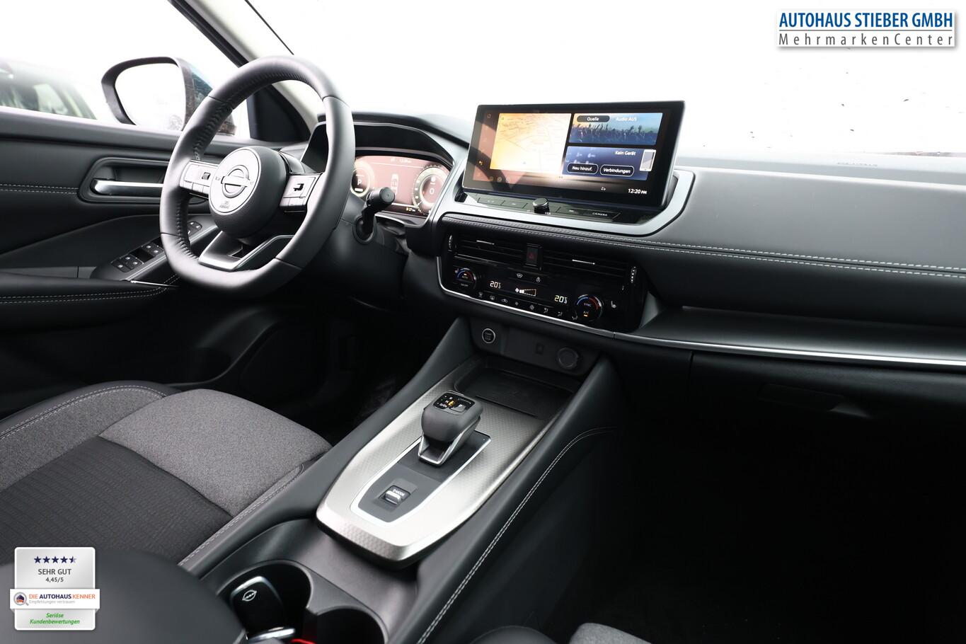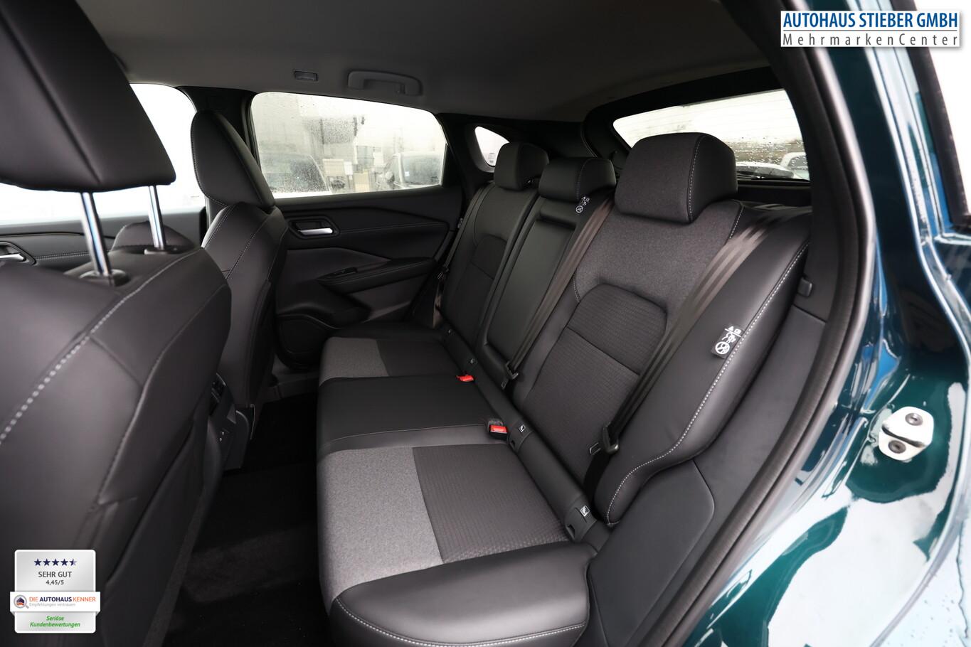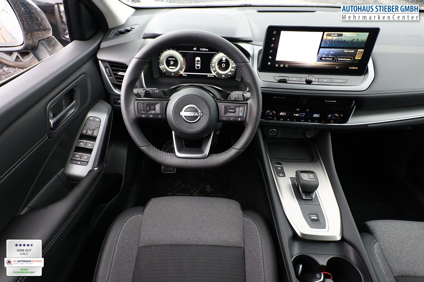 Winter-Paket (Lenkrad heizbar / Sitzheizung vorn / Frontscheibe heizbar), 6 Lautsprecher, Dachträger silber, Fahrassistenz-System: Bremsassistent, Fahrassistenz-System: Spurverlassenswarnung, Fahrassistenz-System: Stau-Pilot, Getränkehalter vorn, Induktionsladeschale für Smartphone, Lenkrad heizbar, LM-Felgen 18 Zoll, Nissan Herstellgarantie 3 Jahre / 100.000km, Radioempfang digital (DAB), Reifen 235/55 R18, Wegfahrsperre, Zentralverriegelung mit Fernbedienung, Ausstattungs-Paket: Nissan Connect Navigationssystem mit Around View Monitor (Smartphone kabellose Schnittstelle (Apple CarPlay & Android Auto) / Sprachbediensystem Spracherkennung / Kamerasystem Around View / Service-System: Google Services / Service-System: Nissan Connect Services / Einparkhilfe vorn und hinten), Schließ-/Startsystem intelligent key (Keyless-Entry / Start-Stop-Knopf), Lenkrad (Leder) mit Multifunktion (Audiobedienung am Lenkrad), Ambiente-Beleuchtung, Dachantenne im Haifischflossen-Design, Elektr. Bremskraftverteilung (EBD), Geschwindigkeits-Begrenzeranlage, Innenspiegel mit Abblendautomatik, Instrumentenanzeige TFT-Farbdisplay (12,3 Zoll), Karosserie: 5-türig, Kofferraumbeleuchtung, Lendenwirbelstütze Sitz vorn links, elektr. verstellbar, Lenksäule (Lenkrad) höhen-/längsverstellbar, Mild-Hybrid 116 kW (Motor 1,3 Ltr. - 116 kW DIG-T MHEV), Mittelarmlehne hinten mit Getränkehalter, Notbrems-Warnblinkautomatik, Parkbremse elektrisch, Schalt-/Wählhebelgriff Leder, Scheibenwischer mit Intervallschaltung, Sitz vorn links höhenverstellbar, Sitz vorn rechts höhenverstellbar, Sonnenblenden mit Spiegel (beleuchtet), Steckdose (12V-Anschluß) in Mittelkonsole, Touchscreen-Farbdisplay (12,3 Zoll), Navigationssystem, USB-Anschluss im Fond, USB-Schnittstelle, Anti-Blockier-System (ABS), Fahrassistenz-System: Moving Object Detection (MOD, Fußgängererkennung und bewegliche Objekterkennung), Antriebsart: Frontantrieb, Elektron. Stabilitäts-Programm (ESP), Getriebe Automatik stufenlos - X-Tronic-CVT, Klimaautomatik 2-Zonen, Airbag Fahrer-/Beifahrerseite, Fensterheber elektrisch vorn + hinten, Isofix-Aufnahmen für Kindersitz, Rücksitz geteilt/klappbar, Seitenairbag, Verglasung hinten abgedunkelt, Fahrmodusschalter, Around View Monitor (360° Umgebungsansicht), Auto-Hold-Funktion, Fahrassistenz-System: Auffahrwarnsystem (Forward Collision Warning, FCW), Fahrassistenz-System: Berganfahr-Assistent, Fahrassistenz-System: Verkehrszeichenerkennung, Geschwindigkeits-Regelanlage (Tempomat) mit Abstandsregelung, Fahrassistenz-System: Sicherheitssystem ERA GLONASS mit automatischem Notruf, Lenkrad mit Schaltwippen/-tasten, Außenspiegel elektr. anklappbar, Außenspiegel elektr. verstell- und heizbar, Automatische Fahrlichtschaltung, Fahrassistenz-System: Fernlichtassistent, Fahrassistenz-System: Totwinkel-Assistent, Heckleuchten LED, Scheibenwischer mit Regensensor, Scheinwerfer LED, Fahrassistenz-System: aktiver Spurhalteassistent, mit korrigierendem Bremseingriff, Fahrassistenz-System: Autonomer Notbrems-Assistent, Fahrassistenz-System: Müdigkeitserkennungs-Sensor, Fahrassistenz-System: Querverkehrs-Assistent Heck (Rear Cross Traffic Alert, RCTA), Reifendruck-Kontrollsystem, Start/Stop-Anlage