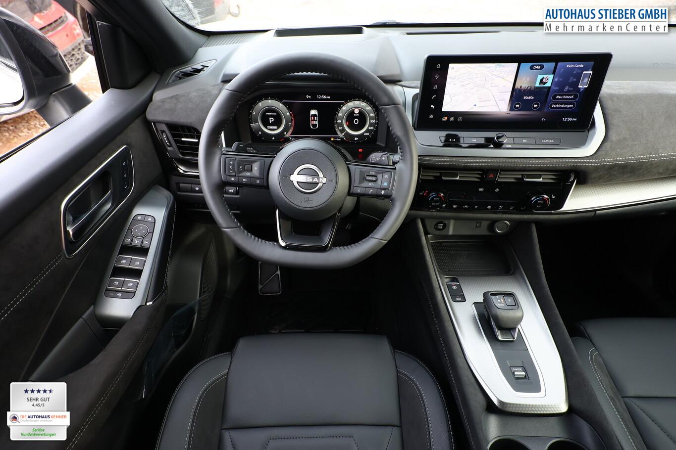 Panorama-Glasdach, Außenspiegel elektr. verstellbar, mit Memoryfunktion, Einparkhilfe vorn und hinten, Fahrassistenz-System: ProPilot mit Navi-Link, Fahrassistenz-System: Rückfahr-Notbremsassistent, Gurtwarnanlage, Head-up-Display, Heckklappe/-Deckel elektr. betätigt (Öffnung, sensorgesteuert), Induktionsladeschale für Smartphone, Innenspiegel rahmenlos mit Abblendautomatik, Komfort-Paket, LM-Felgen 20 Zoll, Navigation in Verbindung mit dem Smartphone (über Apple Carplay / Android Auto /...), Reifen 235/45 R20, Seitenairbag vorn, Sitz vorn links 10-fach verstellbar mit Memory-Funktion, Multimedia-System Nissan Connect (Audiosystem / Smartphone kabellose Schnittstelle (Apple CarPlay & Android Auto) / Service-System: Google Services / Service-System: Nissan Connect Services), Schließ-/Startsystem intelligent key (Keyless-Entry / Start-Stop-Knopf), Lenkrad (Leder) mit Multifunktion (Audiobedienung am Lenkrad), Winter-Paket (Lenkrad heizbar / Sitzheizung vorn / Frontscheibe heizbar), Ambiente-Beleuchtung, Dachantenne im Haifischflossen-Design, Elektr. Bremskraftverteilung (EBD), Geschwindigkeits-Begrenzeranlage, Instrumentenanzeige TFT-Farbdisplay (12,3 Zoll), Karosserie: 5-türig, Lendenwirbelstütze Sitz vorn links, elektr. verstellbar, Mild-Hybrid 116 kW (Motor 1,3 Ltr. - 116 kW DIG-T MHEV), Mittelarmlehne hinten mit Getränkehalter, Otto-Partikelfilter (OPF), Parkbremse elektrisch, Schalt-/Wählhebelgriff Leder, Sitz vorn links höhenverstellbar, Sitz vorn rechts höhenverstellbar, Sonnenblenden mit Spiegel (beleuchtet), Touchscreen-Farbdisplay (12,3 Zoll), USB-Anschluss im Fond, USB-Schnittstelle, Anti-Blockier-System (ABS), Antriebsart: Frontantrieb, Elektron. Stabilitäts-Programm (ESP), Getriebe Automatik stufenlos - X-Tronic-CVT, Klimaautomatik 2-Zonen, Airbag Fahrer-/Beifahrerseite, Fensterheber elektrisch vorn + hinten, Kopf-Airbag-System, Rücksitz geteilt/klappbar, Seitenairbag vorn mitte (Center-Airbag), Sitzbezug / Polsterung: Leder / Alcantara, Verglasung hinten abgedunkelt, Fahrmodusschalter, Dachreling schwarz, Around View Monitor (360° Umgebungsansicht), Auto-Hold-Funktion, Fahrassistenz-System: Auffahrwarnsystem (Forward Collision Warning, FCW), Fahrassistenz-System: Berganfahr-Assistent, Fahrassistenz-System: Verkehrszeichenerkennung, Geschwindigkeits-Regelanlage (Tempomat) mit Abstandsregelung, Fahrassistenz-System: Sicherheitssystem ERA GLONASS mit automatischem Notruf, Außenspiegel elektr. anklappbar, Außenspiegel elektr. verstell- und heizbar, Automatische Fahrlichtschaltung, Fahrassistenz-System: Adaptiver Fernlichtassistent, Fahrassistenz-System: Totwinkel-Assistent, Heckleuchten LED (Super rot), Scheibenwischer mit Regensensor, Scheinwerfer Voll-LED, Tagfahrlicht LED, Fahrassistenz-System: aktiver Spurhalteassistent, mit korrigierendem Bremseingriff, Fahrassistenz-System: Autonomer Notbrems-Assistent, Fahrassistenz-System: Müdigkeitserkennungs-Sensor, Fahrassistenz-System: Querverkehrs-Assistent Heck (Rear Cross Traffic Alert, RCTA), Diebstahl-Warnanlage