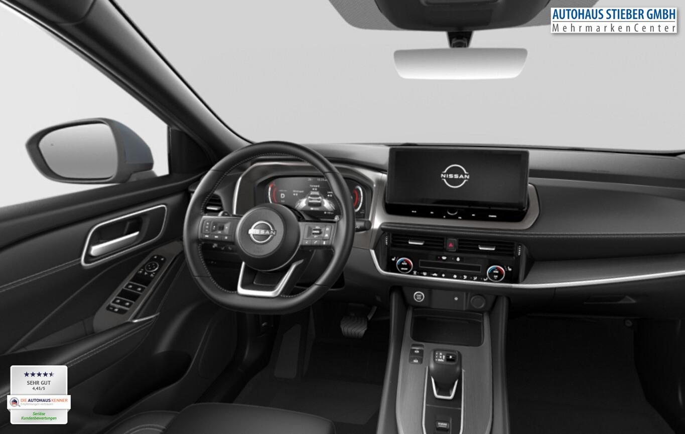 Design-Paket (Dachreling silber / Panorama-Glasdach), Fahrassistenz-System: ProPilot mit Navi-Link, Gurtwarnanlage, Head-Up-Display, Innenspiegel rahmenlos mit Abblendautomatik, Kopfairbag vorn, Lendenwirbelstützen Sitze vorn, LM-Felgen 19 Zoll, Navigation in Verbindung mit dem Smartphone (über Apple Carplay / Android Auto /...), Reifen 235/50 R19, Schadstoffarm nach Abgasnorm Euro 6e (EU6 EA), Seitenairbag vorn, Sitz vorn links 8-fach elektr. verstellbar mit Memory-Funktion, Smartphone kabellose Schnittstelle (Apple CarPlay & Android Auto), Business-Paket (Induktionsladeschale für Smartphone / Heckklappe/-Deckel elektr. betätigt (Öffnung, sensorgesteuert)), Schließ-/Startsystem intelligent key (Keyless-Entry / Start-Stop-Knopf), Lenkrad (Leder) mit Multifunktion (Audiobedienung am Lenkrad), Winter-Paket (Lenkrad heizbar / Sitzheizung vorn / Frontscheibe heizbar), Ambiente-Beleuchtung, Dachantenne im Haifischflossen-Design, Dachhimmel schwarz, Elektr. Bremskraftverteilung (EBD), Gepäck-/Laderaum-Unterteilung (Flexi-Board), Geschwindigkeits-Begrenzeranlage, Instrumentenanzeige TFT-Farbdisplay (12,3 Zoll), Karosserie: 5-türig, Mild-Hybrid 116 kW (Motor 1,3 Ltr. - 116 kW DIG-T MHEV), Mittelarmlehne hinten mit Getränkehalter, Otto-Partikelfilter (OPF), Parkbremse elektrisch, Schalt-/Wählhebelgriff Leder, Sitz vorn links höhenverstellbar, Sitz vorn rechts höhenverstellbar, Sonnenblenden mit Spiegel (beleuchtet), Touchscreen-Farbdisplay (12,3 Zoll), USB-Anschluss im Fond, Anti-Blockier-System (ABS), Fahrassistenz-System: Moving Object Detection (MOD, Fußgängererkennung und bewegliche Objekterkennung), Antriebsart: Frontantrieb, Elektron. Stabilitäts-Programm (ESP), Getriebe Automatik stufenlos - X-Tronic-CVT, Klimaautomatik 2-Zonen, Airbag Fahrer-/Beifahrerseite, Fensterheber elektrisch vorn + hinten, Rücksitz geteilt/klappbar, Sitzbezug / Polsterung: Kunstleder, Verglasung hinten abgedunkelt, Fahrmodusschalter, Around View Monitor (360° Umgebungsansicht), Auto-Hold-Funktion, Fahrassistenz-System: Auffahrwarnsystem (Forward Collision Warning, FCW), Fahrassistenz-System: Berganfahr-Assistent, Fahrassistenz-System: Verkehrszeichenerkennung, Geschwindigkeits-Regelanlage (Tempomat) mit Abstandsregelung, Fahrassistenz-System: Sicherheitssystem ERA GLONASS mit automatischem Notruf, Außenspiegel elektr. anklappbar, Außenspiegel elektr. verstell- und heizbar, Automatische Fahrlichtschaltung, Fahrassistenz-System: Adaptiver Fernlichtassistent, Fahrassistenz-System: Totwinkel-Assistent, Heckleuchten LED (Super rot), Scheibenwischer mit Regensensor, Scheinwerfer Voll-LED, Tagfahrlicht LED, Fahrassistenz-System: aktiver Spurhalteassistent, mit korrigierendem Bremseingriff, Fahrassistenz-System: Autonomer Notbrems-Assistent, Fahrassistenz-System: Müdigkeitserkennungs-Sensor, Fahrassistenz-System: Querverkehrs-Assistent Heck (Rear Cross Traffic Alert, RCTA), Diebstahl-Warnanlage