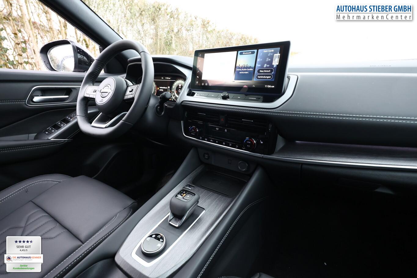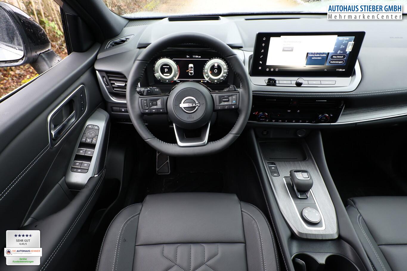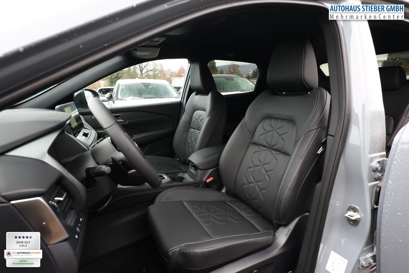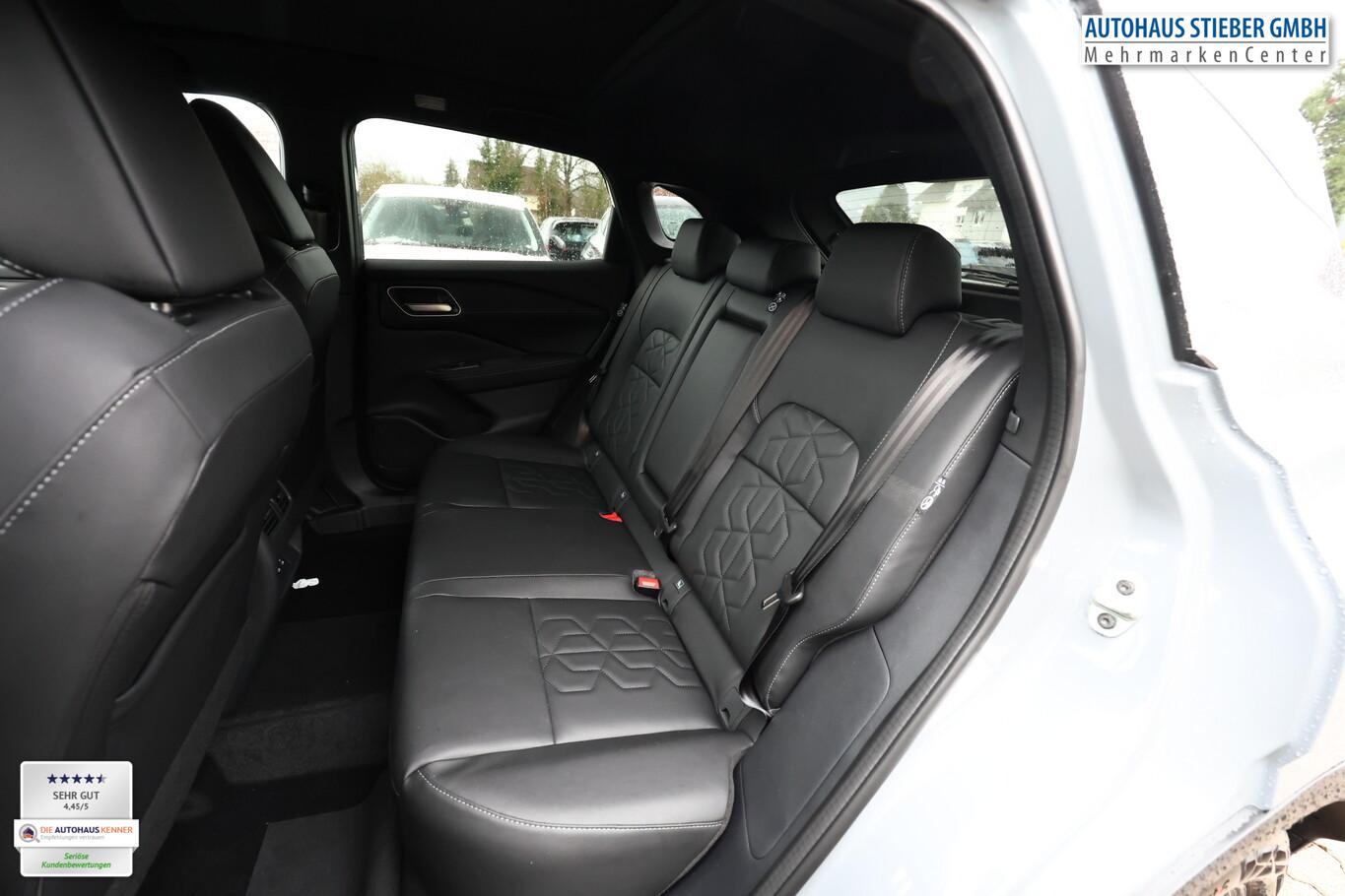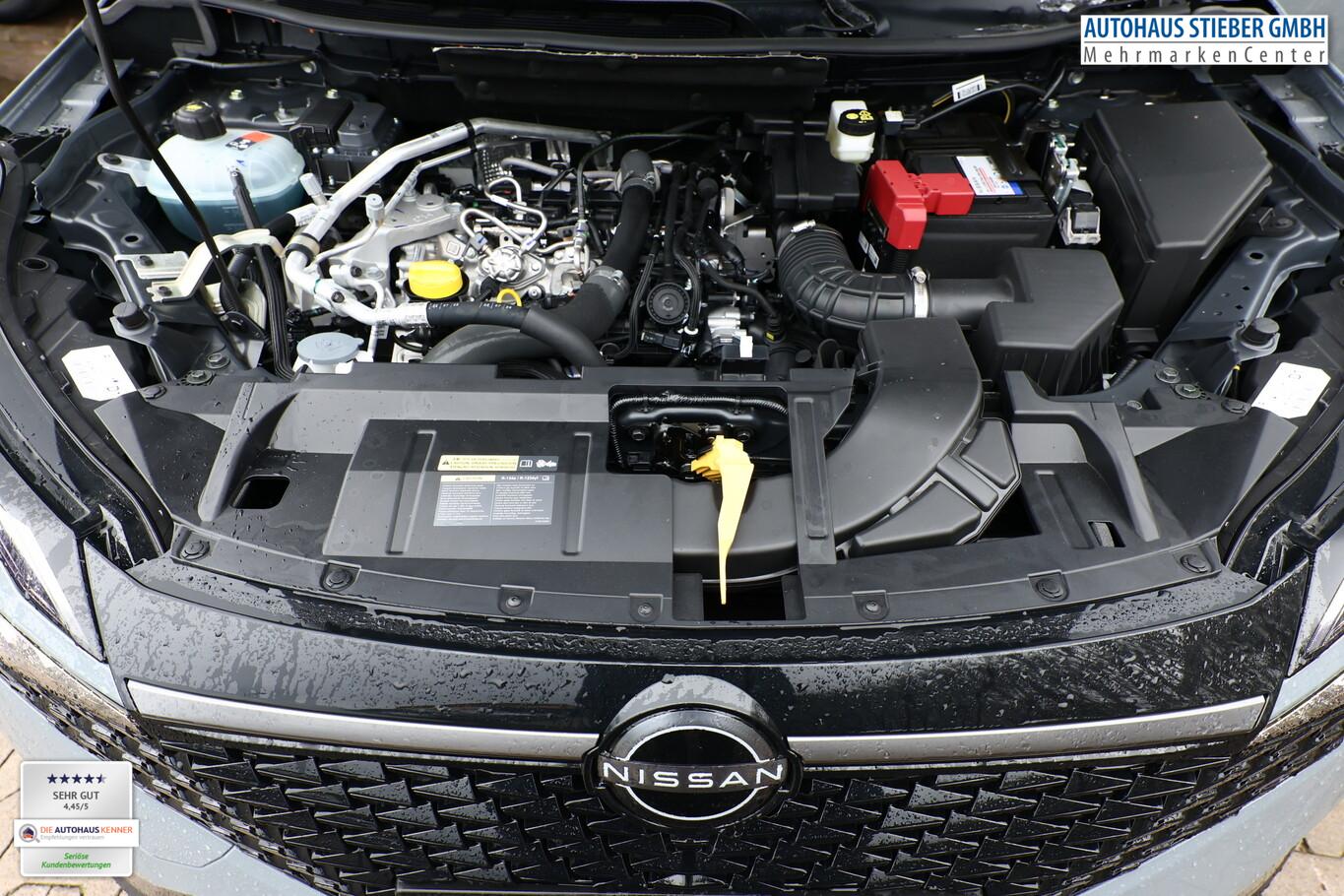 Panorama-Glasdach, Bluetooth-Schnittstelle, Dachreling, Einparkhilfe vorne und hinten, Fahrassistenz-System: Intelligentes Notbremssystem mit Fußgänger- und Radfahrererkennung, Freisprecheinrichtung Bluetooth, Innenspiegel frameless mit Abblendautomatik, LM-Felgen 19 Zoll, Radioempfang digital (DAB), Reifen 235/50 R19, Sitzpolsterung in Kunstleder, Schwarz, Smartphone kabellose Schnittstelle (Apple CarPlay & Android Auto), Business-Paket (Induktionsladeschale für Smartphone / Heckklappe/-Deckel elektr. betätigt (Öffnung, sensorgesteuert)), Komfort-Paket (1) (Außenspiegel elektr. verstellbar, mit Memoryfunktion rechts / Lendenwirbelstütze Sitz vorn rechts / Sitz vorn links elektr. verstellbar (mit Memory) / Head-up-Display / Heckklappe/-Deckel elektr. betätigt (Öffnung, sensorgesteuert) / Außenspiegel elektr. verstellbar, mit Memoryfunktion links / Außenspiegel mit autom. Absenkfunktion), Schließ-/Startsystem intelligent key (Keyless-Entry / Start-Stop-Knopf), Lenkrad (Leder) mit Multifunktion (Audiobedienung am Lenkrad), Winter-Paket (Lenkrad heizbar / Sitzheizung vorn / Frontscheibe heizbar), 3. Bremsleuchte, Ambiente-Beleuchtung, Dachantenne im Haifischflossen-Design, Geschwindigkeits-Begrenzeranlage, Innenspiegel mit Abblendautomatik, Instrumentenanzeige TFT-Farbdisplay (12,3 Zoll), Karosserie: 5-türig, Lendenwirbelstütze Sitz vorn links, elektr. verstellbar, Mild-Hybrid 116 kW (Motor 1,3 Ltr. - 116 kW DIG-T MHEV), Mittelarmlehne hinten mit Getränkehalter, Notbrems-Warnblinkautomatik, Parkbremse elektrisch, Radstand 2666 mm, Schalt-/Wählhebelgriff Leder, Sitz vorn links höhenverstellbar, Sitz vorn rechts höhenverstellbar, Sonnenblenden mit Spiegel (beleuchtet), Touchscreen-Farbdisplay (12,3 Zoll), Navigationssystem, USB-Anschluss im Fond, USB-Schnittstelle, Anti-Blockier-System (ABS), Antriebsart: Allradantrieb, Elektron. Stabilitäts-Programm (ESP), Getriebe Automatik stufenlos - X-Tronic-CVT, Klimaautomatik 2-Zonen, Airbag Fahrer-/Beifahrerseite, Kopf-Airbag-System, Rücksitz geteilt/klappbar, Seitenairbag vorn mitte (Center-Airbag), Fahrmodusschalter, Around View Monitor (360° Umgebungsansicht), Auto-Hold-Funktion, Fahrassistenz-System: Auffahrwarnsystem (Forward Collision Warning, FCW), Fahrassistenz-System: Berganfahr-Assistent, Fahrassistenz-System: Verkehrszeichenerkennung, Geschwindigkeits-Regelanlage (Tempomat) mit Abstandsregelung, Rückfahrkamera, Außenspiegel elektr. anklappbar, Außenspiegel elektr. verstell- und heizbar, Fahrassistenz-System: Adaptiver Fernlichtassistent, Fahrassistenz-System: Totwinkel-Assistent, Heckleuchten LED (Super rot), Scheibenwischer mit Regensensor, Scheinwerfer Voll-LED, Tagfahrlicht LED, Fahrassistenz-System: aktiver Spurhalteassistent, mit korrigierendem Bremseingriff, Fahrassistenz-System: Autonomer Notbrems-Assistent, Fahrassistenz-System: Müdigkeitserkennungs-Sensor, Diebstahl-Warnanlage