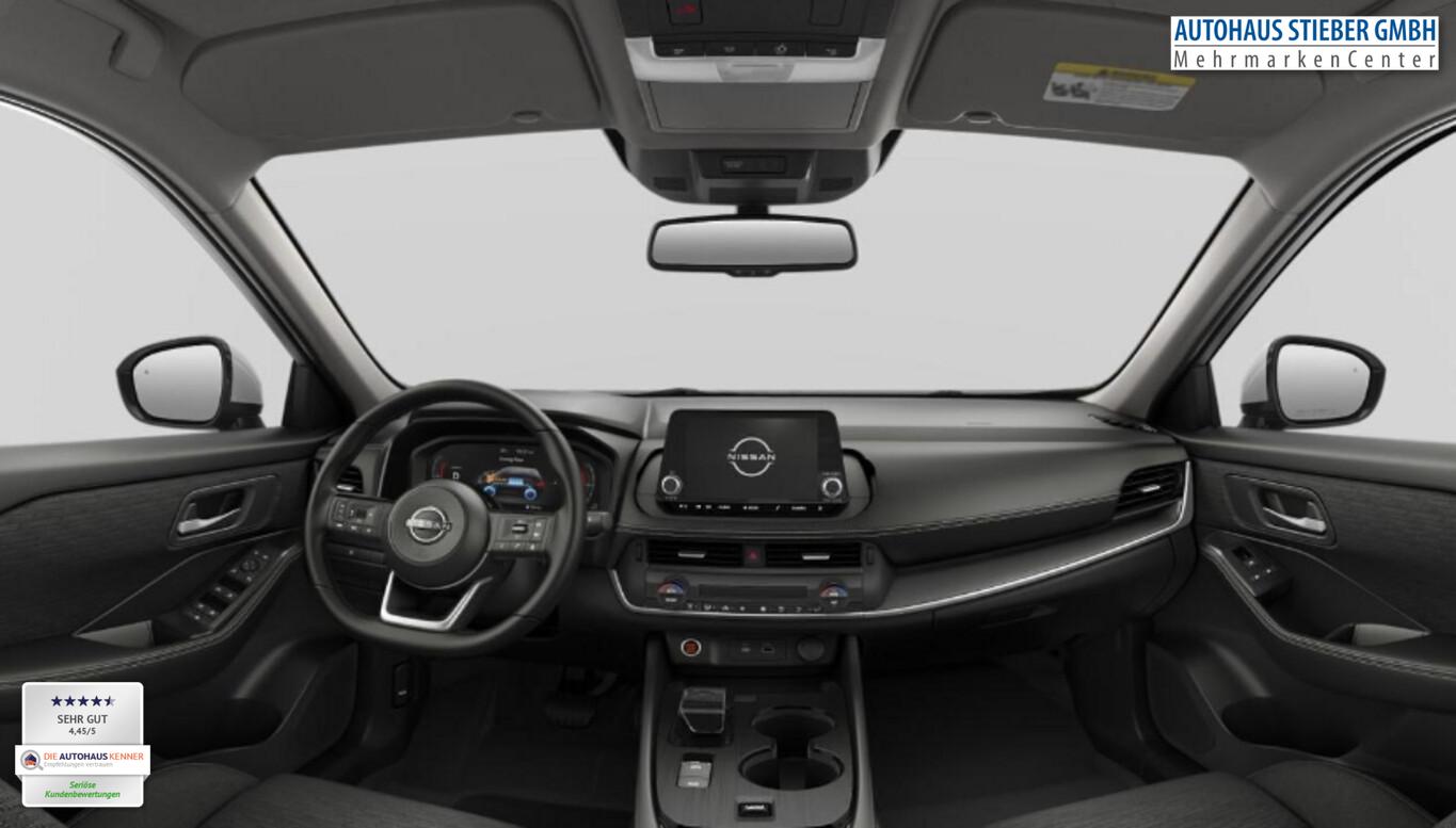 Familien-Paket, Frontscheibe heizbar, Innenraumfilter: Pollenfilter, Klimaautomatik 3-Zonen, Lenkrad heizbar, LM-Felgen 18 Zoll, Navigation in Verbindung mit dem Smartphone (über Apple Carplay / Android Auto /...), Sitzheizung hinten (2.Sitzreihe), Sitzheizung vorn, Sommerreifen 235/60/R18, Sonnenschutzrollo an Türscheiben hinten, Zentralverriegelung, Ausstattungs-Paket: Nissan Connect (6 Lautsprecher / Radioempfang digital (DAB) / Touchscreen-Farbdisplay (8,0 Zoll) in Mittelkonsole / Bluetooth-Schnittstelle / Freisprechanlage Bluetooth / Smartphone Schnittstelle (Apple CarPlay & Android Auto) / Service-System: Amazon Alexa / Service-System: Google Services / Service-System: Nissan Connect Services), Motor 1,5 Ltr. - 120 kW VC-T MHEV (Mild-Hybrid 120 kW (Motor 1,5 Ltr. - 120 kW VC-T MHEV)), Induktionsladeschale für Smartphone, Innenspiegel mit Abblendautomatik, Instrumentenanzeige TFT-Farbdisplay (12,3 Zoll), Karosserie: 5-türig, Lendenwirbelstütze Sitz vorn links, elektr. verstellbar, Notbrems-Warnblinkautomatik, Otto-Partikelfilter (OPF), Parkbremse elektrisch, Radstand 2705 mm, Sitz vorn links höhenverstellbar, Sitzbezug / Polsterung: Stoff, USB-Anschluss im Fond, Anti-Blockier-System (ABS), Antriebsart: Frontantrieb, Elektron. Stabilitäts-Programm (ESP), Getriebe Automatik stufenlos - X-Tronic-CVT, Airbag Fahrer-/Beifahrerseite, Isofix-Aufnahmen für Kindersitz, Keyless-Entry, Rücksitz geteilt/klappbar, Schließ-/Startsystem intelligent key, Seitenairbag vorn mitte (Center-Airbag), Fahrmodusschalter, Auto-Hold-Funktion, Fahrassistenz-System: Auffahrwarnsystem (Forward Collision Warning, FCW), Fahrassistenz-System: Verkehrszeichenerkennung, Geschwindigkeits-Regelanlage (Tempomat) mit Abstandsregelung, Rückfahrkamera, Fahrassistenz-System: Sicherheitssystem ERA GLONASS mit automatischem Notruf, Lenkrad (Leder) mit Multifunktion, Außenspiegel elektr. anklappbar, Außenspiegel elektr. verstell- und heizbar, Fahrassistenz-System: Fernlichtassistent, Fahrassistenz-System: Totwinkel-Assistent, Heckleuchten LED, Licht- und Regensensor, Scheinwerfer LED, Tagfahrlicht LED, Einparkhilfe hinten, Einparkhilfe vorn, Fahrassistenz-System: aktiver Spurhalteassistent, mit korrigierendem Bremseingriff, Fahrassistenz-System: Autonomer Notbrems-Assistent, Fahrassistenz-System: Müdigkeitserkennungs-Sensor, Fahrassistenz-System: Querverkehrs-Assistent Heck (Rear Cross Traffic Alert, RCTA), Reifendruck-Kontrollsystem