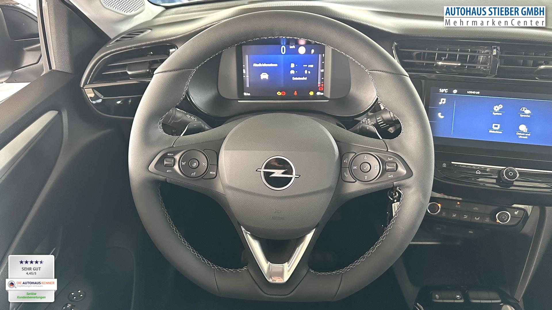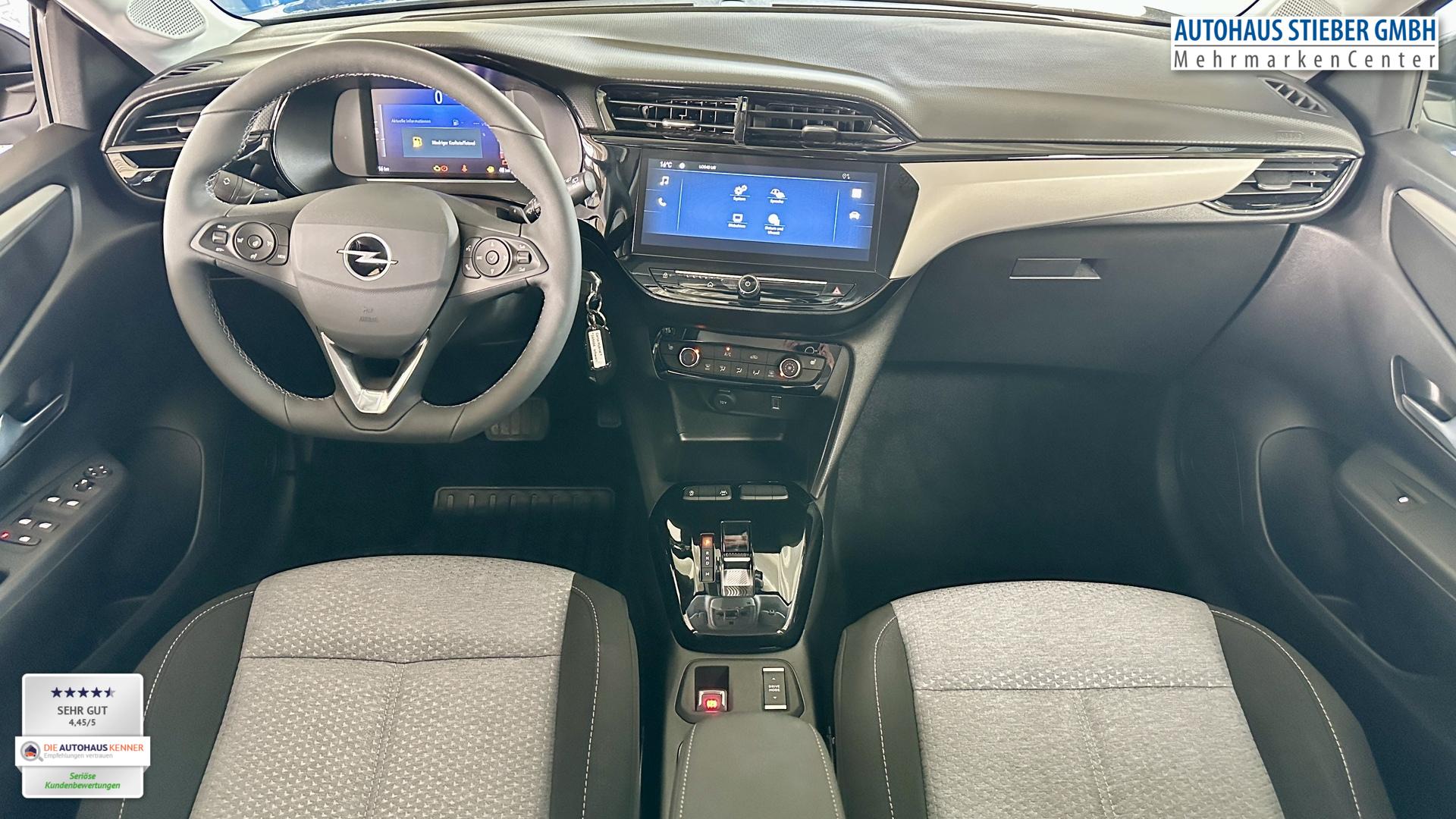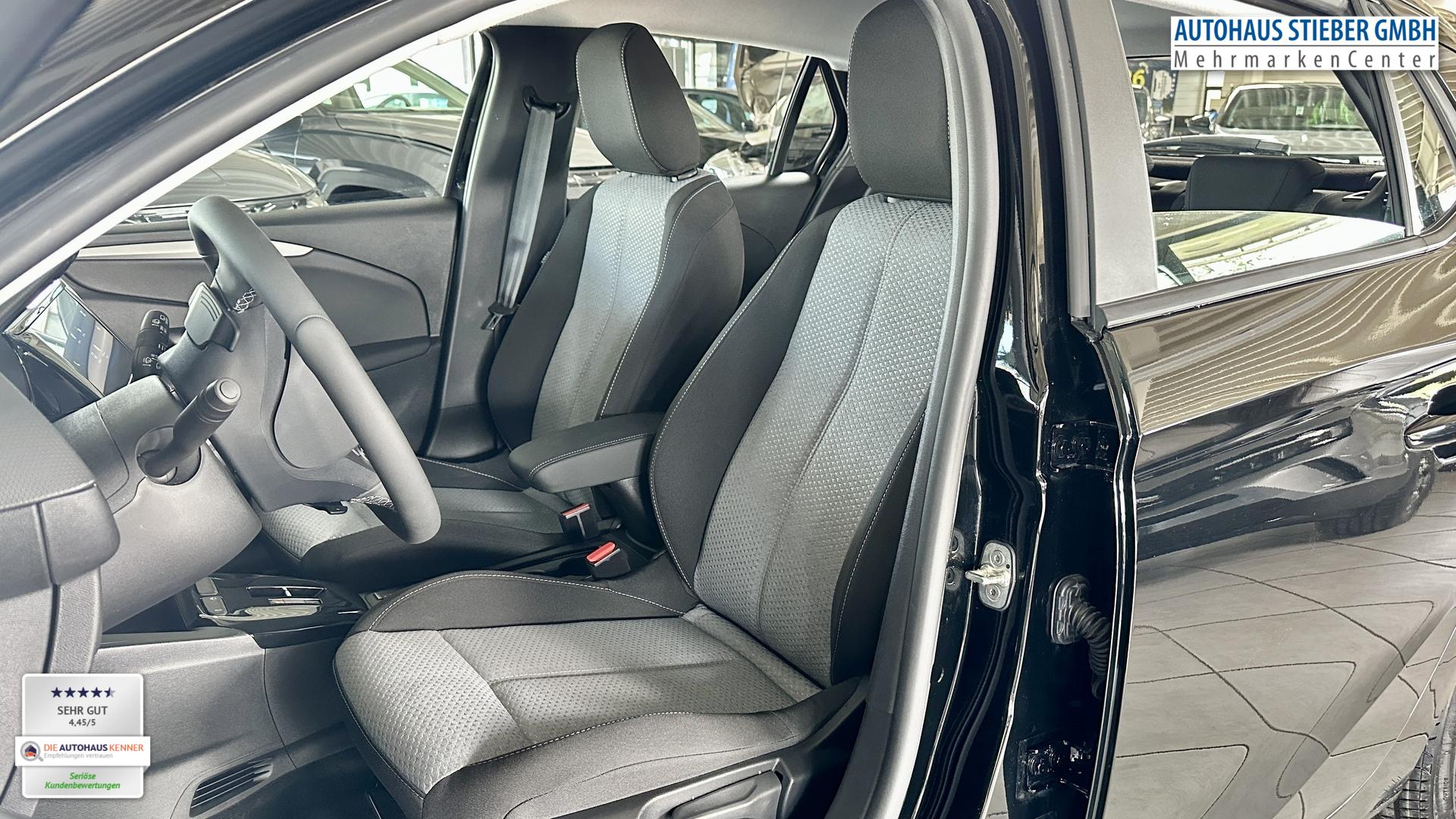Fahrzeughalter: 1Komfort-Paket (Fahrzeugschlüssel (2) beide klappbar / Komfortsitze vorn / Lenkrad heizbar / Mittelarmlehne vorn mit Ablagefach / Sitzheizung vorn / Lenkrad (Leder, vegan) mit Multifunktion / Lenkrad (Sport/Leder - 3-Speichen, unten abgeflacht) mit Multifunktion), Rückfahrkamera mit 180° Umgebungsansicht (Parkpilotsystem hinten), Sicht-Paket (Innenspiegel mit Abblendautomatik / Einschaltautomatik für Fahrlicht / Scheibenwischer mit Regensensor), 6 Lautsprecher, Audiosystem Infotainmentsystem mit 10 Zoll Farb-Touchscreen, Außenspiegel elektr. verstell-, heiz- und anklappbar, Außenspiegel in Wagenfarbe, Beifahrersitz verstellbar (6-fach), Einparkhilfe vorn und hinten, Fahrassistenz-System: Notbremsassistent, Fahrassistenz-System: Totwinkel-Assistent, Fahrersitz verstellbar (6-fach), Fensterzierleiste Schwarz, Freisprecheinrichtung Bluetooth, Getränkehalter vorn (2 stück) und hinten (1 stück), Kombiinstrument digital (7 Zoll), Reifen 195/55 R16, Schadstoffarm nach Abgasnorm Euro 6e (EU6EA), Start & Stop System, Tech-Paket, USB-Schnittstelle, Geschwindigkeits-Regelanlage (Tempomat) inkl. Geschwindigkeits-Begrenzeranlage (Geschwindigkeits-Regelanlage (Tempomat)), DAB-Tuner (Radioempfang digital), Dach Wagenfarbe, Edition, Karosserie: 5-türig, Leseleuchten vorn (2), Mild-Hybrid 81 kW (Motor 1,2 Ltr. - 74 kW), Opel Connect, Otto-Partikelfilter (OPF), Sitzbezug / Polsterung: Stoff, Stahlfelgen 6,5x16, Anti-Blockier-System (ABS), Elektron. Stabilitäts-Programm Plus (ESP), Getriebe Automatik - Doppelkupplungsgetriebe (6-Stufen, Hybrid), Klimaanlage, Airbag Fahrer-/Beifahrerseite, Fensterheber elektrisch vorn + hinten, Fensterheber vorn elektr. mit Einklemmschutz, Fahrassistenz-System: Verkehrszeichenerkennung, Scheinwerfer LED, Fahrassistenz-System: Müdigkeitserkennungs-Sensor, Fahrassistenz-System: Spurhalteassistent