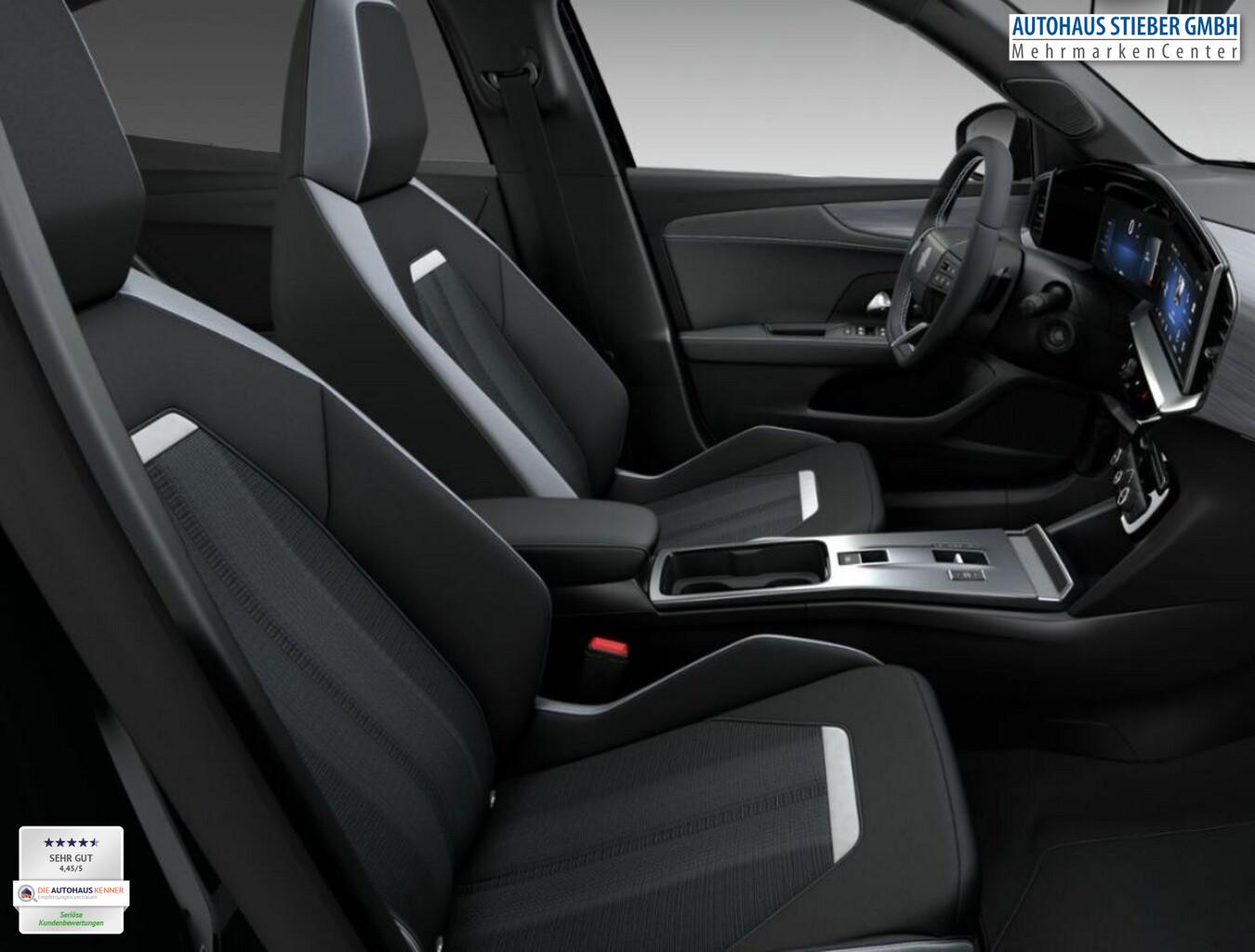 10"-Touchscreen, 2x USB-Anschluss (Typ A) hinten, Airbag Fahrer-/Beifahrerseite, Außenspiegel elektr. verstell- und heizbar, elektr. anklappbar, Einschaltautomatik für Fahrlicht, Fahrassistenz-System: Autonomer Notbremsassistent, Fahrassistenz-System: Berganfahrassistent, Fahrassistenz-System: Spurhalteassistent, Fahrersitz 6-fach manuell einstellbar, Fensterheber elektr. vorn + hinten, Geschwindigkeits-Begrenzeranlage, Geschwindigkeits-Regelanlage (Tempomat), Isofix-Aufnahmen für Kindersitz, Kombiinstrument digital (10"), LED-Ambientebeleuchtung in Ablagefächern der Türen, vorn, Lenksäule, höhen- und neigungseinstellbar, Leseleuchten vorn und hinten, Mittelarmlehne vorn, Navigation in Verbindung mit dem Smartphone (über Apple Carplay / Android Auto /...), Notrufsystem, Parkpilotsystem vorn, Reifendruckkontrollsystem, Rücksitzlehne geteilt/umklappbar (60:40), Schlüsselloses Startsystem "Keyless Open & Start", Servolenkung (elektrisch), Sitz vorn links höhenverstellbar, Sommerreifen 215/60 R17, Sonnenblenden mit Spiegel, Start/Stopp System, Steckdose (12V-Anschluss) vorn, Taschen an Vordersitzrücken, Tech-Paket 2, Türeinsätze aus Kunstleder, USB-Anschluss (Typ C), Zentralverriegelung mit Fernbedienung, Audiosystem Multimedia (6 Lautsprecher / Smartphone Schnittstelle (Apple CarPlay & Android Auto)), Black-Paket (Dach, Design-Ausführung (schwarz) / Kühlergrill, Opel Vizor, Rahmen in Hochglanz-Schwarz / Schriftzug Heckklappe Schwarz, Hochglanz), Parkpilotsystem hinten (Rückfahrkamera mit 180° Umgebungsansicht), Bluetooth Audio-Streaming, DAB-Tuner (Radioempfang digital), Dachhimmel schwarz, Dachspoiler, Fahrzeugschlüssel (2) beide klappbar, Feststellbremse elektrisch, Karosserie: 5-türig, Mild-Hybrid 107 kW (Motor 1,2 Ltr. - 100 kW), Modellpflege, Opel Connect, Radstand 2557 mm, Sitz vorn rechts höhenverstellbar, Freisprecheinrichtung Bluetooth, Anti-Blockier-System (ABS), Antriebsart: Frontantrieb, Elektron. Stabilitäts-Programm Plus (ESP), LM-Felgen 6,5x17 (5-Doppelspeichen, Bicolor), Getriebe Automatik - Doppelkupplungsgetriebe (6-Stufen, Hybrid), Klimaautomatik, Kopf-Airbag-System, Seitenairbag vorn, Sitzbezug / Polsterung: Stoff / Ledernachbildung, Wärmeschutzverglasung hinten abgedunkelt (Solar-Protect), Fahrassistenz-System: Verkehrszeichenerkennung, Fahrassistenz-System: Fernlichtassistent, Heckleuchten LED, Scheibenwischer mit Regensensor, Scheinwerfer LED, Tagfahrlicht LED, Fahrassistenz-System: Müdigkeitserkennungs-Sensor