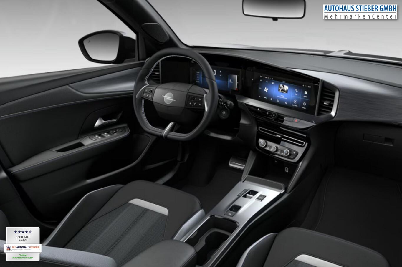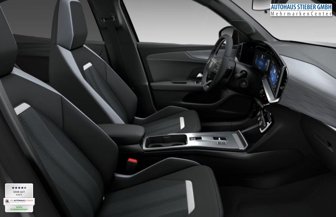 Winter-Paket (Lenkrad heizbar / Sitzheizung vorn), Reifen-Reparaturkit, Ablagetasche an Rückseite der Vordersitzlehnen, Fahrassistenz-System: Automatisches Fernlicht, Fahrassistenz-System: Notbrems-Assistent, Fahrassistenz-System: Spurhalteassistent, Innenspiegel abblendbar, Isofix-Aufnahmen für Kindersitz, Kombiinstrument Digital, Lenkrad (Leder), Lenkrad heizbar, Leseleuchten LED vorn, LM-Felgen 17 Zoll, Multifunktionsanzeige mit Touchscree-Farbdisplay 10 Zoll, Navigation in Verbindung mit dem Smartphone (über Apple Carplay / Android Auto /...), Notrufassistent, Otto-Partikelfilter, Reifen 215/60 R17, Reifendruck Überwachung, Sitz vorn links höhenverstellbar, Sommerreifen, Start-/Stopp System, Zentralverriegelung, Audiosystem Multimedia (6 Lautsprecher / Smartphone Schnittstelle (Apple CarPlay & Android Auto)), Black-Paket (Dach, Design-Ausführung (schwarz) / Kühlergrill, Opel Vizor, Rahmen in Hochglanz-Schwarz / Schriftzug Heckklappe Schwarz, Hochglanz), Parkpilotsystem hinten (Rückfahrkamera mit 180° Umgebungsansicht), DAB-Tuner (Radioempfang digital), Karosserie: 5-türig, Mild-Hybrid 107 kW (Motor 1,2 Ltr. - 100 kW), Opel Connect, Radstand 2557 mm, Freisprecheinrichtung Bluetooth, Anti-Blockier-System (ABS), Antriebsart: Frontantrieb, Elektron. Stabilitäts-Programm Plus (ESP), Getriebe Automatik - Doppelkupplungsgetriebe (6-Stufen, Hybrid), Klimaautomatik, Fahrassistenz-System: Verkehrszeichenerkennung, Heckleuchten LED, Scheibenwischer mit Regensensor, Fahrassistenz-System: Müdigkeitserkennungs-Sensor