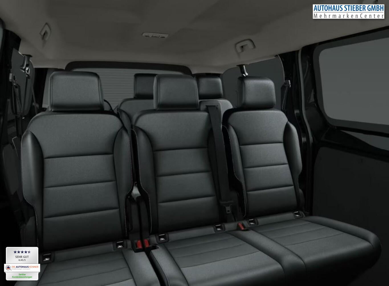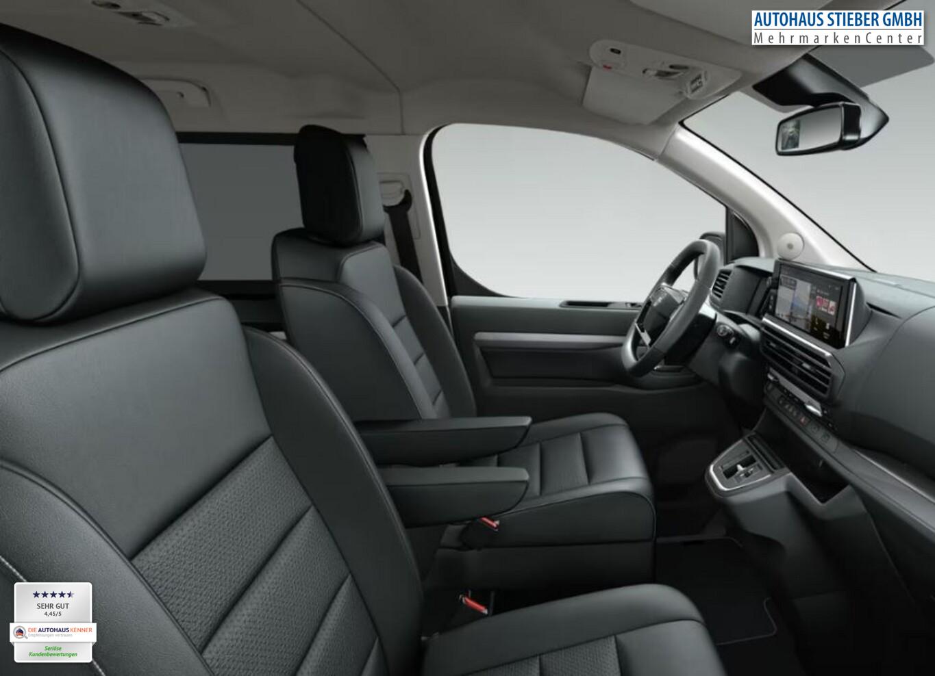 Komfort-Paket (Schließ-/Startsystem Keyless Open / Schiebetür links elektr. betätigt (sensorgesteuert) / Schiebetür rechts elektr. betätigt (sensorgesteuert)), Driver-Paket (Feststellbremse elektrisch / Innenspiegel mit Abblendautomatik / Lenkrad heizbar / Grip-Control / Schließ-/Startsystem Keyless Open), Anhängerkupplung (Kugelkopf abnehmbar) ohne Werkzeug, Sitzheizung vorn (Lenkrad heizbar), Lenkrad (Leder) (Audiobedienung am Lenkrad), 2. Sitzreihe mit Sitzbank geteilt/klappbar (1/3-2/3), 3. Sitzreihe mit Sitzbank geteilt/klappbar (1/3-2/3), Armlehne vorn links und rechts, Audio-Navigationssystem Multimedia Navi Pro inkl. 10"-HD-Touchscreen, Außenspiegel in Wagenfarbe, Bodenbelag: Teppichboden, Fahrassistenz-System: Notbrems-Assistent, Fahrassistenz-System: Totwinkel-Assistent, Geschwindigkeits-Begrenzeranlage, Handschuhfach abschließbar, Heckklappe mit separat zu öffnendem Fenster, Induktionsladeschale für Smartphone, Isofix-Aufnahmen für Kindersitz an Rücksitz, Klapptische in Fahrer- und Beifahrersitzlehne integriert, Klimaanlage im Fond, Klimaautomatik 2-Zonen, Kombiinstrument digital (10"), Lendenwirbelstütze Sitz vorn links, LM-Felgen 17", Nebelscheinwerfer, Parkpilotsystem vorn, Reifen 225/55 R17, Rückfahrkamera mit 180° Umgebungsansicht, Sitz vorn links elektr. verstellbar (6-fach) mit Massagefunktion, Sitz vorn rechts elektr. verstellbar (6-fach) mit Massagefunktion, Sitz vorn rechts umklappbar, Sitzbezug / Polsterung: Leder Claudia, Smartphone-Schnittstelle (Apple CarPlay & Android Auto), Steckdose (12V-Anschluss), Steckdose (230V), Voll-LED-Scheinwerfer, Fahrassistenz-Paket 1 (Frontscheibe wärmeabweisend (Solar-Reflect) / Fahrassistenz-System: Verkehrszeichenerkennung / Fahrassistenz-System: Fernlichtassistent / Fahrassistenz-System: Müdigkeitserkennungs-Sensor / Fahrassistenz-System: Spurhalteassistent), Servolenkung geschwindigkeitsabhängig (Servolenkung), DAB-Tuner (Radioempfang digital), Frontschürze in Wagenfarbe, Heckklappe verglast, Karosserie/Aufbau: Kombi, Karosserievariante: Fahrzeuglänge L3, Motor 2,2 Ltr. - 132 kW Blue-HDI FAP, Radstand 3275 mm, Seitenschutzleisten schwarz, Stoßfänger lackiert, Türgriffe außen Wagenfarbe, Vollverglasung (Seitenfenster in Gepäck-/Laderaum / 3.Sitzreihe), Anti-Blockier-System (ABS), Antriebsart: Frontantrieb, Elektron. Stabilitäts-Programm Plus (ESP), Elektron. Traktionskontrolle, Wegfahrsperre, Getriebe Automatik - mit Start-/Stop (8-Stufen), Airbag Fahrer-/Beifahrerseite, Kopf-Airbag-System, Seitenairbag vorn, Sonnenschutzrollo an Seitenscheiben hinten, Fahrassistenz-System: Berganfahr-Assistent (HSA, Hill Start Assist), Geschwindigkeits-Regelanlage (Tempomat), Außenspiegel elektr. verstell- und heizbar, elektr. anklappbar, Einschaltautomatik für Fahrlicht, Scheibenwischer mit Regensensor, Tagfahrlicht LED, Parkpilotsystem hinten, Reifendruck-Kontrollsystem, Rußpartikelfilter