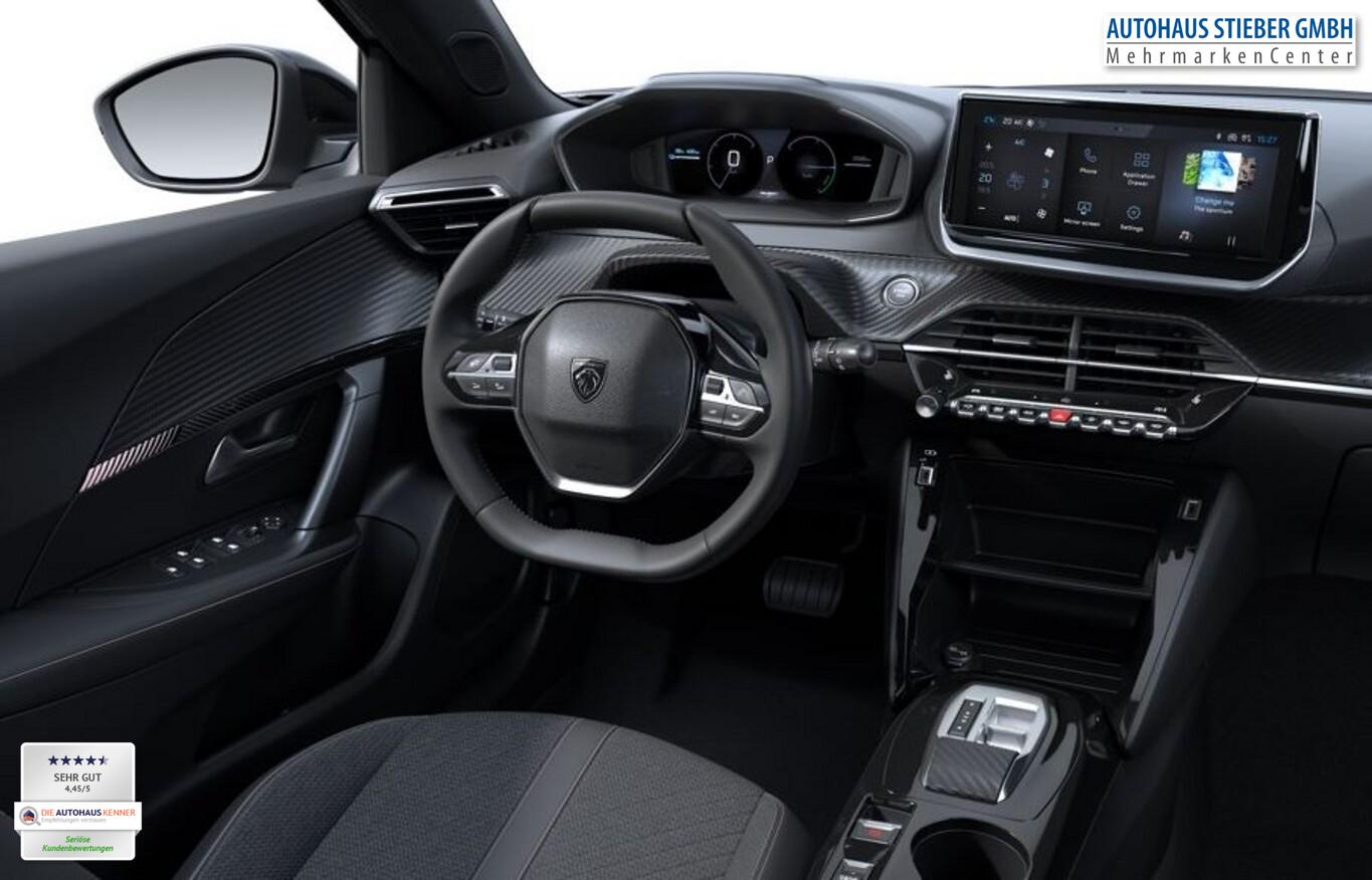Ladevorrichtung On-Board-Lader 11 kW, Dachreling, Reifen-Reparaturkit, 2x USB-Anschluss (Typ C), 6 Lautsprecher, Adaptive Geschwindigkeitsregelanlage (ACC) mit Stop & Go, Außenspiegel mit Umfeldbeleuchtung, Einparkhilfe seitlich, Fahrassistenz-System: Totwinkel-Assistent, Fensterheber elektr. hinten, Freisprecheinrichtung Bluetooth, Gepäckraumbeleuchtung, Kombiinstrument digital (10"), Lenkrad (Leder), Leuchtweitenregulierung, LM-Felgen 17", Modelljahr 2024, Navigation in Verbindung mit dem Smartphone (über Apple Carplay / Android Auto /...), Radioempfang digital (DAB+), Reifen 215/60 R17, Rückfahrkamera mit 360° Umgebungsansicht, Schlüsselloses Startsystem (Keyless Start), Smartphone-Schnittstelle (Apple CarPlay & Android Auto), Sonnenblenden mit Spiegel, Steckdose (12V-Anschluss), USB-Anschluss (Typ A), Wegfahrsperre, Außenspiegel elektr. anklappbar (Außenspiegel anklappbar), Akustischer Fußgängerschutz (Außensound), Außenspiegel mit Abdeckkappen schwarz, Dachhimmel mit LED-Beleuchtung, Elektr. Bremskraftverteilung, Elektromotor 115 kW (cont. 62 kW), Frontscheibe geräuschdämmend, Heckspoiler, Infotainment-System i-Connect, Innenraumfilter: Staub- und Pollenfilter, Innenspiegel mit Abblendautomatik, Karosserie: 5-türig, Kartentasche an Vordersitze, Kindersicherung, manuell, Kopfstützen hinten (3-fach), Ladekabel mit Typ 2-Stecker (Mode 3), Multifunktionsanzeige mit HD Touchscreen-Farbdisplay 10 Zoll, Parkbremse elektrisch, Pyrotechnischer Gurtstraffer, Radstand 2605 mm, Sitze vorn höhenverstellbar, Türgriffe außen Wagenfarbe, Wärmepumpe zur Reichweitenoptimierung, Warnanlage für Sicherheitsgurte, Anti-Blockier-System (ABS), Fahrassistenz-System: Aktiver Notbrems-Assistent (Active Safety Brake), Antischlupfregelung (ASR), Antriebsart: Frontantrieb, Elektron. Stabilitäts-Programm (ESP, Bosch), Getriebe für Elektrofahrzeug, Klimaautomatik, Airbag Beifahrerseite abschaltbar, Airbag Fahrer-/Beifahrerseite, Fensterheber elektr. vorn, links mit Impulsgeber, Isofix-Aufnahmen für Kindersitz, Kopf-Airbag-System, Kopf-Airbag-System hinten, Mittelarmlehne vorn, Seitenairbag vorn, Seitenscheiben hinten und Heckscheibe dunkel getönt, Sitzbezug / Polsterung: Stoff/Kunstleder, Sitzheizung vorn, Verzurrösen Laderaum, Zentralverriegelung inkl. Türverriegelung automatisch, Zentralverriegelung mit Fernbedienung, Bordcomputer, Fahrmodusschalter, Fahrassistenz-System: Berganfahrhilfe, Fahrassistenz-System: Verkehrszeichenerkennung, Peugeot Connect-Box / SOS-Taste (Notruf für Lokalisierung Fahrzeug) Version 3S, Lenkrad mit Multifunktion, Servolenkung elektrisch, Außenspiegel elektr. verstell- und heizbar, beide, Einschaltautomatik für Fahrlicht, Scheibenwischer mit Regensensor, Scheinwerfer Eco-LED, Tagfahrlicht LED, Einparkhilfe vorn und hinten, Fahrassistenz-System: aktiver Spurassistent (Lenkunterstützung), Fahrassistenz-System: Müdigkeitserkennungs-Sensor, Reifendruck-Kontrollsystem