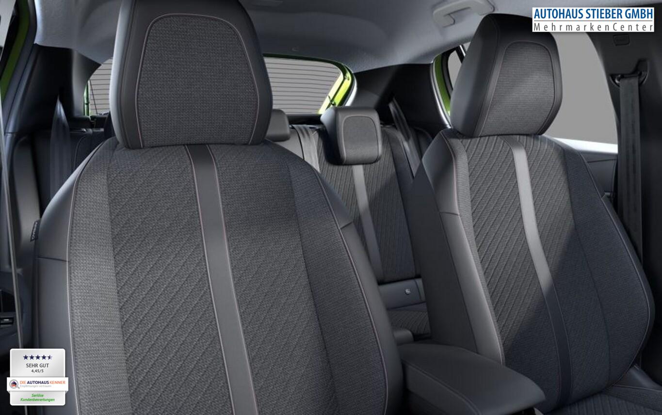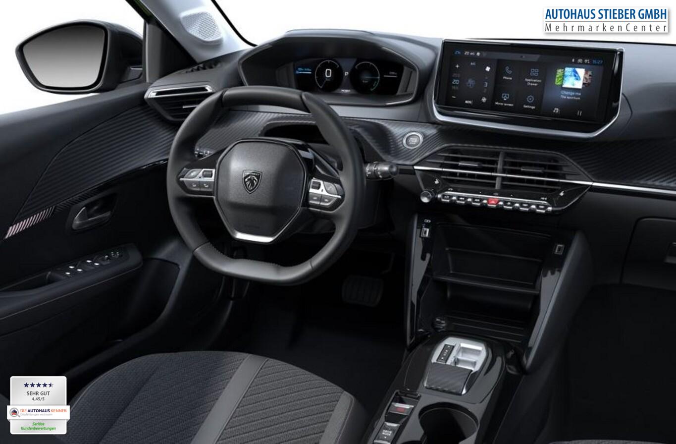 Zugangs-Paket (Induktionsladeschale für Smartphone / Zentralverriegelung / Startanlage Keyless System), Ladevorrichtung On-Board-Lader 11 kW, Reifen-Reparaturkit, 10"-HD-Touchscreen, 2x USB-Anschlus (Typ C), 3 Kopfstützen hinten, 6 Lautsprecher, Außenspiegel elektr. anklappbar, Fensterheber elektr. hinten, Freisprecheinrichtung Bluetooth, Gepäckraumbeleuchtung, Innenspiegel mit Abblendautomatik, Kindersicherung manuell, Kombiinstrument digital (10"), Kopf-Airbag-System vorn, Leseleuchten vorn, Leuchtweitenregulierung, LM-Felgen 16", Modelljahr 2025, Navigation in Verbindung mit dem Smartphone (über Apple Carplay / Android Auto /...), Reifen 195/55 R16, Scheibenwaschdüsen heizbar, Smartphone-Schnittstelle (Apple CarPlay & Android Auto), Sonnenblenden mit Spiegel, USB-Anschluss (Typ A), Wegfahrsperre (elektronisch), Komfort-Paket (Klimaautomatik / Scheibenwischer mit Regensensor), Radioempfang digital (DAB+) (Radioempfang digital), Fensterheber elektr. vorn, rechts mit Impulsgeber (Fensterheber elektrisch vorn rechts), Sitzbezug / Polsterung: Stoff/Kunstleder (Innenausstattung: Ziernähte farbig), Zentralverriegelung mit Fernbedienung (Fernbedienung für Zentralverriegelung), Außenspiegel elektr. verstell- und heizbar, beide (Außenspiegel elektr. verstell- und heizbar, links / Außenspiegel elektr. verstell- und heizbar, rechts), Akustischer Fußgängerschutz (Außensound), Außenspiegel mit Abdeckkappen schwarz, Elektr. Bremskraftverteilung, Elektrofahrzeug, Elektromotor 115 kW (cont. 62 kW), Frontscheibe geräuschdämmend, Heckspoiler, Infotainment-System i-Connect, Innenraumfilter: Staub- und Pollenfilter, Karosserie: 5-türig, Kartentasche an Vordersitze, Ladekabel mit Typ 2-Stecker (Mode 3), Parkbremse elektrisch, Pyrotechnischer Gurtstraffer, Sitz vorn links höhenverstellbar, Steckdose (12V-Anschluß) in Mittelkonsole, Türgriffe außen Wagenfarbe, Wärmepumpe zur Reichweitenoptimierung, Warnanlage für Sicherheitsgurte, Anti-Blockier-System (ABS), Fahrassistenz-System: Aktiver Notbrems-Assistent (Active Safety Brake), Antischlupfregelung (ASR), Elektron. Stabilitäts-Programm (ESP, Bosch), Getriebe für Elektrofahrzeug, Airbag Beifahrerseite abschaltbar, Airbag Fahrer-/Beifahrerseite, Fensterheber elektrisch vorn links, sequentiell, Isofix-Aufnahmen für Kindersitz, Kopf-Airbag-System hinten, Mittelarmlehne vorn, Seitenairbag vorn, Seitenscheiben hinten und Heckscheibe dunkel getönt, Sitzheizung vorn, Zentralverriegelung inkl. Türverriegelung automatisch, Bordcomputer, Fahrmodusschalter, Fahrassistenz-System: Berganfahrhilfe, Fahrassistenz-System: Verkehrszeichenerkennung, Geschwindigkeits-Regelanlage (Tempomat) inkl. Geschwindigkeits-Begrenzeranlage, Peugeot Connect-Box / SOS-Taste (Notruf für Lokalisierung Fahrzeug), Lenkrad (Leder), Lenkrad mit Multifunktion, Servolenkung elektrisch, Einschaltautomatik für Fahrlicht, Scheinwerfer Eco-LED, Tagfahrlicht LED, Einparkhilfe vorn und hinten, Fahrassistenz-System: aktiver Spurassistent (Lenkunterstützung), Fahrassistenz-System: Müdigkeitserkennungs-Sensor, Reifendruck-Kontrollsystem