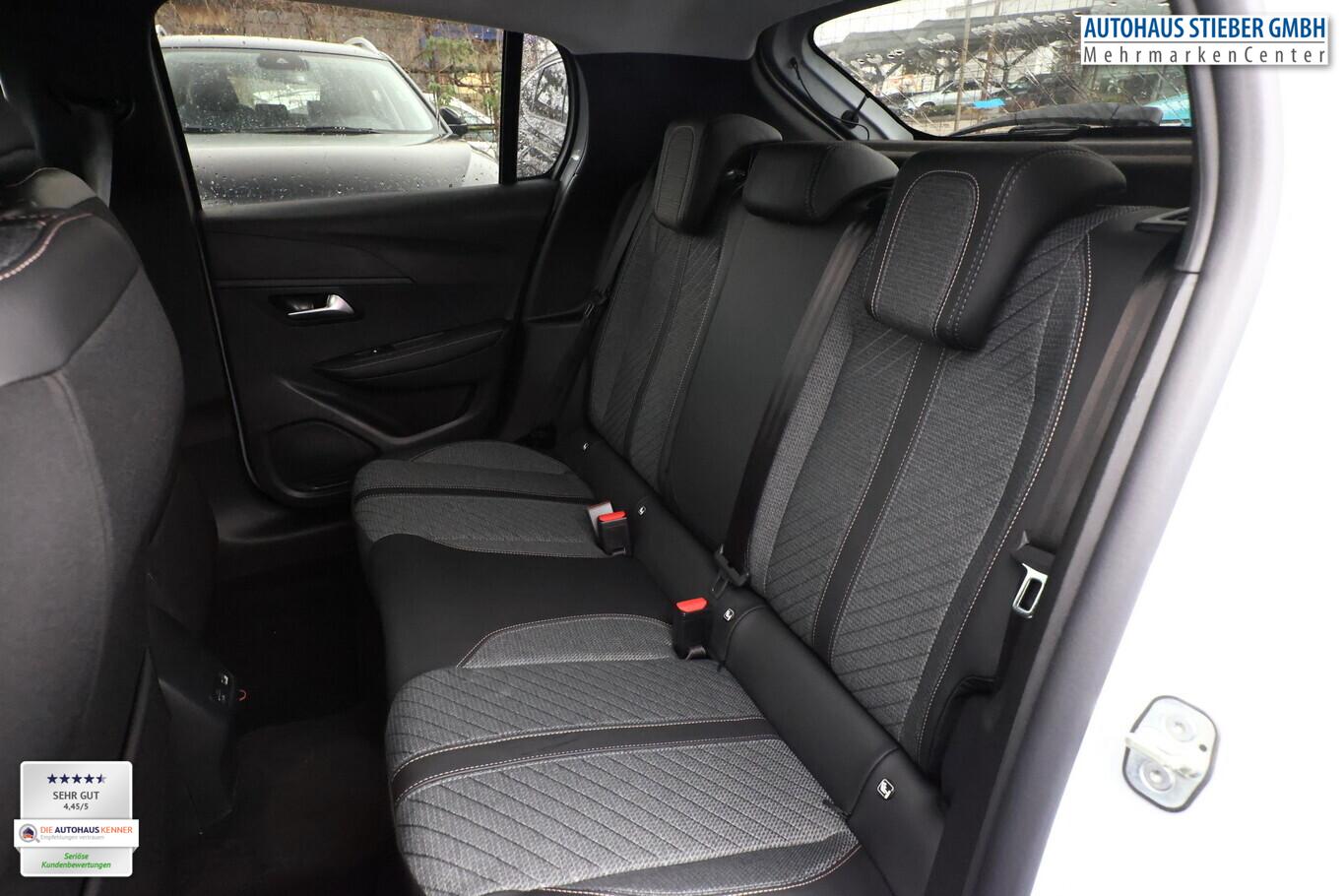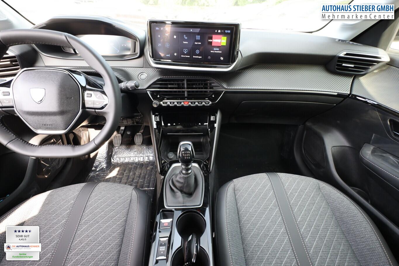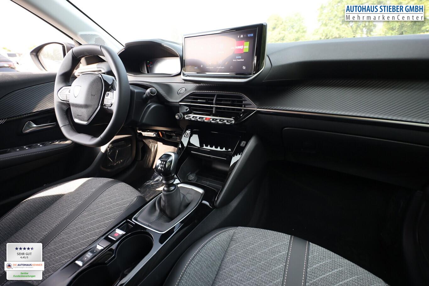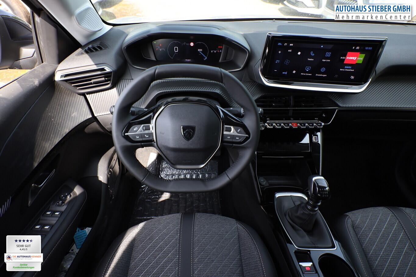 Sicht & Navigations-Paket (Multifunktionsanzeige mit HD Touchscreen-Farbdisplay 10 Zoll / Navigationssystem i-Connect Advanced / USB-Anschlüsse (Typ C und Typ A) / USB-Schnittstelle / Rückfahrkamera mit 360° Umgebungsansicht / Peugeot Connect-Box / SOS-Taste (Notruf für Lokalisierung Fahrzeug) / Fahrassistenz-System: Totwinkel-Assistent (SAM)), Reifen-Reparaturkit, 6 Lautsprecher, Bluetooth-Freisprechanlage, Kombiinstrument digital 10 Zoll, Kopf-Airbag-System vorn, Laderaumbeleuchtung, LM-Felgen 16 Zoll, MirrorLink (Android Auto/Apple Carplay), Navigation in Verbindung mit dem Smartphone (über Apple Carplay / Android Auto / ...), Reifen 195/55 R16, Elektrik-Paket (Fensterheber elektrisch hinten, sequentiell, mit Einklemmschutz / Innenspiegel mit Abblendautomatik / Fensterheber elektrisch vorn / Fensterheber elektrisch vorn links / Außenspiegel elektr. anklappbar / Außenspiegel mit Umfeldleuchte), Komfort-Paket (Klimaautomatik / Scheibenwischer mit Regensensor), Radioempfang digital (DAB+) (Radioempfang digital), Fensterheber elektr. vorn, rechts mit Impulsgeber (Fensterheber elektrisch vorn rechts), Zentralverriegelung mit Fernbedienung (Fernbedienung für Zentralverriegelung), Außenspiegel elektr. verstell- und heizbar, beide (Außenspiegel elektr. verstell- und heizbar, links / Außenspiegel elektr. verstell- und heizbar, rechts), Außenspiegel mit Abdeckkappen schwarz, Frontscheibe geräuschdämmend, Heckscheibe heizbar, Heckspoiler, Innenraumfilter: Staub- und Pollenfilter, Karosserie: 5-türig, Kartentasche an Vordersitze, Mobile Online Dienste Mirror Screen, Motor 1,2 Ltr. - 74 kW PureTech, Otto-Partikelfilter (GPF), Parkbremse elektrisch, Pyrotechnischer Gurtstraffer, Sitz vorn links höhenverstellbar, Steckdose (12V-Anschluß) in Mittelkonsole, Türgriffe außen Wagenfarbe, Warnanlage für Sicherheitsgurte, Anti-Blockier-System (ABS), Fahrassistenz-System: Aktiver Notbrems-Assistent (Active Safety Brake), Antischlupfregelung (ASR), Elektron. Stabilitäts-Programm (ESP, Bosch), Getriebe 6-Gang, Airbag Beifahrerseite abschaltbar, Airbag Fahrer-/Beifahrerseite, Fensterheber elektrisch vorn links, sequentiell, Isofix-Aufnahmen für Kindersitz, Kopf-Airbag-System hinten, Seitenairbag vorn, Seitenscheiben hinten und Heckscheibe dunkel getönt, Sitzheizung vorn, Zentralverriegelung inkl. Türverriegelung automatisch, Fahrmodusschalter, Fahrassistenz-System: Berganfahrhilfe, Geschwindigkeits-Regelanlage (Tempomat) inkl. Geschwindigkeits-Begrenzeranlage, Lenkrad (Leder), Lenkrad mit Multifunktion, Servolenkung elektrisch, Blinkleuchte in Außenspiegel integriert, Einschaltautomatik für Fahrlicht, Scheinwerfer Eco-LED, Tagfahrlicht LED, Einparkhilfe vorn und hinten, Fahrassistenz-System: aktiver Spurassistent (Lenkunterstützung), Fahrassistenz-System: Müdigkeitserkennungs-Sensor, Reifendruck-Kontrollsystem, Start/Stop-Anlage