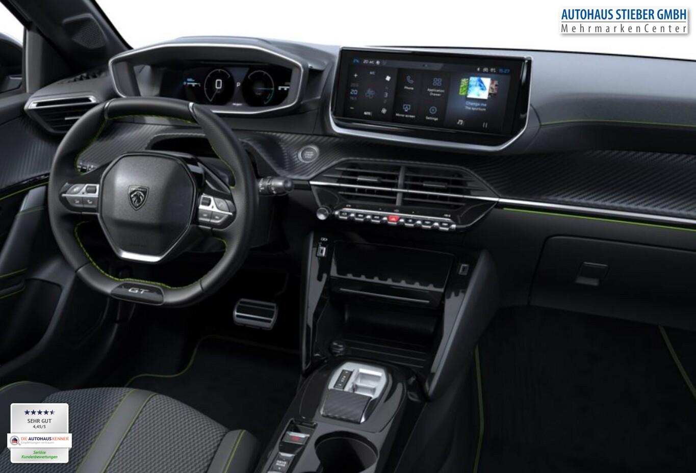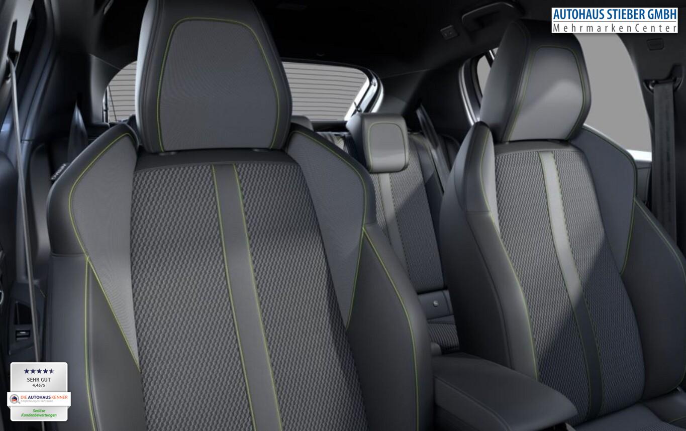 Sicht & Navigations-Paket (Induktionsladeschale für Smartphone / Multifunktionsanzeige mit HD Touchscreen-Farbdisplay 10 Zoll / Navigationssystem i-Connect Advanced / USB-Anschlüsse (Typ C und Typ A) / USB-Schnittstelle / Rückfahrkamera mit 360° Umgebungsansicht / Peugeot Connect-Box / SOS-Taste (Notruf für Lokalisierung Fahrzeug) / Fahrassistenz-System: Totwinkel-Assistent (SAM)), Drive-Assist-Paket (Fahrassistenz-System: Aktiver Notbrems-Assistent (Active Safety Brake Plus) / Adaptive Geschwindigkeitsregelanlage (ACC) / Fahrassistenz-System: Spurhalteassistent (LPA)), 6 Lautsprecher, Ambientebeleuchtung (mehrfarbig), Freisprecheinrichtung Bluetooth, Fussraumbeleuchtung LED, Gepäckraumbeleuchtung, Kindersicherung manuell, Kombiinstrument digital, Kopf-Airbag-System vorn, Lenkrad mit Schaltfunktion, Leseleuchten LED vorn, Smartphone-Schnittstelle (Apple CarPlay & Android Auto), Sommerreifen 205/45 R17, Steckdose (12V-Anschluss), Fensterheber elektrisch hinten, sequentiell, mit Einklemmschutz (Fensterheber elektrisch vorn / Fensterheber elektrisch vorn links), Fensterrahmen / Zierleisten schwarz glänzend (Fensterzierleisten schwarz glänzend), Radioempfang digital (DAB+) (Radioempfang digital), Sonnenblenden mit Spiegel (beleuchtet) (Sonnenblenden mit Spiegel), Sitzbezug / Polsterung: Stoff/Kunstleder (Innenausstattung: Ziernähte farbig), Zentralverriegelung mit Fernbedienung (Fernbedienung für Zentralverriegelung), Außenspiegel elektr. verstell- und heizbar, beide (Außenspiegel elektr. verstell- und heizbar, links / Außenspiegel elektr. verstell- und heizbar, rechts), Scheinwerfer Full-LED (Leuchtweitenregelung), Außenspiegel mit Abdeckkappen schwarz, Elektr. Bremskraftverteilung, Frontscheibe geräuschdämmend, Innenraumfilter: Staub- und Pollenfilter, Innenspiegel mit Abblendautomatik, Karosserie: 5-türig, Kartentasche an Vordersitze, LM-Felgen 6,5x17 (Yanaka, zweifarbig), Mild-Hybrid 81 kW (Motor 1,2 Ltr. - 74 kW), Otto-Partikelfilter (GPF), Parkbremse elektrisch, Pedale Aluminium, Pyrotechnischer Gurtstraffer, Sitz vorn links höhenverstellbar, Sitz vorn rechts höhenverstellbar, Türgriffe außen Wagenfarbe, Warnanlage für Sicherheitsgurte, Anti-Blockier-System (ABS), Antischlupfregelung (ASR), Elektron. Stabilitäts-Programm (ESP, Bosch), Getriebe Automatik - Doppelkupplungsgetriebe (6-Stufen, Hybrid), Klimaautomatik, Airbag Beifahrerseite abschaltbar, Airbag Fahrer-/Beifahrerseite, Isofix-Aufnahmen für Kindersitz, Kopf-Airbag-System hinten, Mittelarmlehne vorn, Seitenairbag vorn, Seitenscheiben hinten und Heckscheibe dunkel getönt, Zentralverriegelung / Startanlage Keyless System, Zentralverriegelung inkl. Türverriegelung automatisch, Bordcomputer, Fahrmodusschalter, Fahrassistenz-System: Berganfahrhilfe, Fahrassistenz-System: Verkehrszeichenerkennung, Lenkrad (Leder), Lenkrad mit Multifunktion, Servolenkung elektrisch, Außenspiegel elektr. anklappbar, Einschaltautomatik für Fahrlicht, Fahrassistenz-System: Fernlichtassistent, Scheibenwischer mit Regensensor, Tagfahrlicht LED, Einparkhilfe vorn und hinten, Fahrassistenz-System: aktiver Spurassistent (Lenkunterstützung), Fahrassistenz-System: Müdigkeitserkennungs-Sensor, Reifendruck-Kontrollsystem
